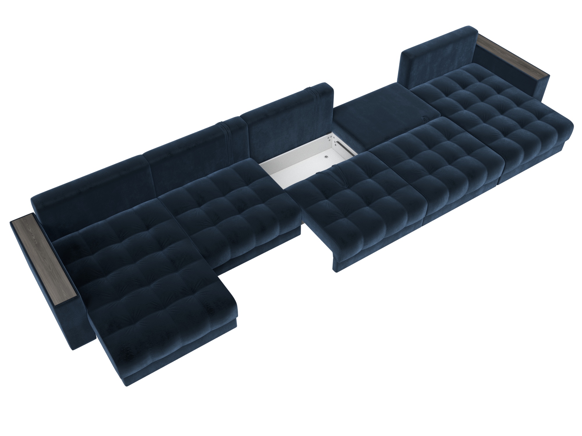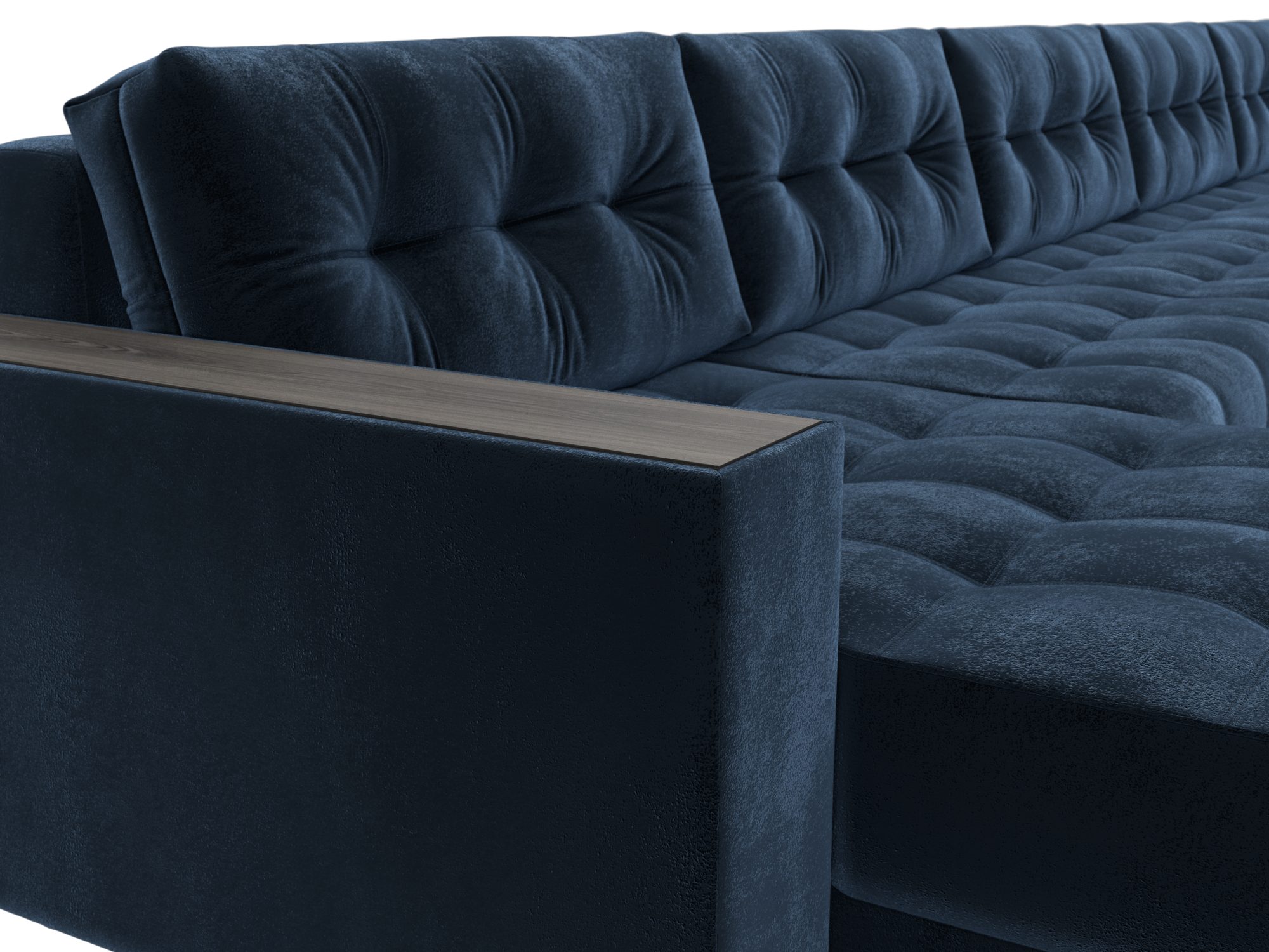 Диван П-образный с декором Лига-049 НПБ Мегалонг, TOWER 13 синий, Велюр
