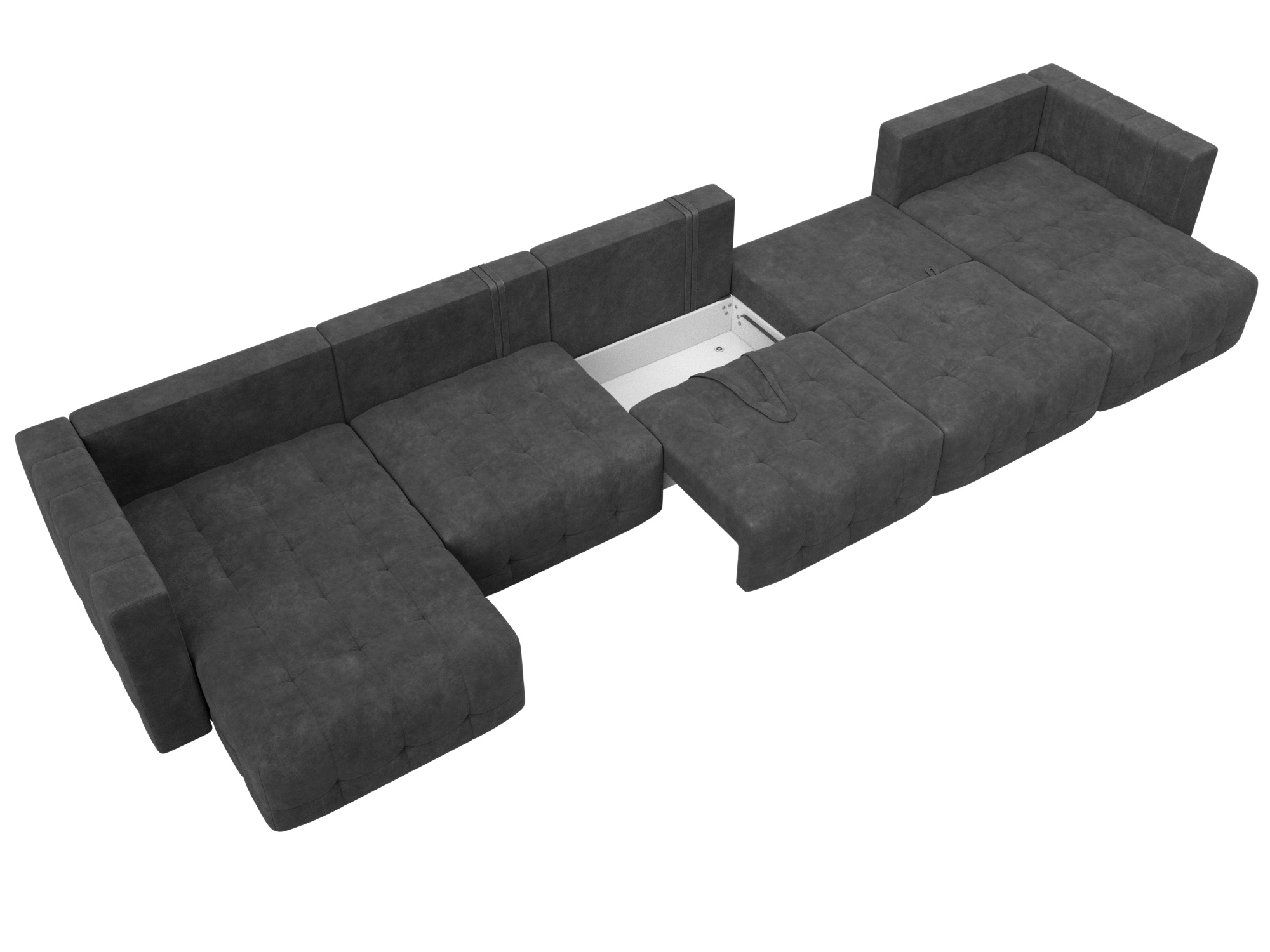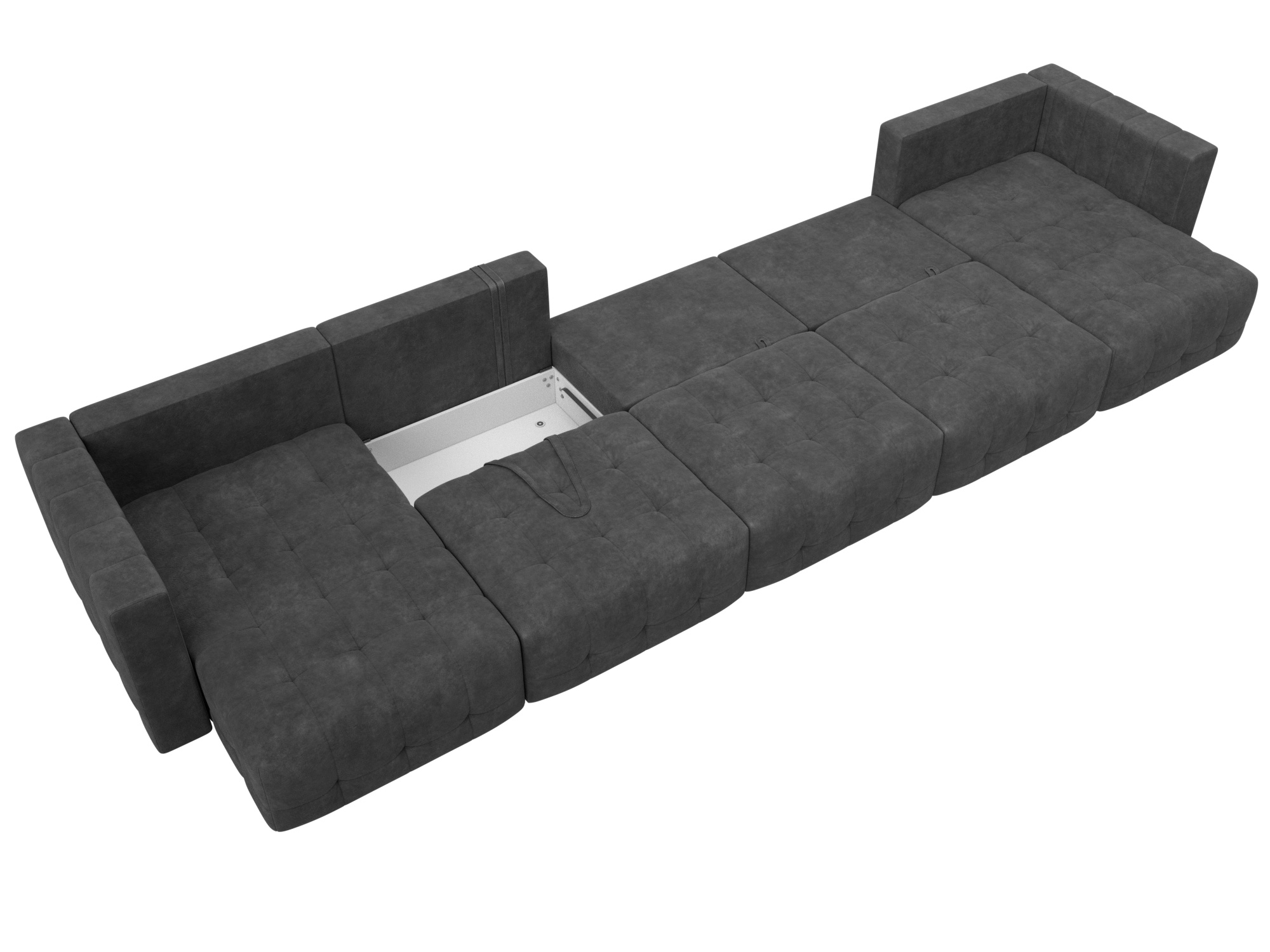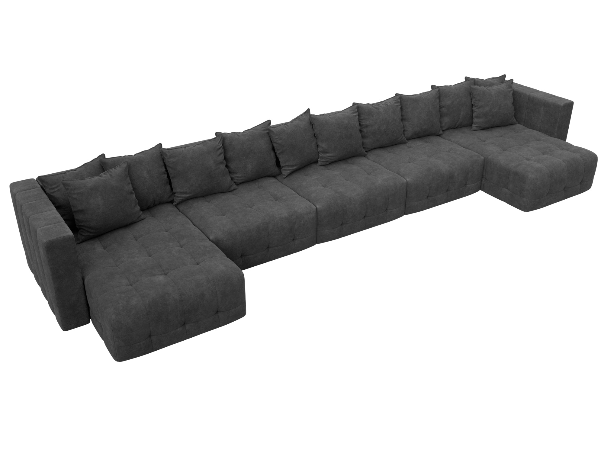 Диван П-образный Лига-052 НПБ МегаЛонг, BRUT 16 темно-серый, Велюр