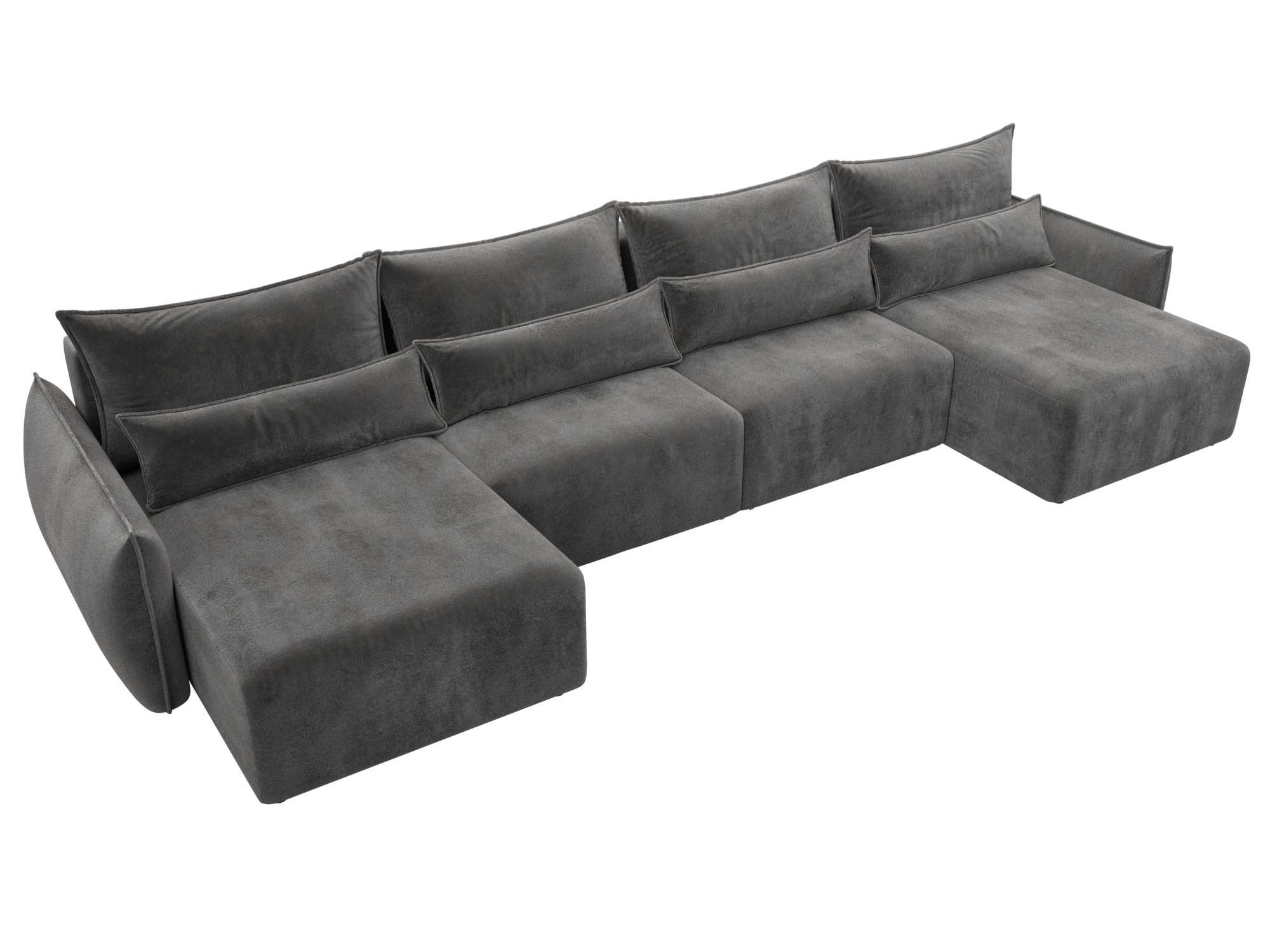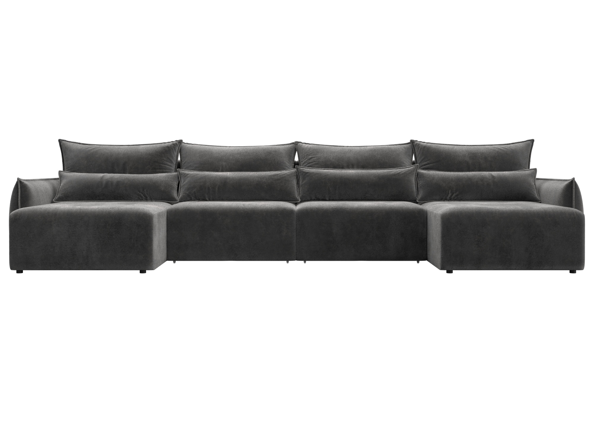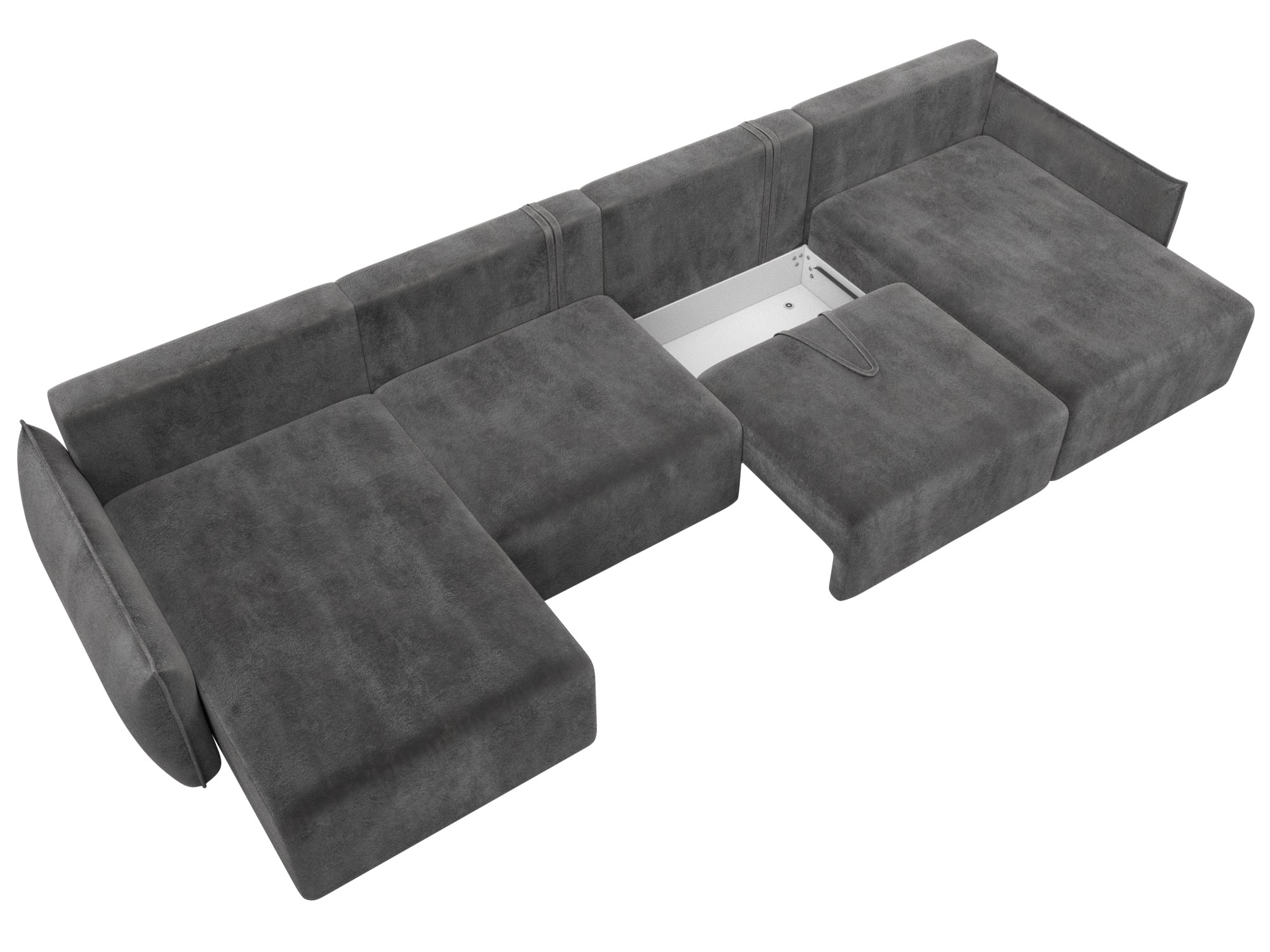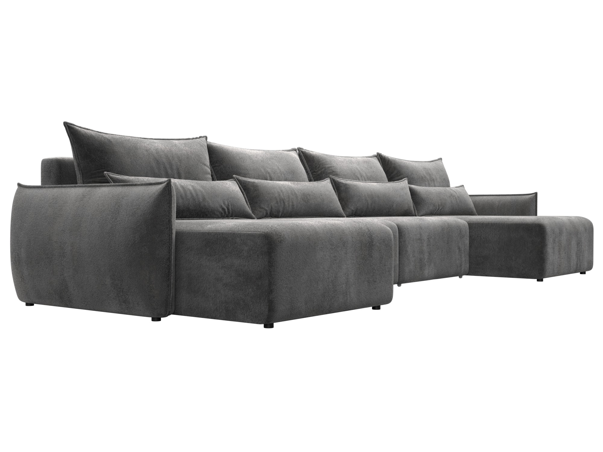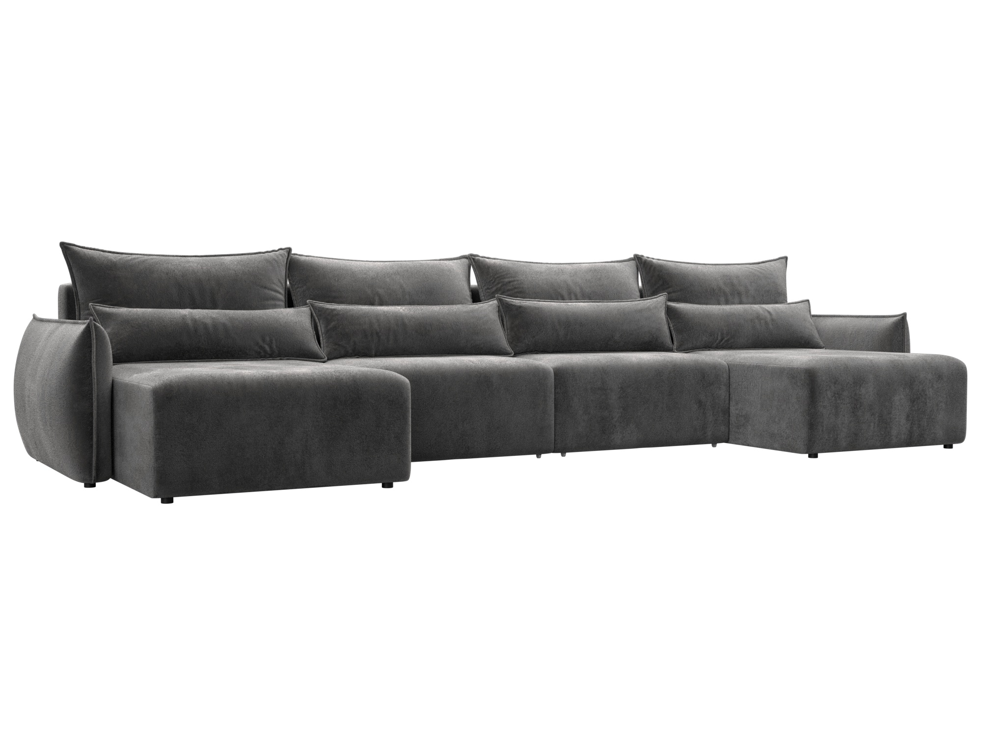 Диван П-образный Лига-051 НПБ Лонг серый, Велюр