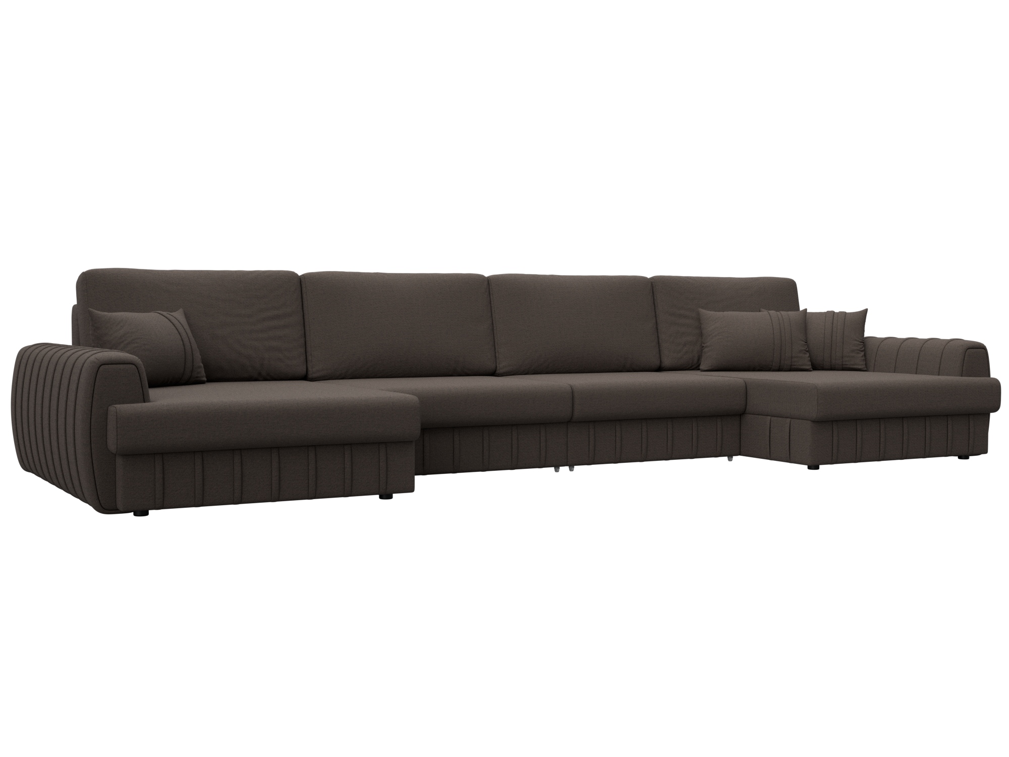 Диван П-образный Лига-057 НПБ Лонг коричневый, Рогожка
