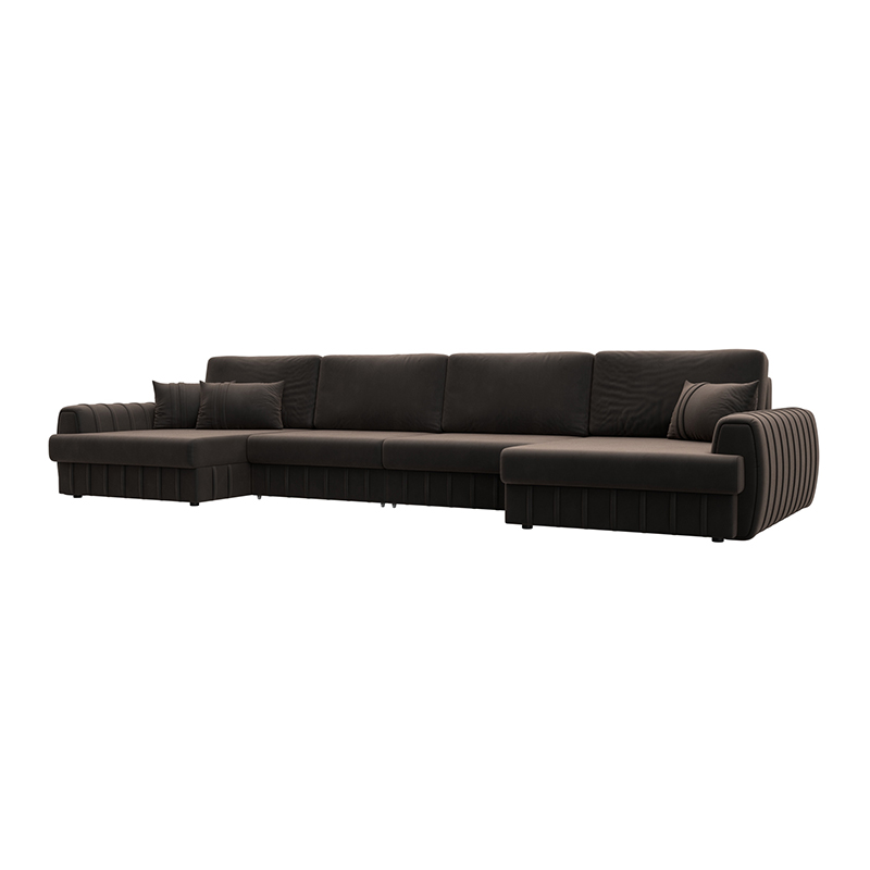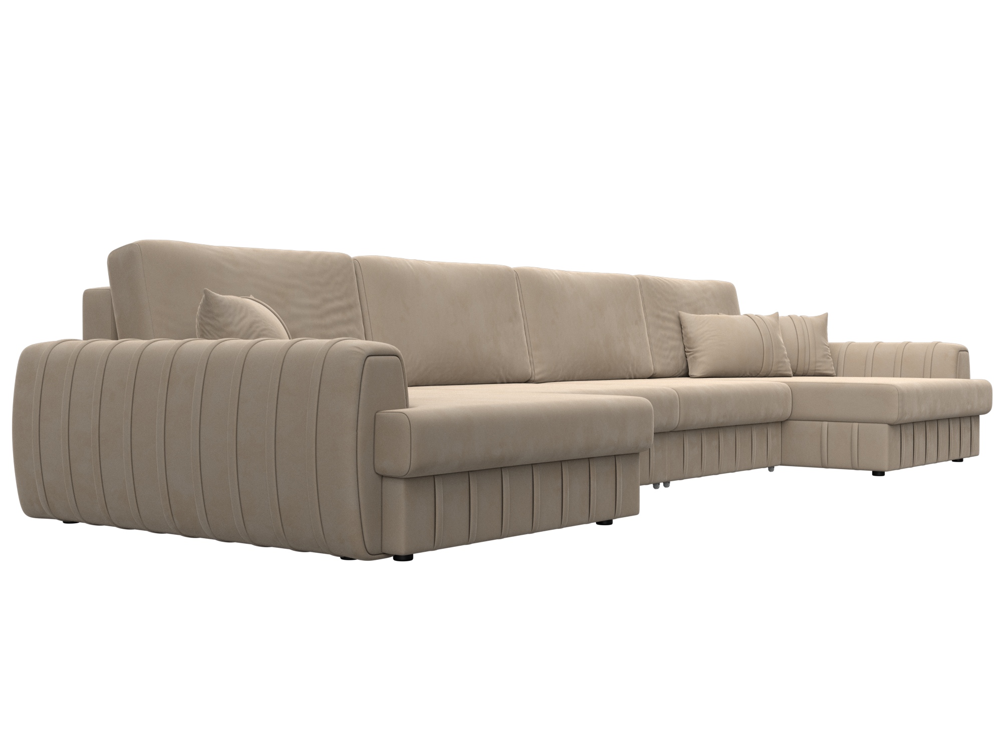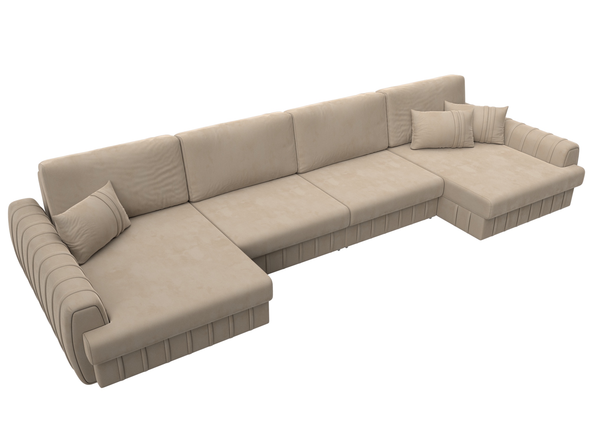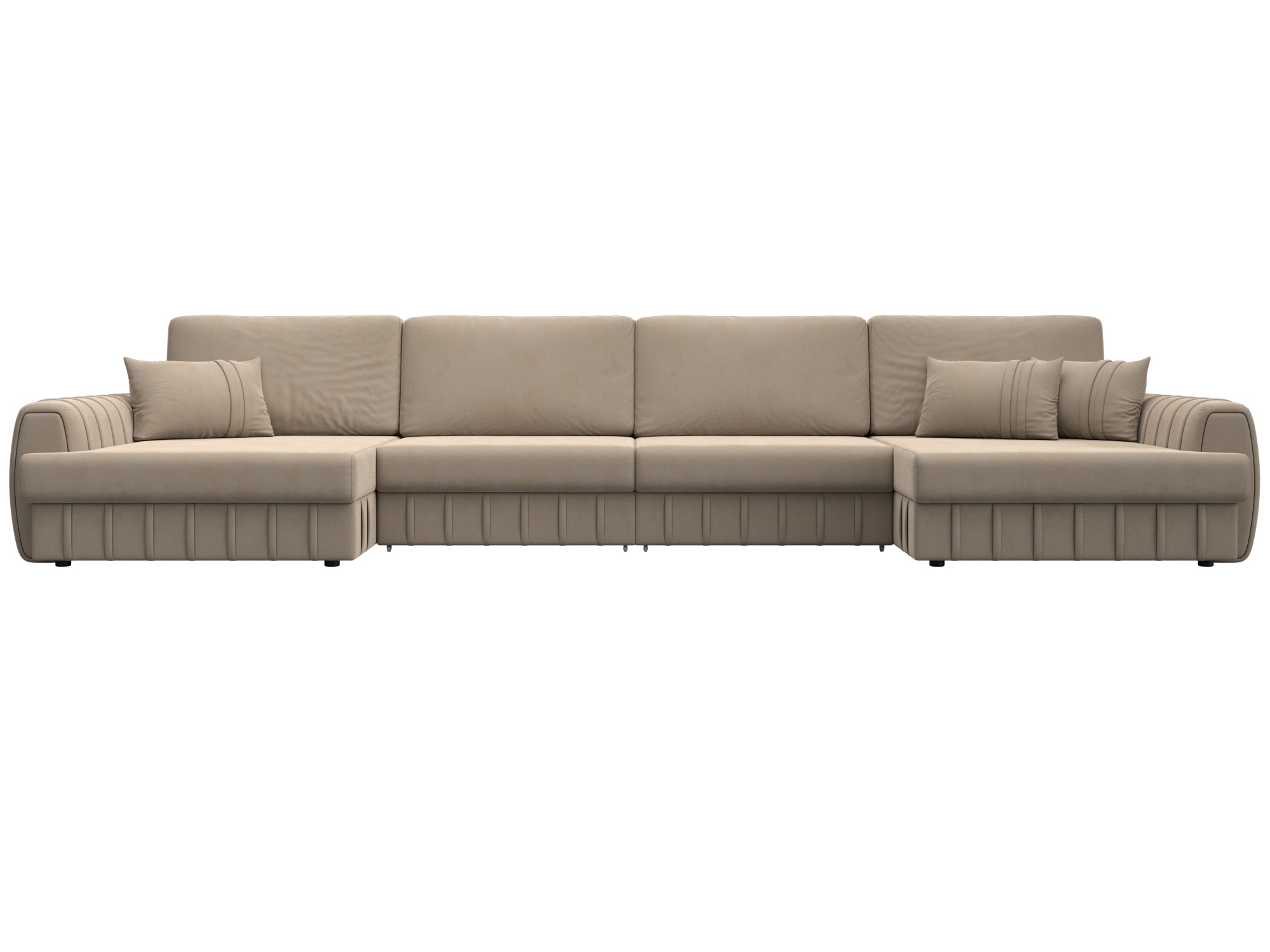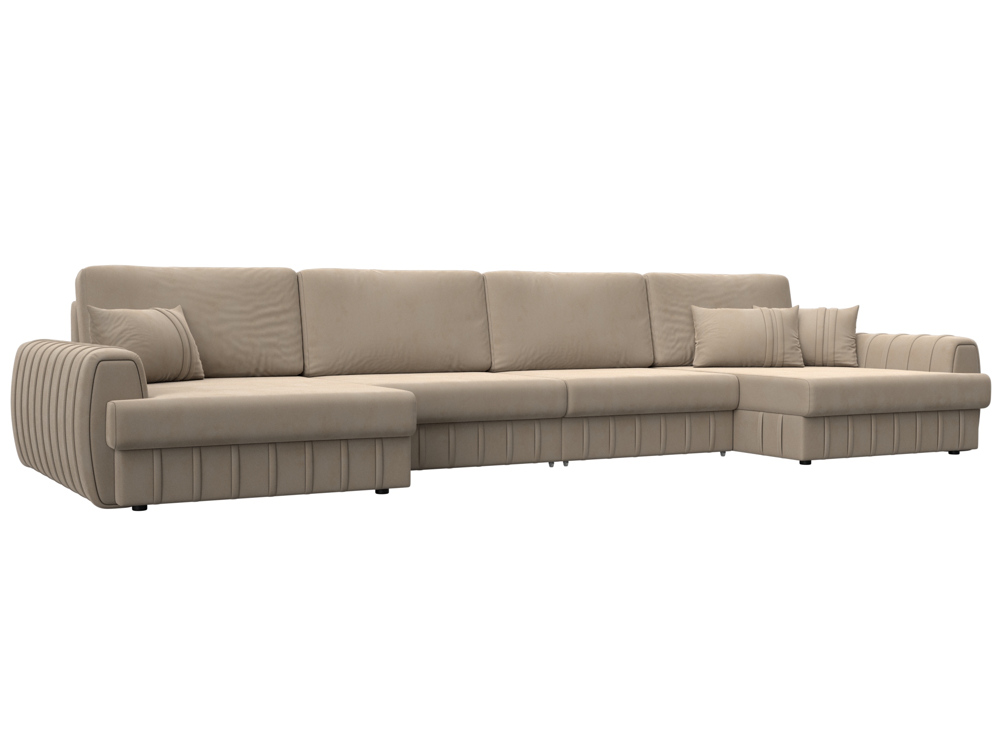 Диван П-образный Лига-057 НПБ Лонг бежевый, Велюр