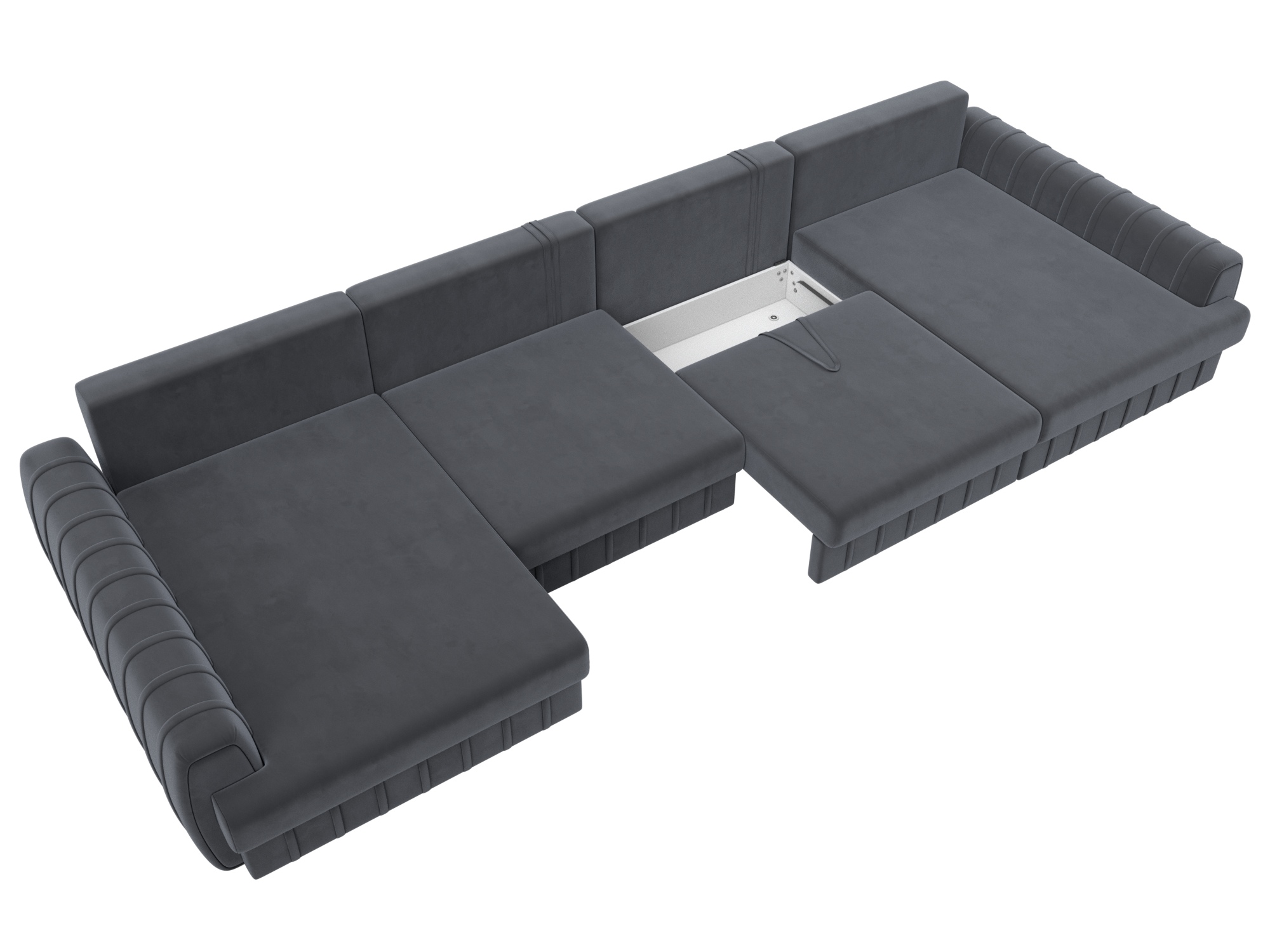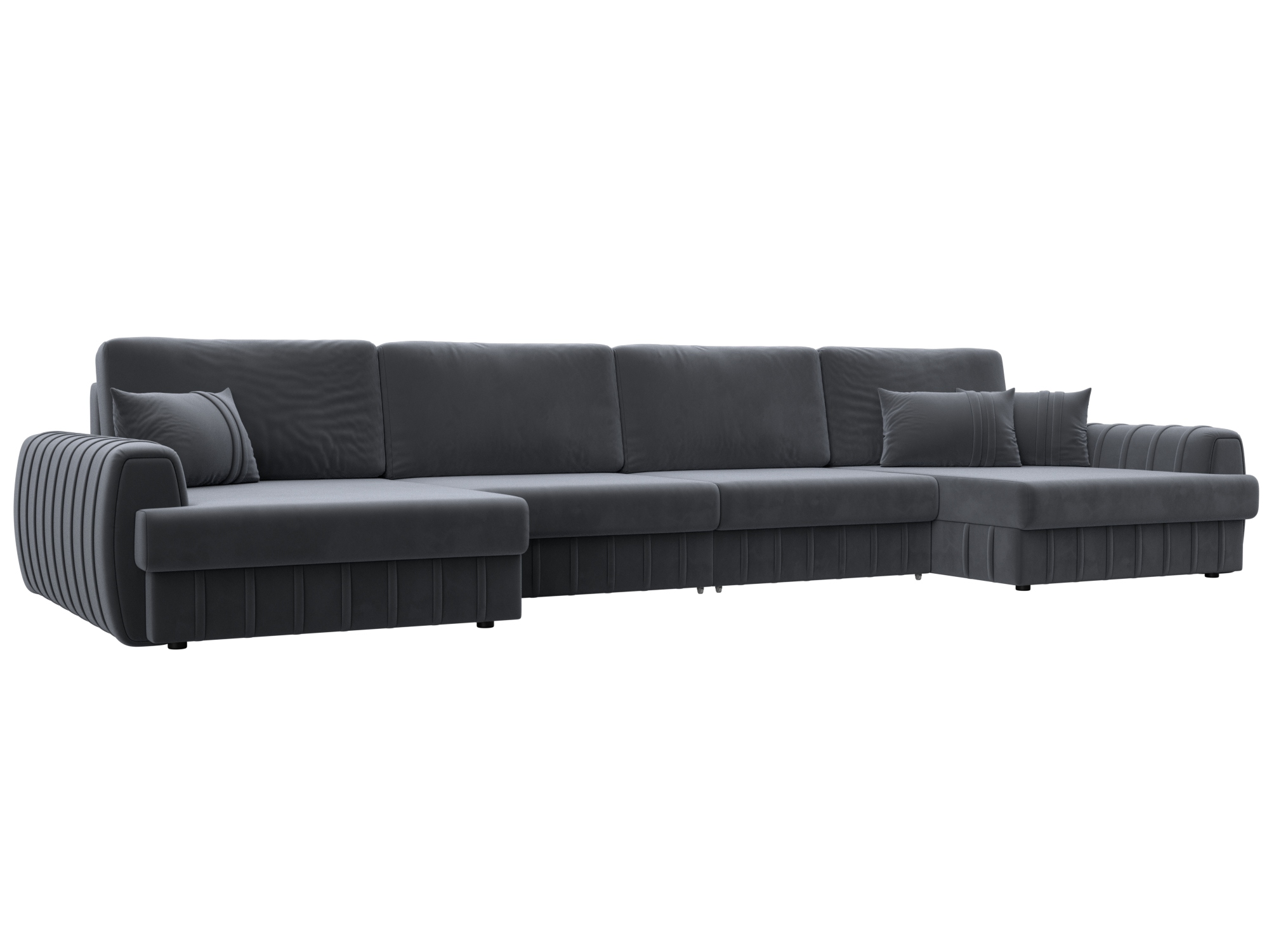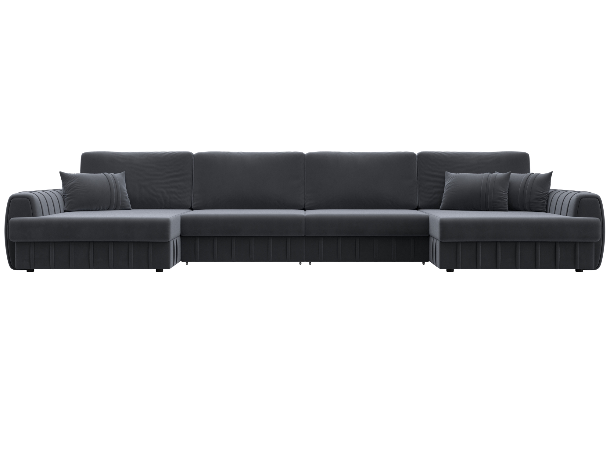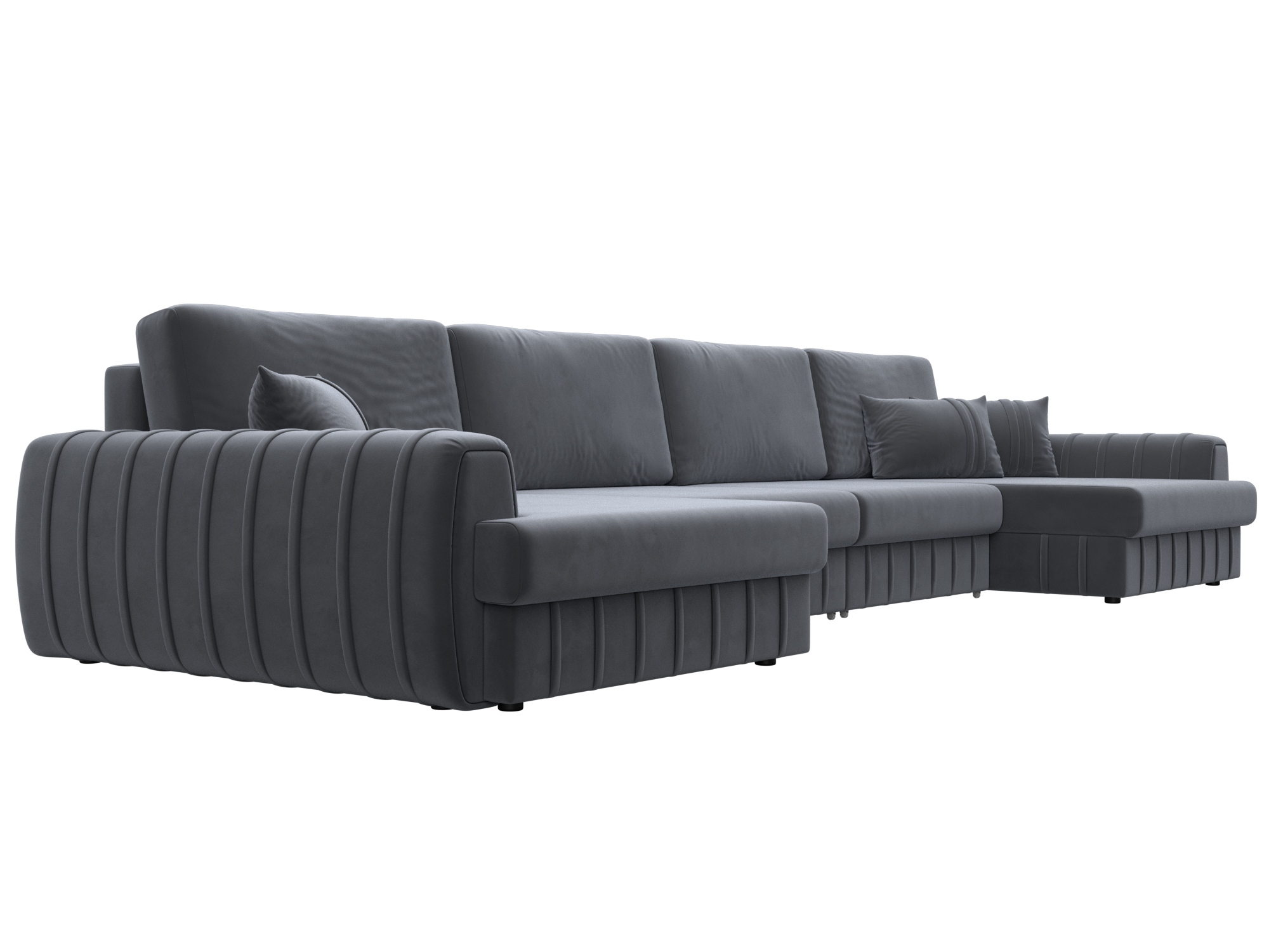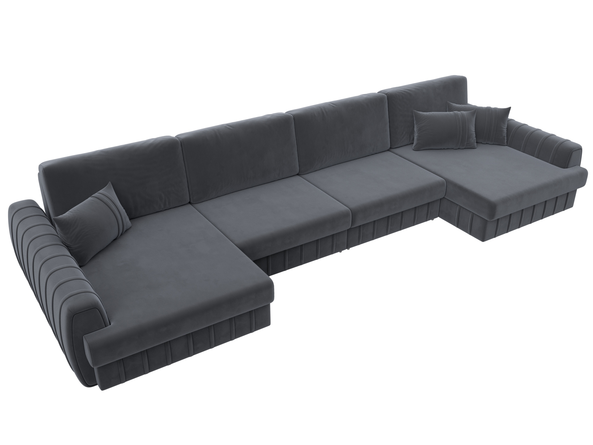 Диван П-образный Лига-057 НПБ Лонг серый, Велюр