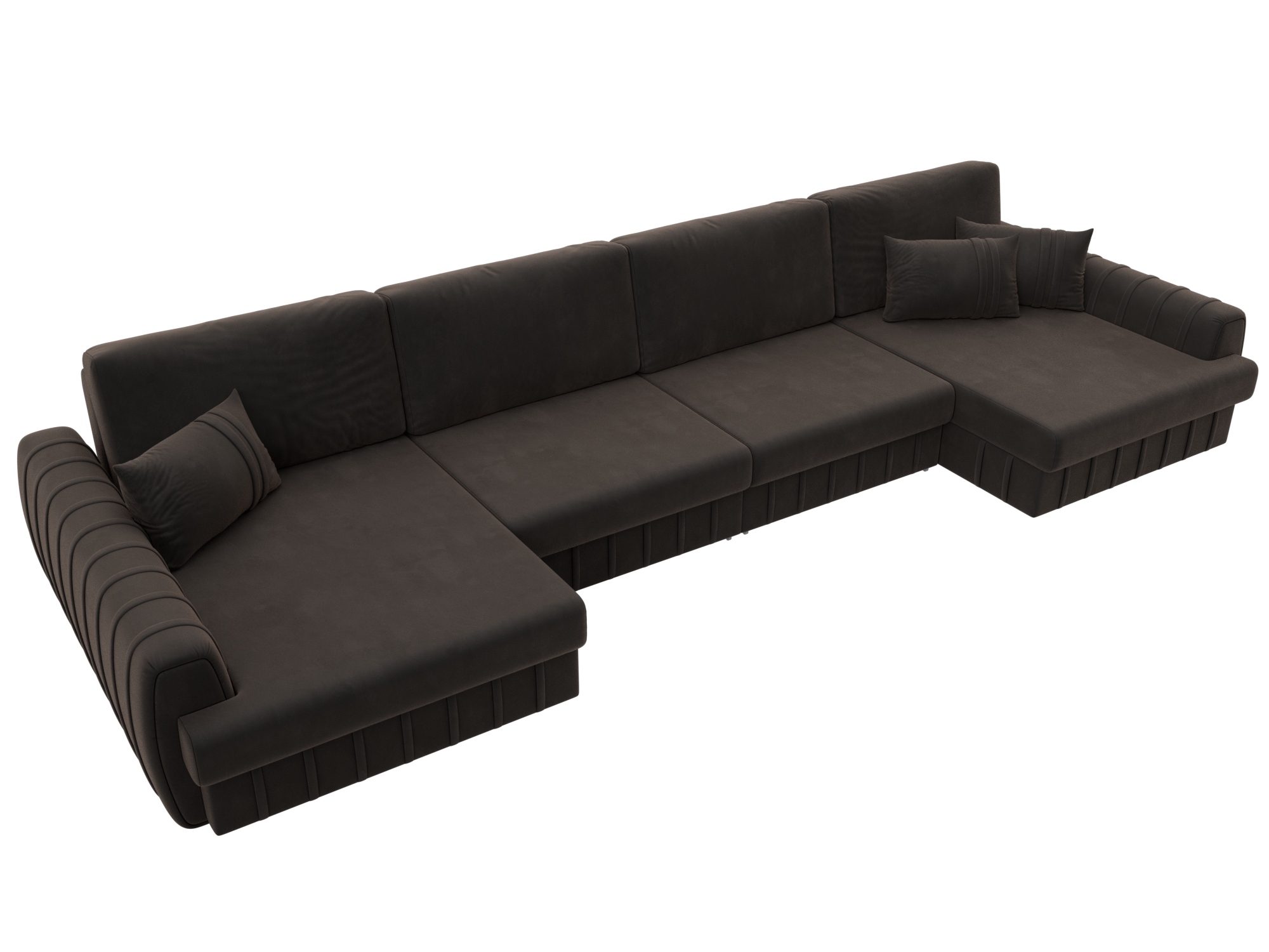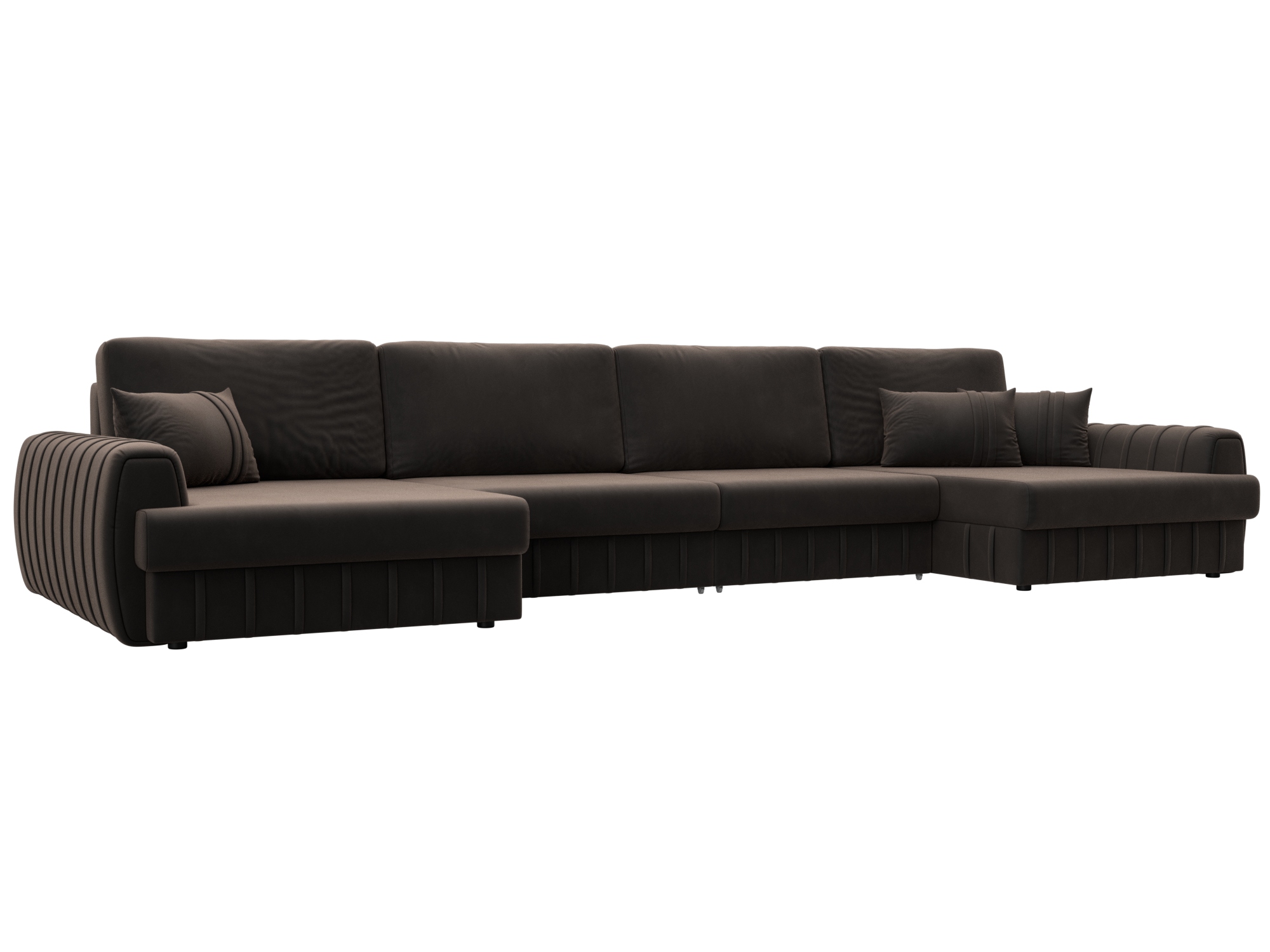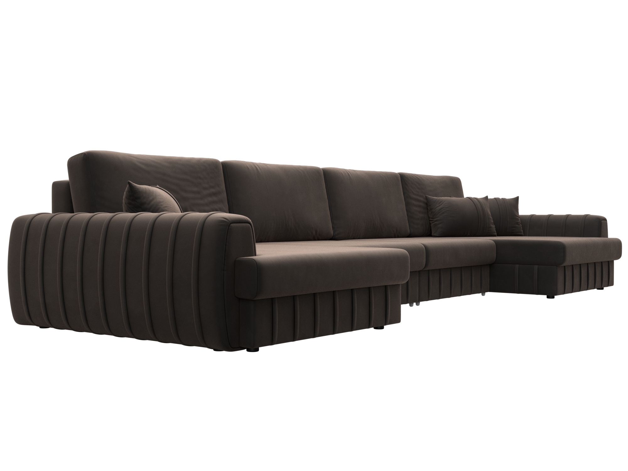 Диван П-образный Лига-057 НПБ Лонг коричневый, Велюр