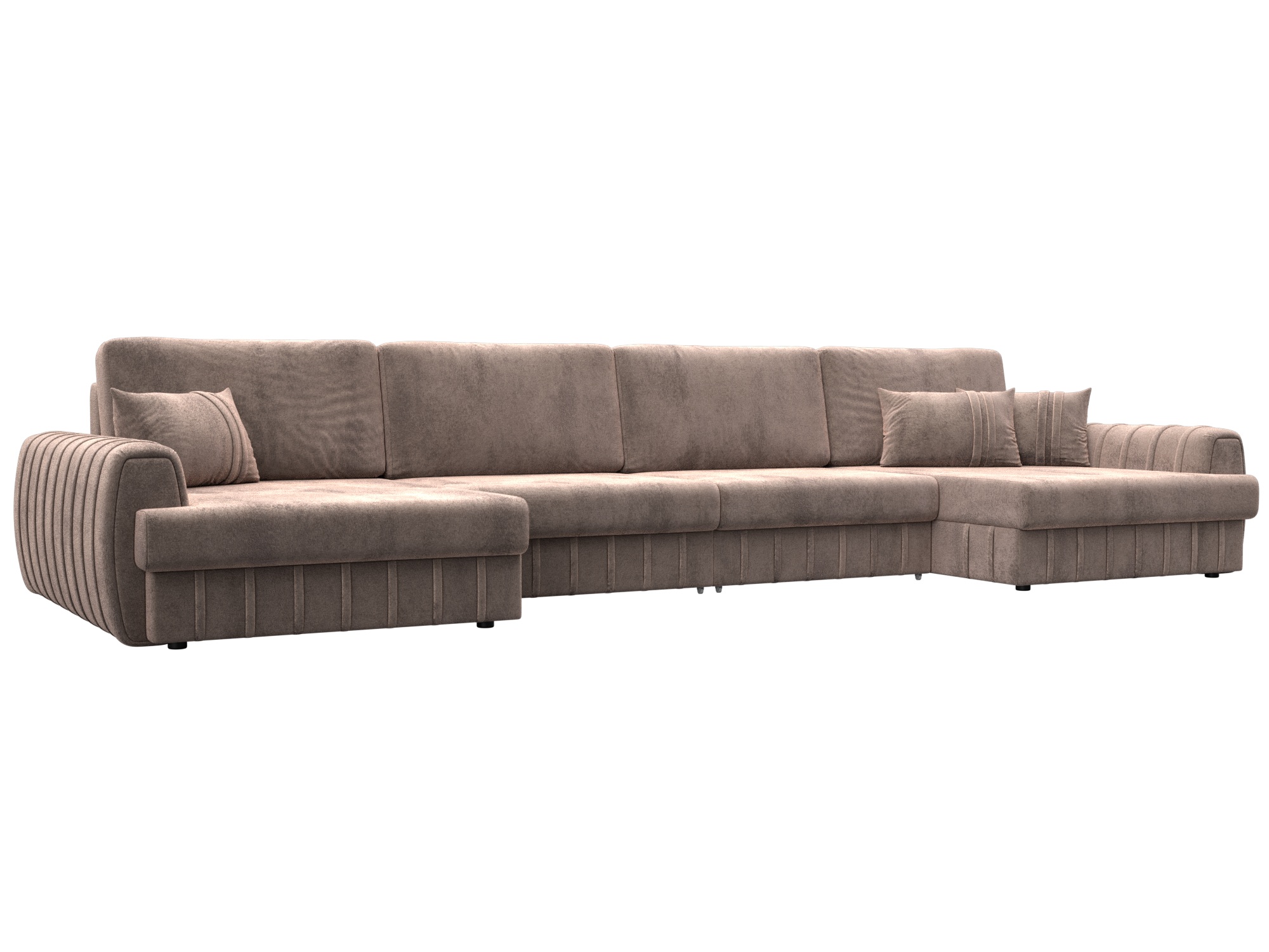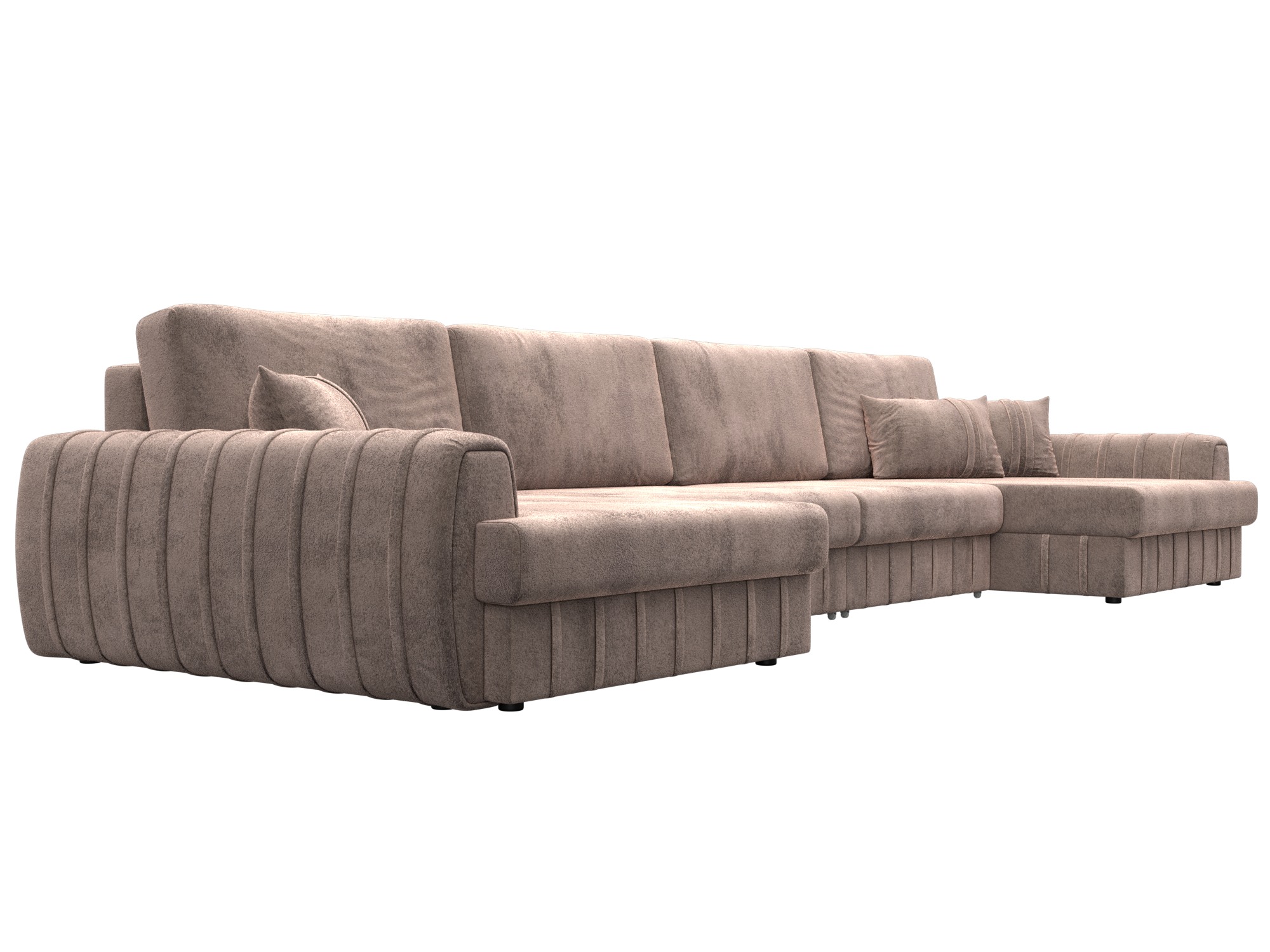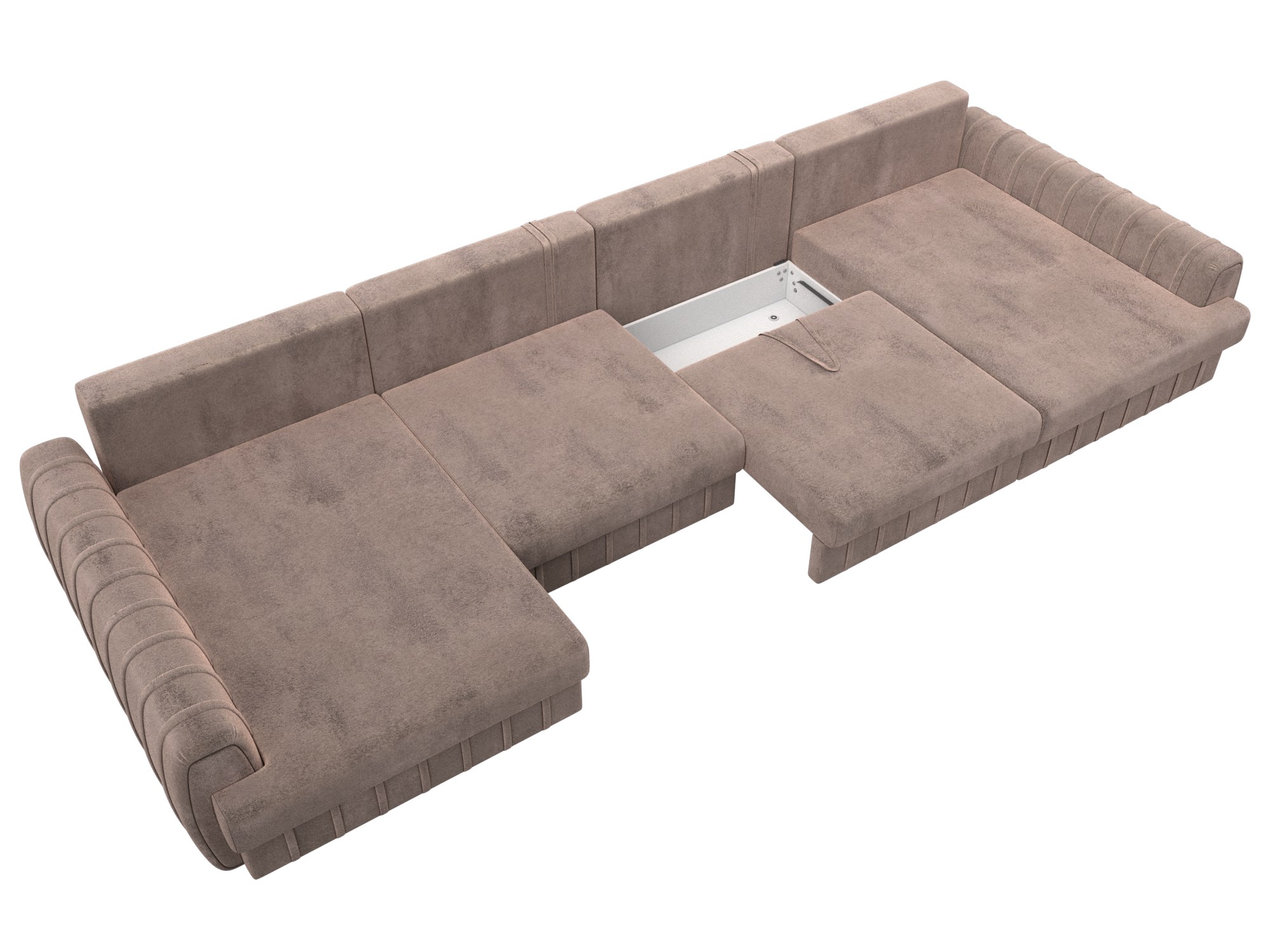 Диван П-образный Лига-057 НПБ Лонг бежевый, Велюр