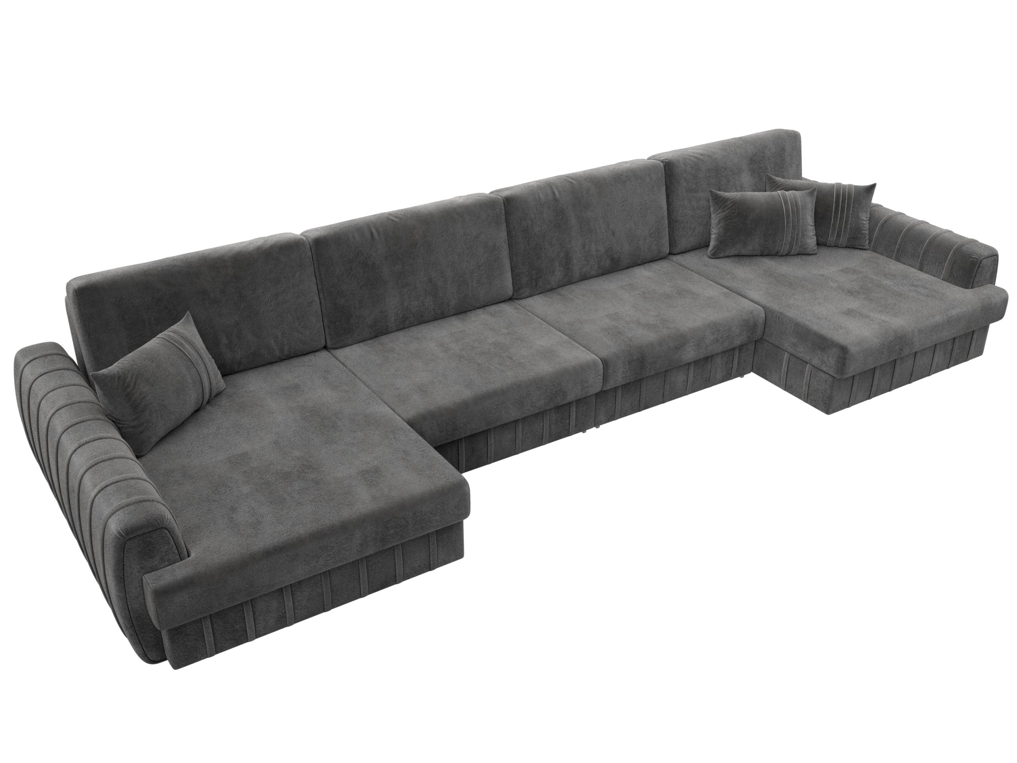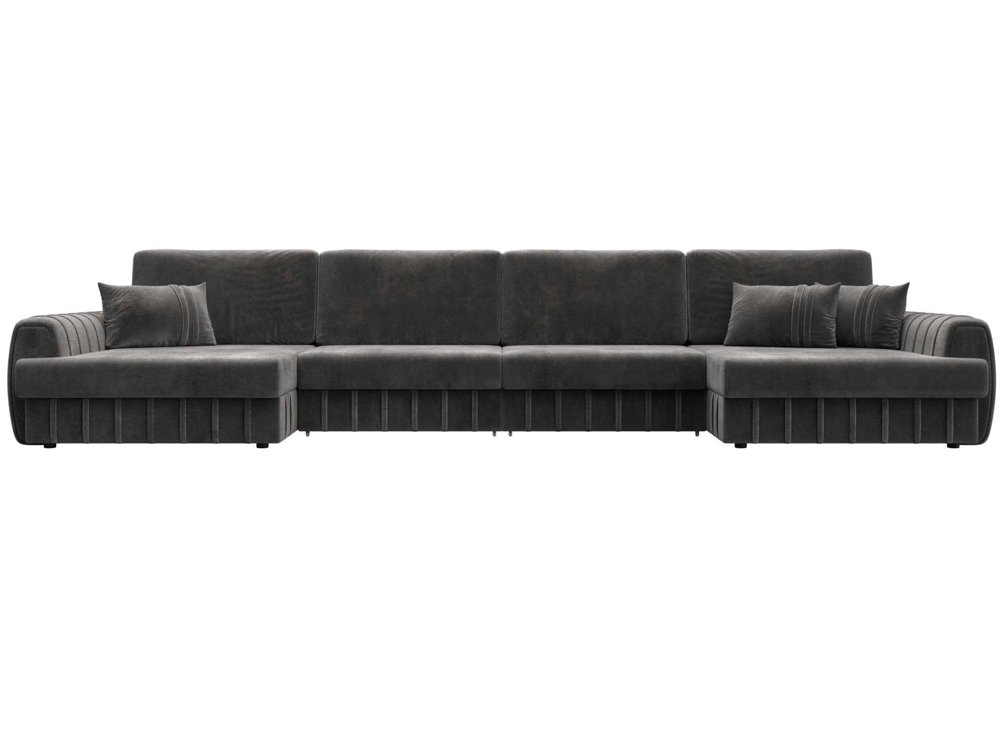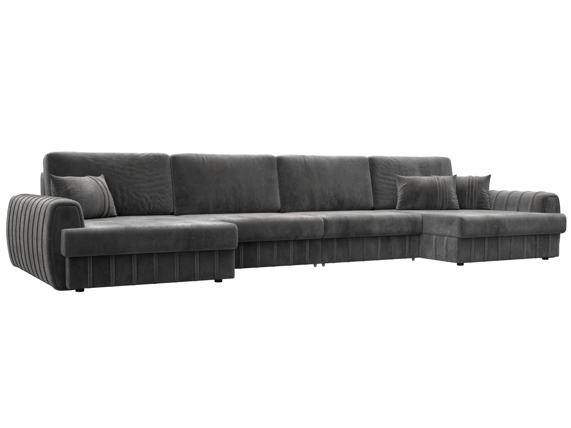 Диван П-образный Лига-057 НПБ Лонг серый, Велюр