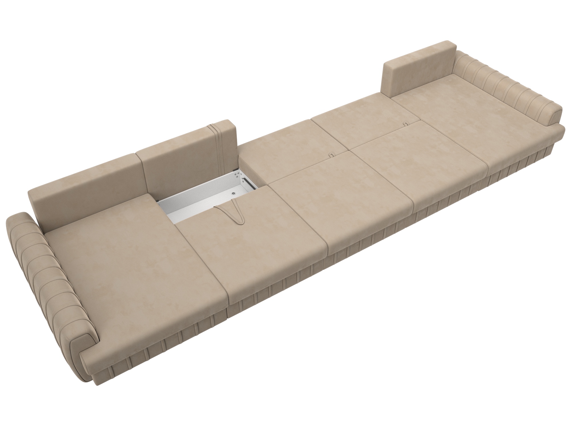 Диван П-образный Лига-057 НПБ МегаЛонг, SEVEN 729 бежевый, Велюр