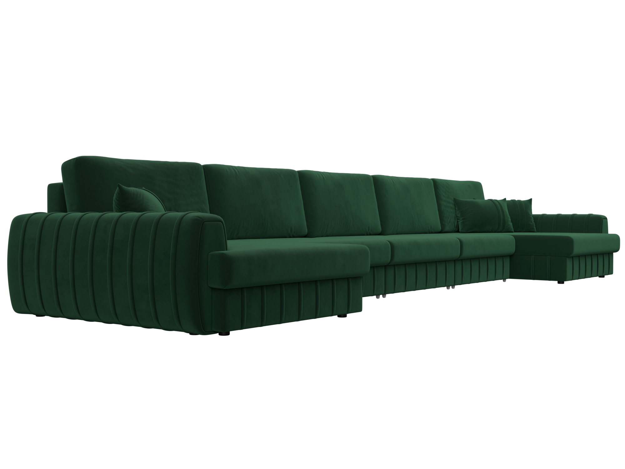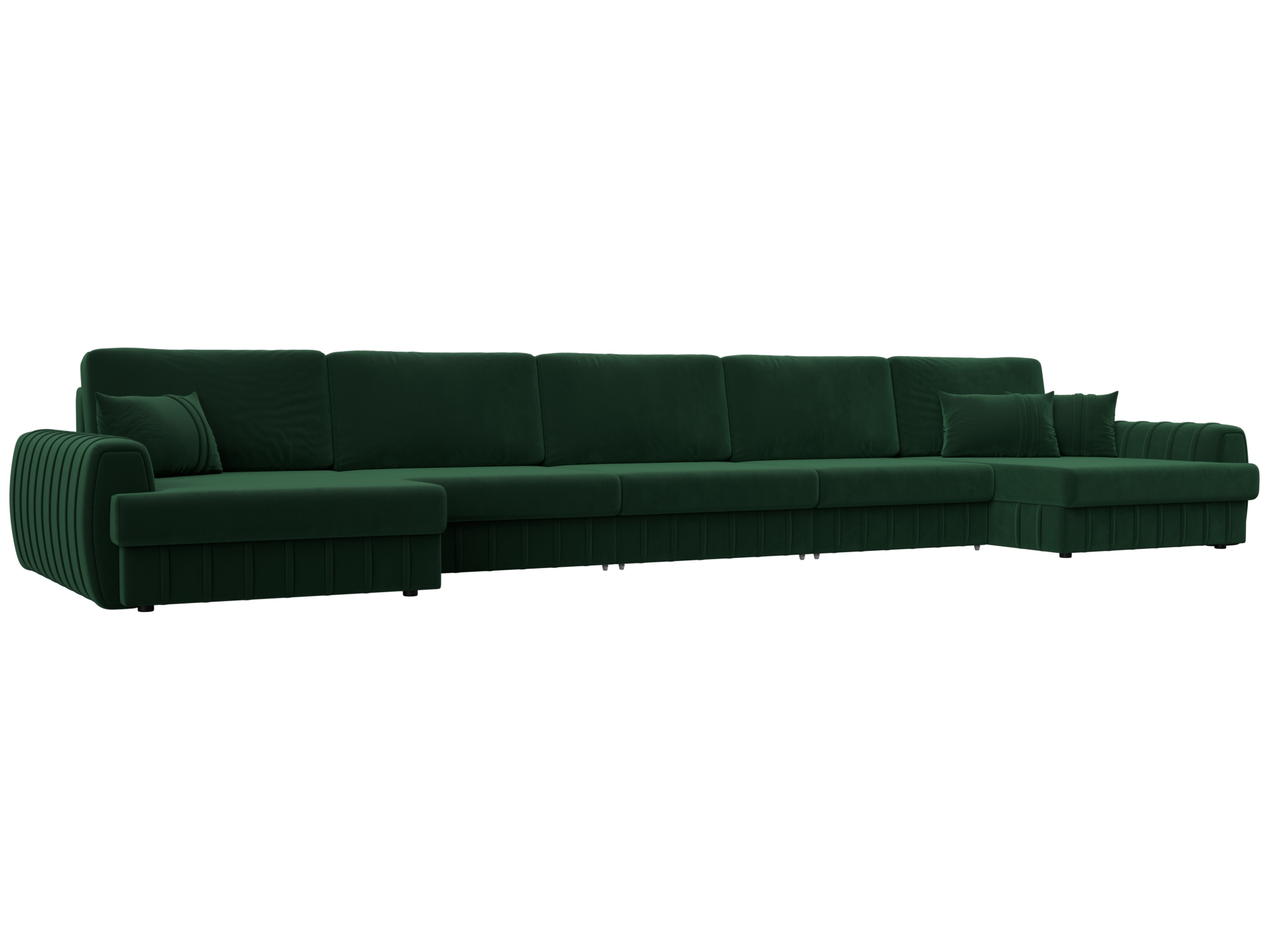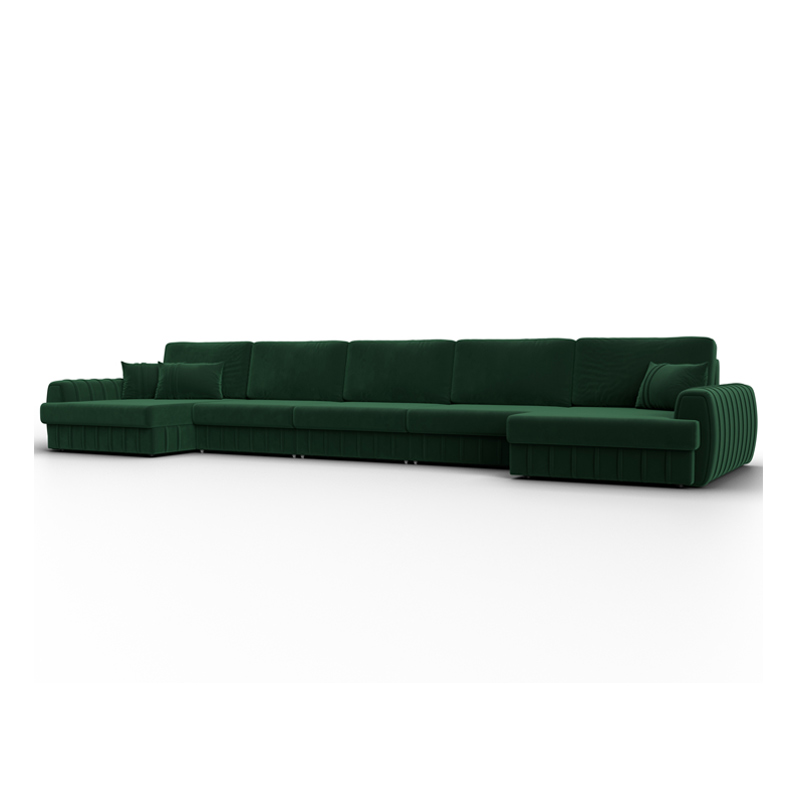 Диван П-образный Лига-057 НПБ МегаЛонг, SEVEN 626 зеленый, Велюр