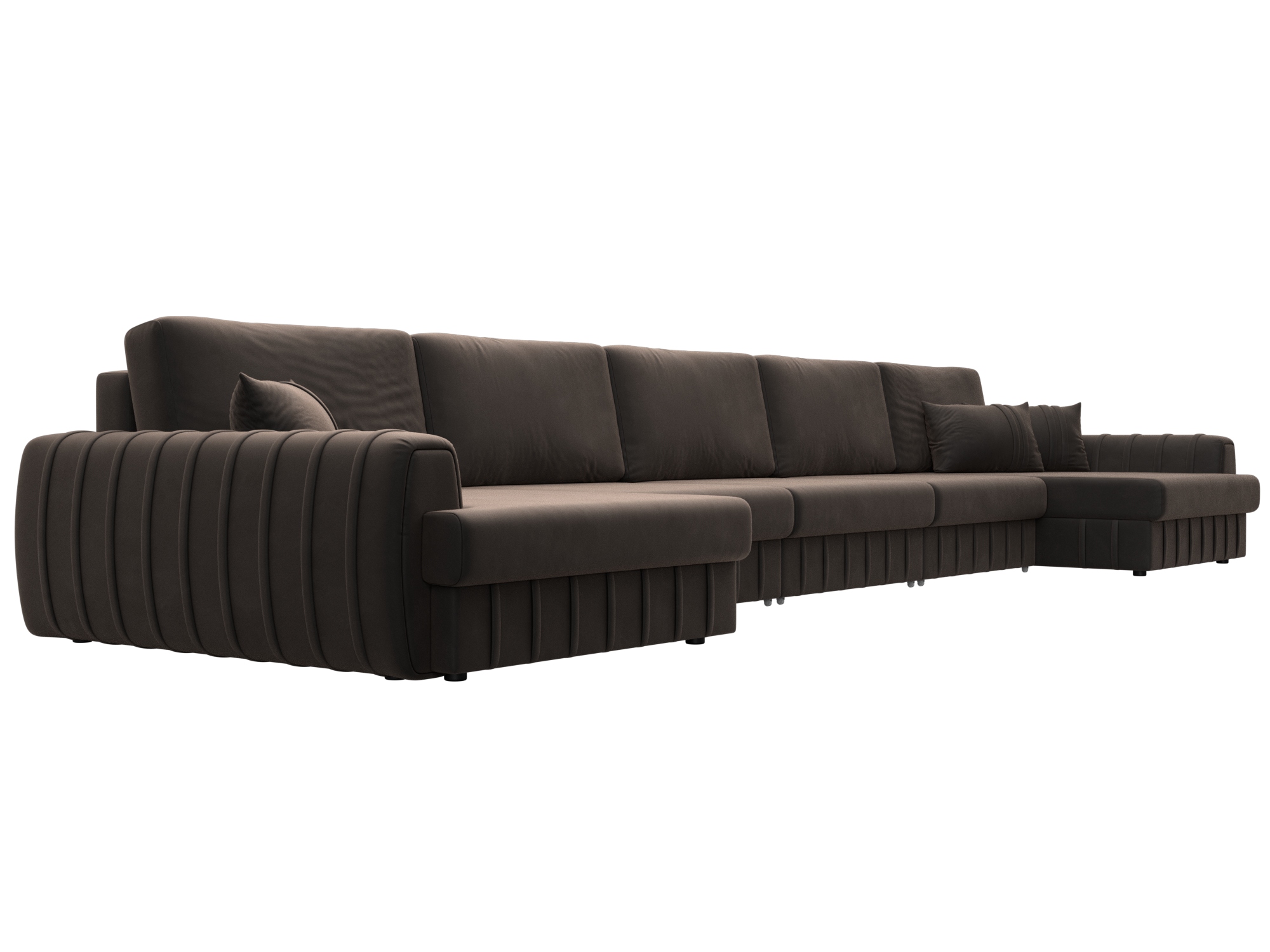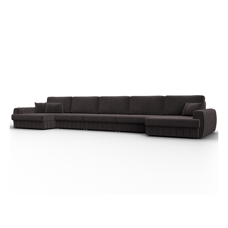 Диван П-образный Лига-057 НПБ МегаЛонг, SEVEN 727 коричневый, Велюр