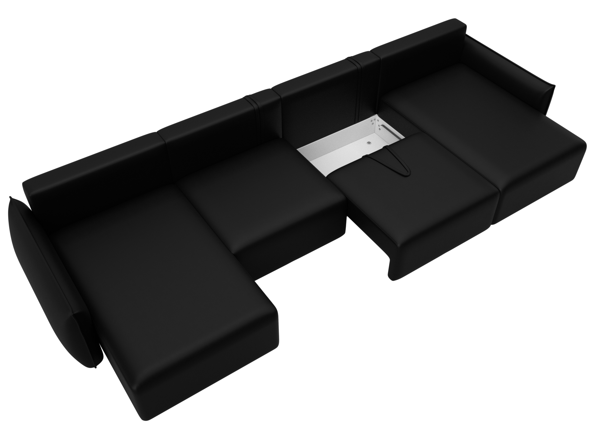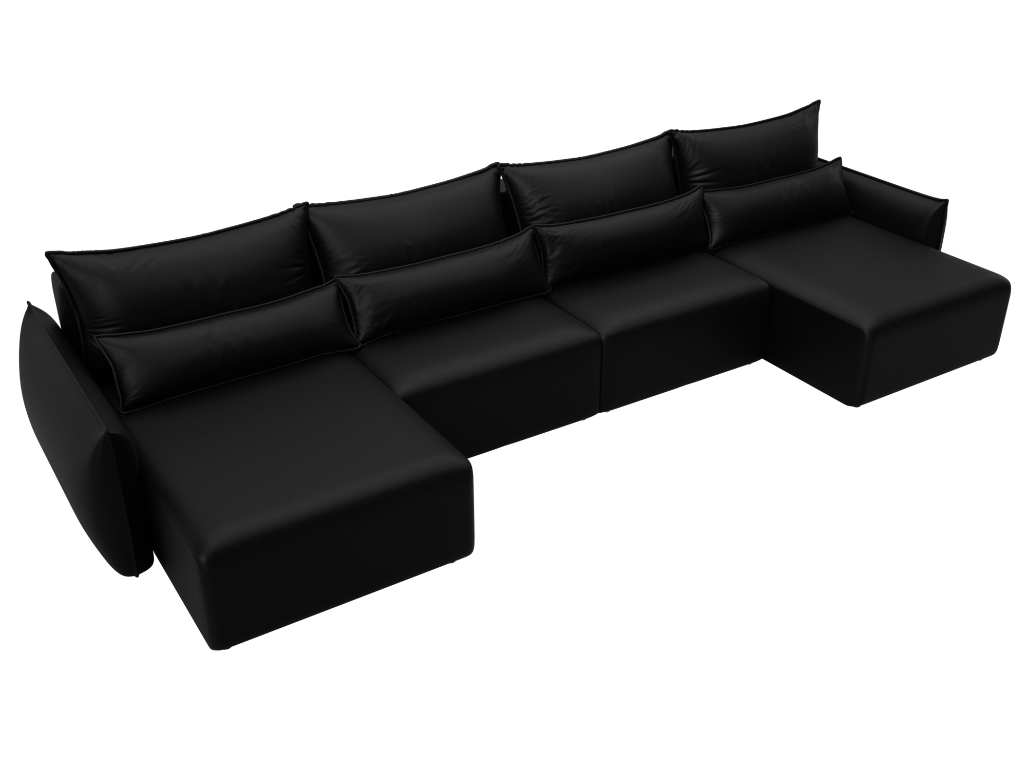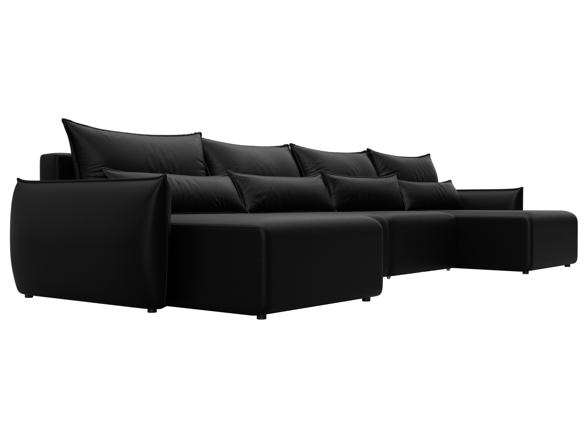 Диван П-образный Лига-051 НПБ Лонг черный, Экокожа