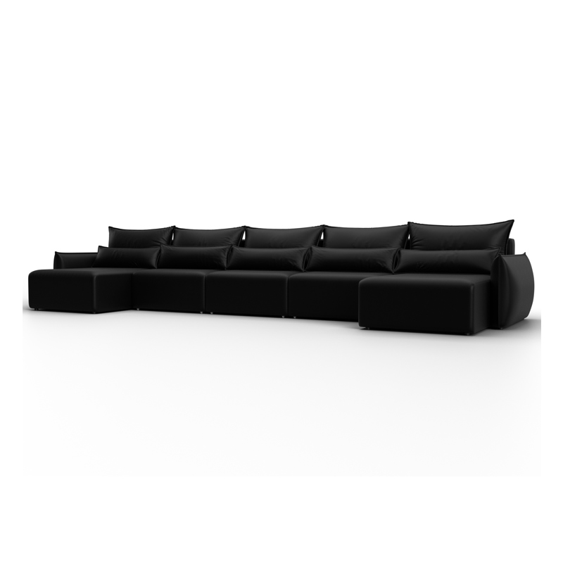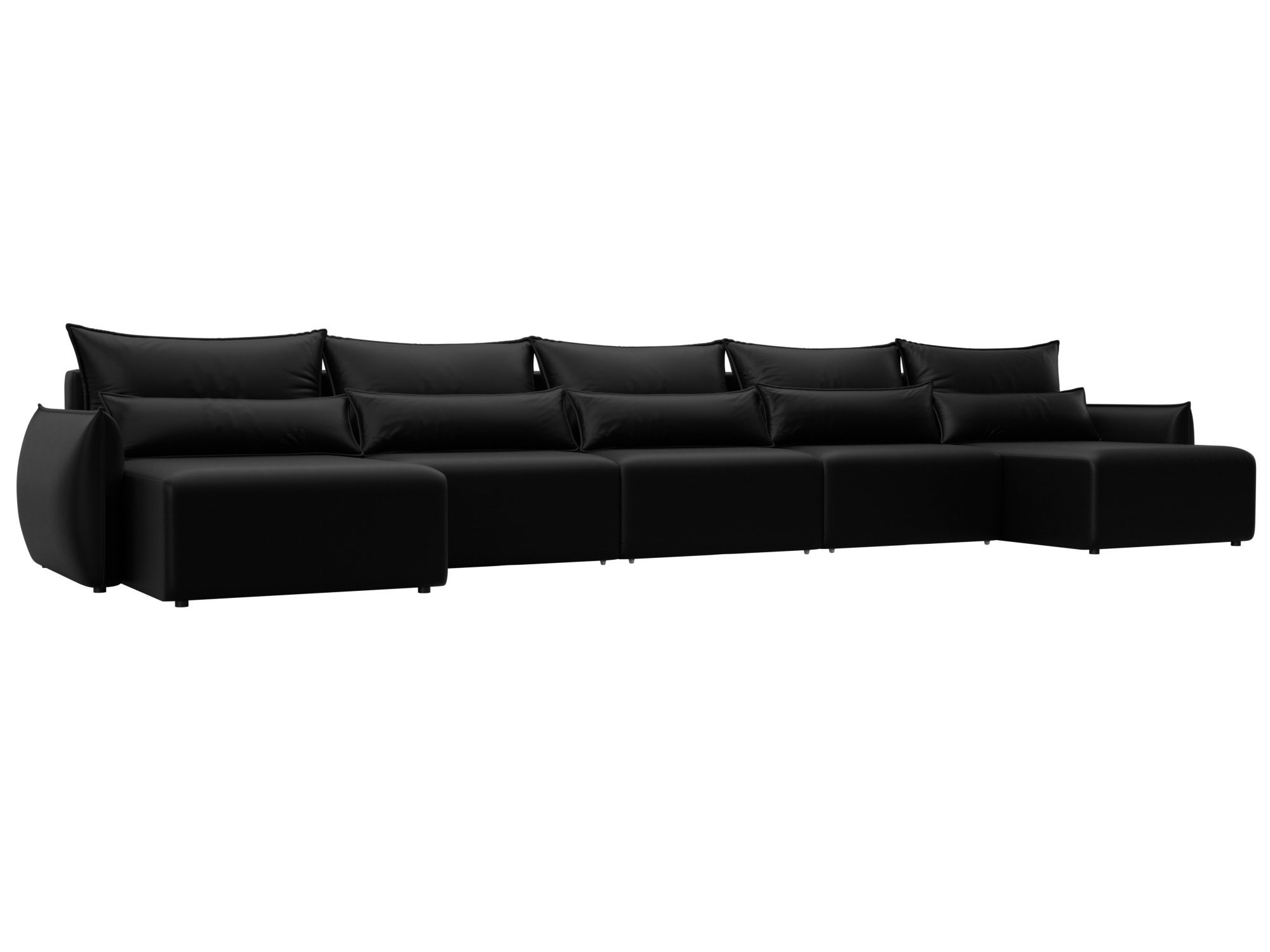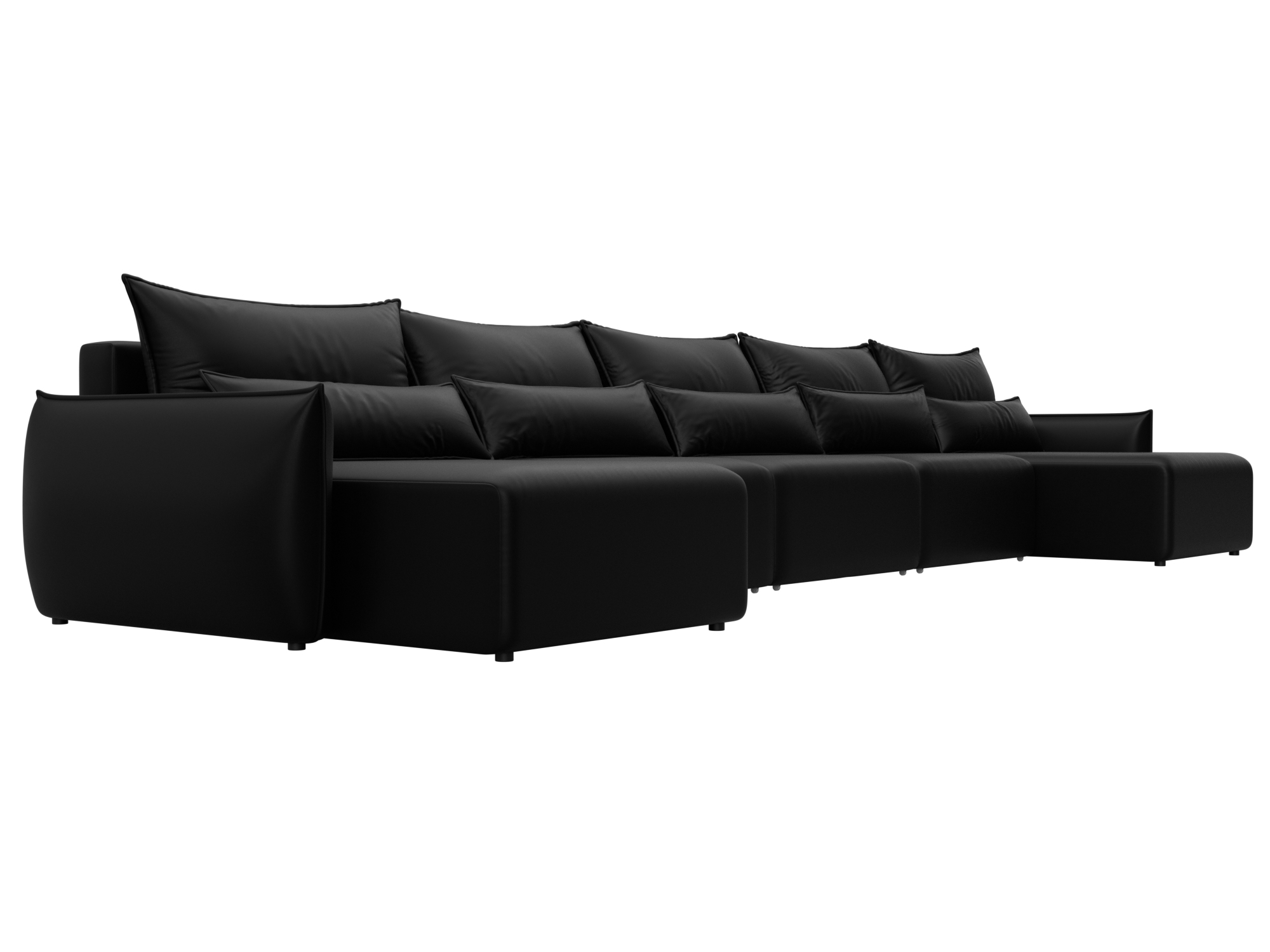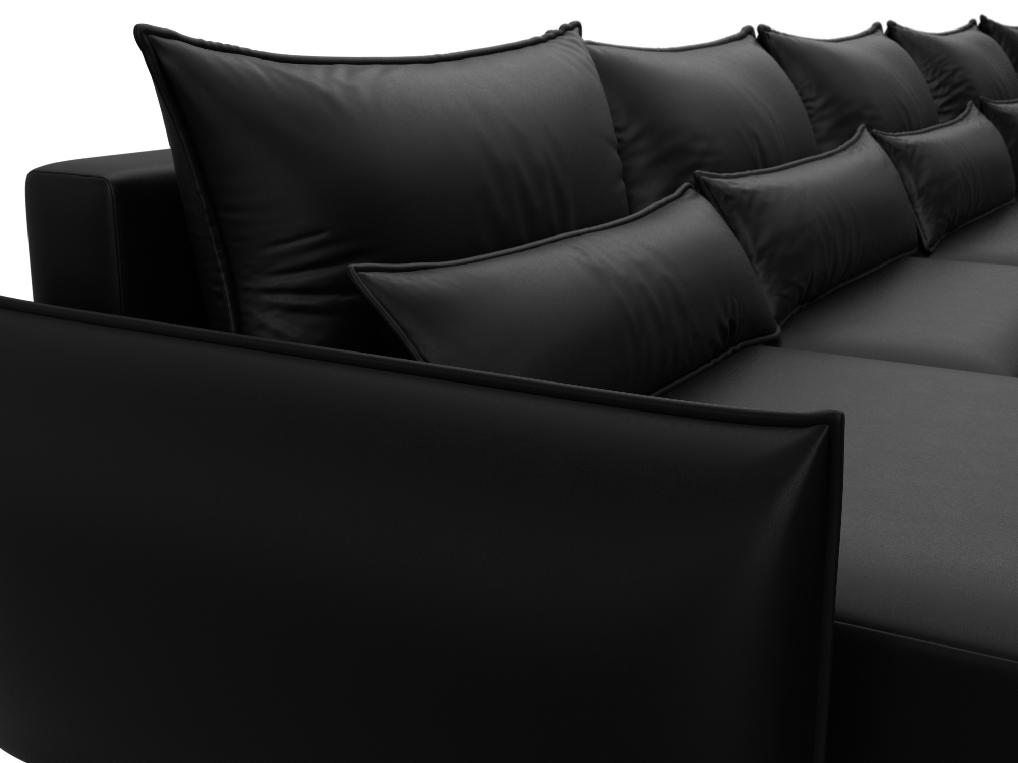 Диван П-образный Лига-051 НПБ МегаЛонг, GRIFON 18 черный, Экокожа
