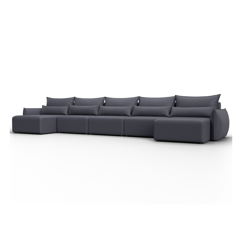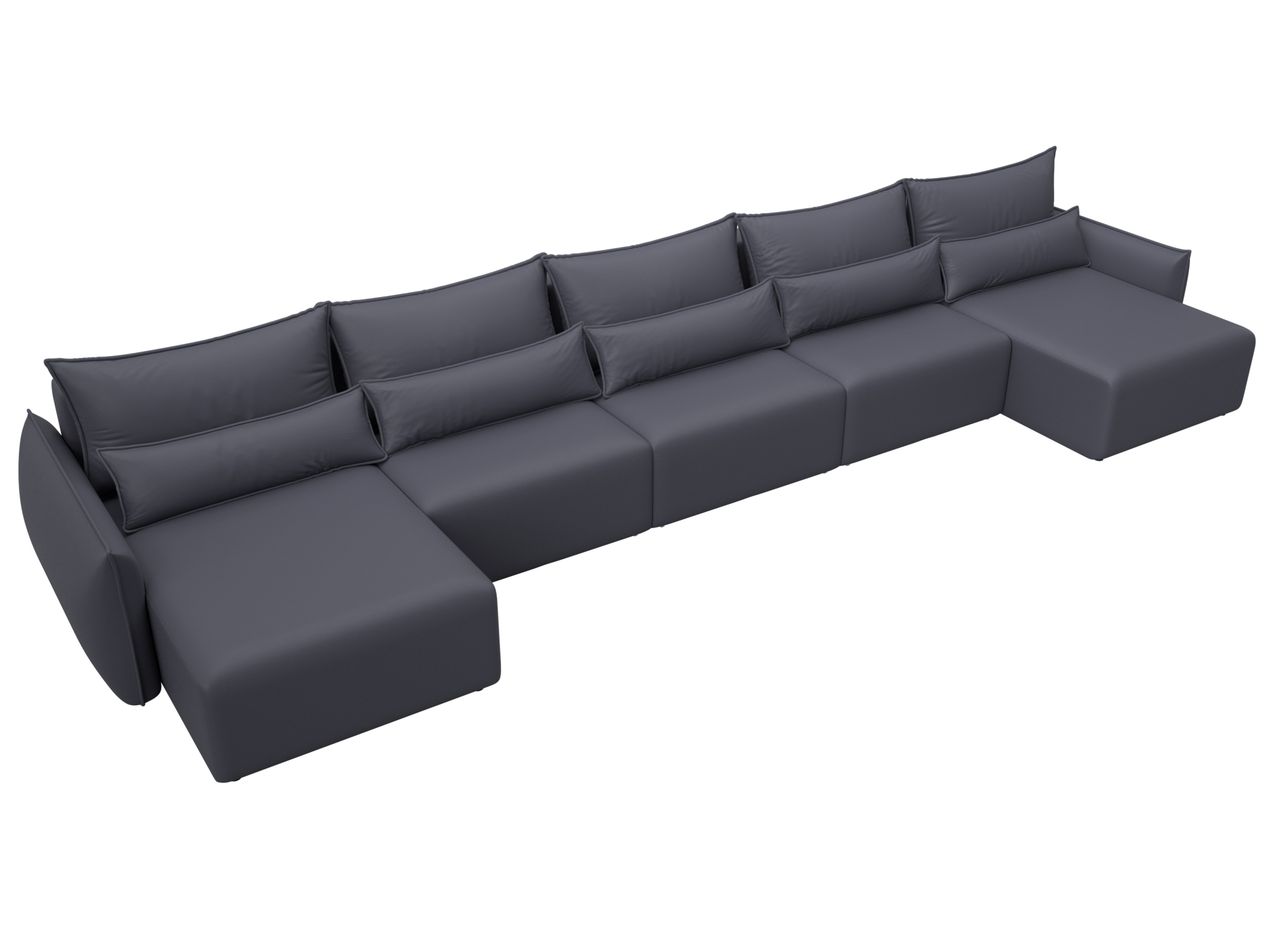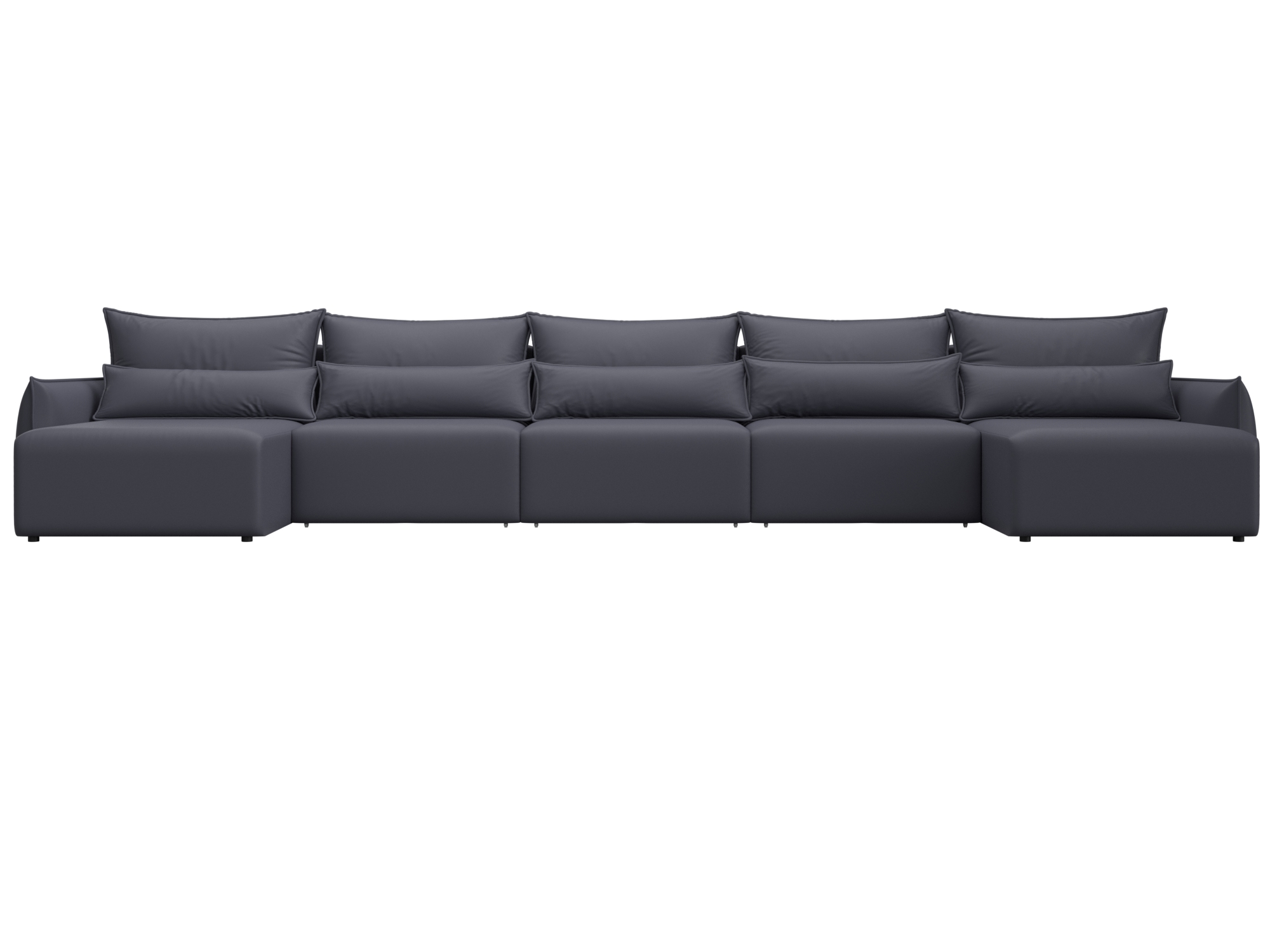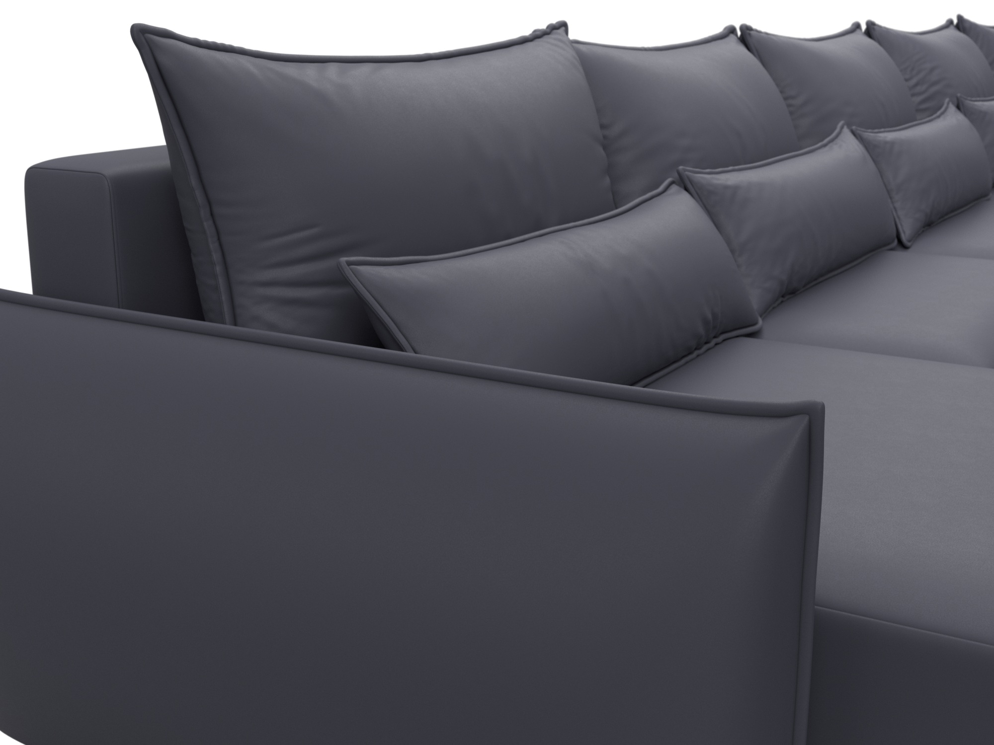 Диван П-образный Лига-051 НПБ МегаЛонг, GRIFON 18 черный, Экокожа