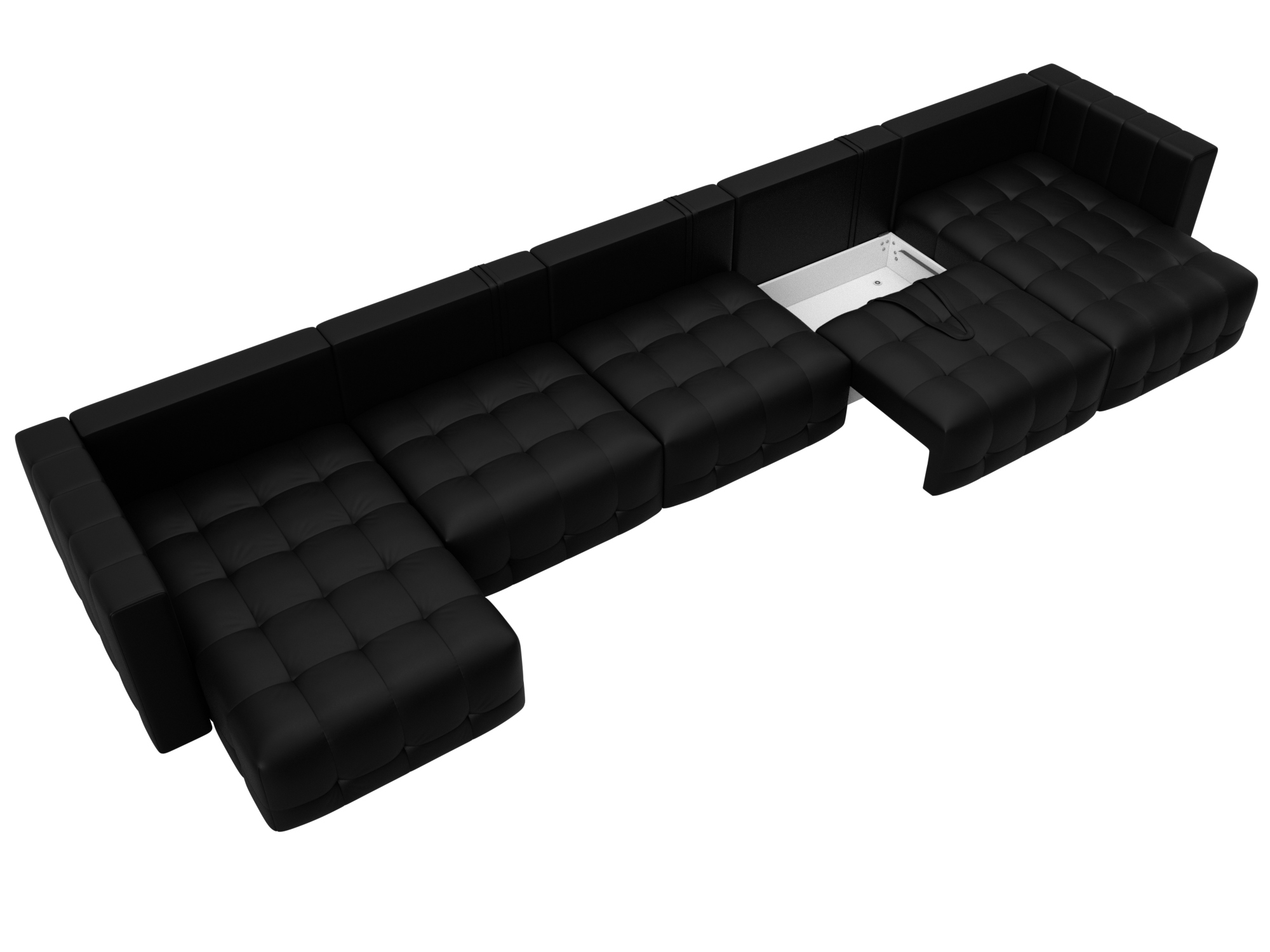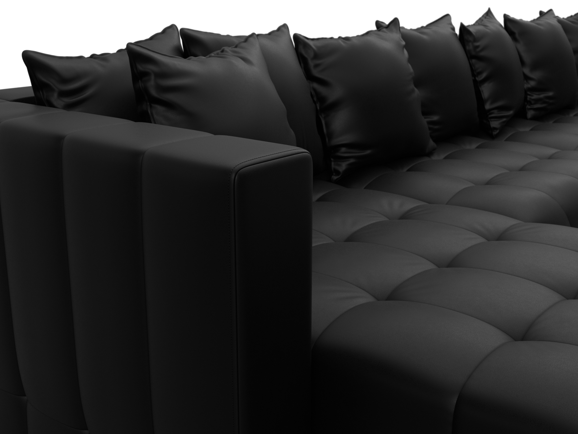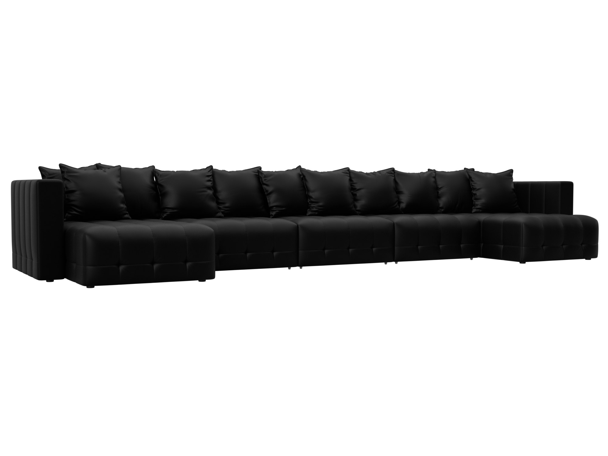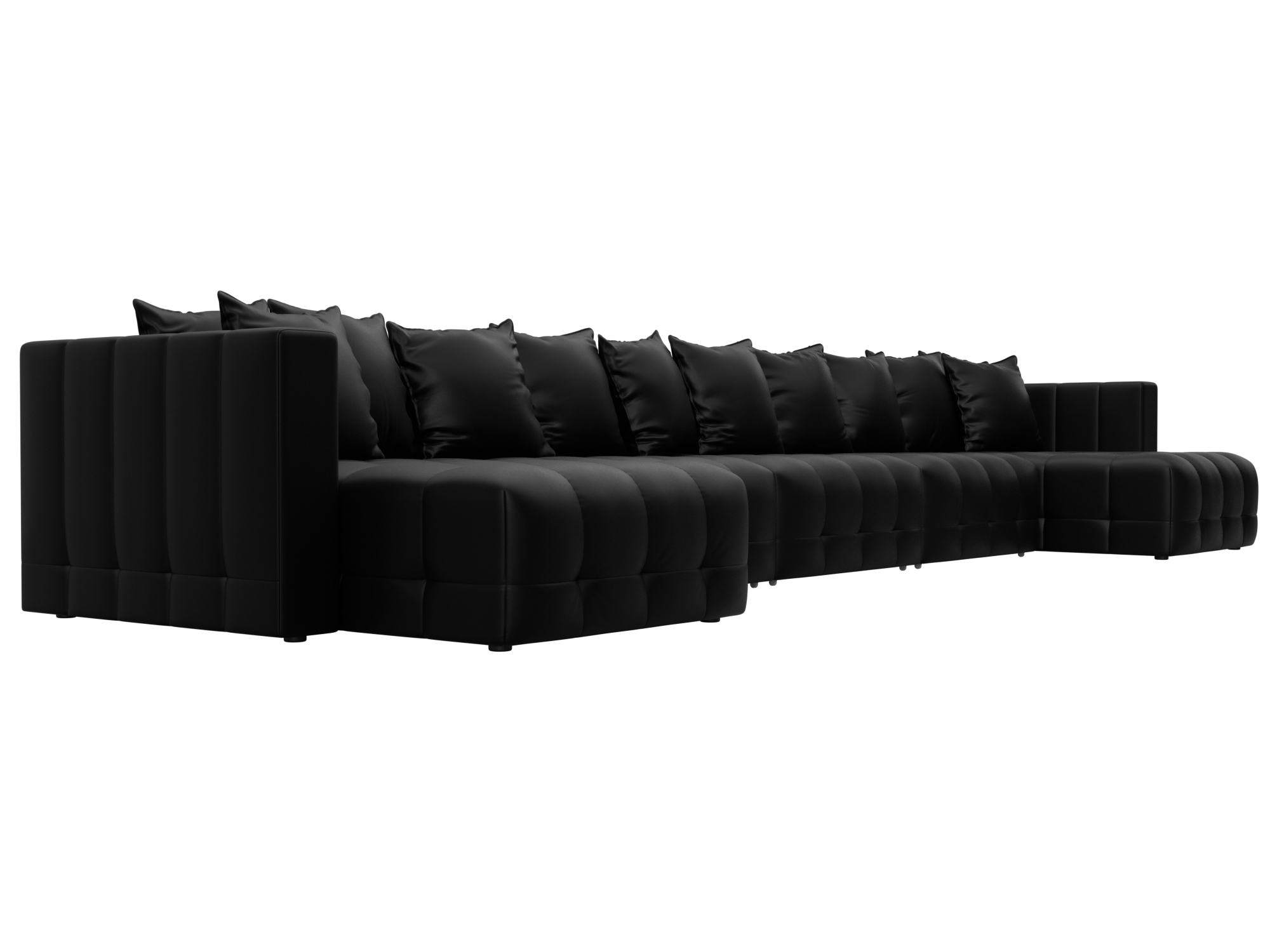 Диван П-образный Лига-052 НПБ МегаЛонг, GRIFON 18 черный, Экокожа