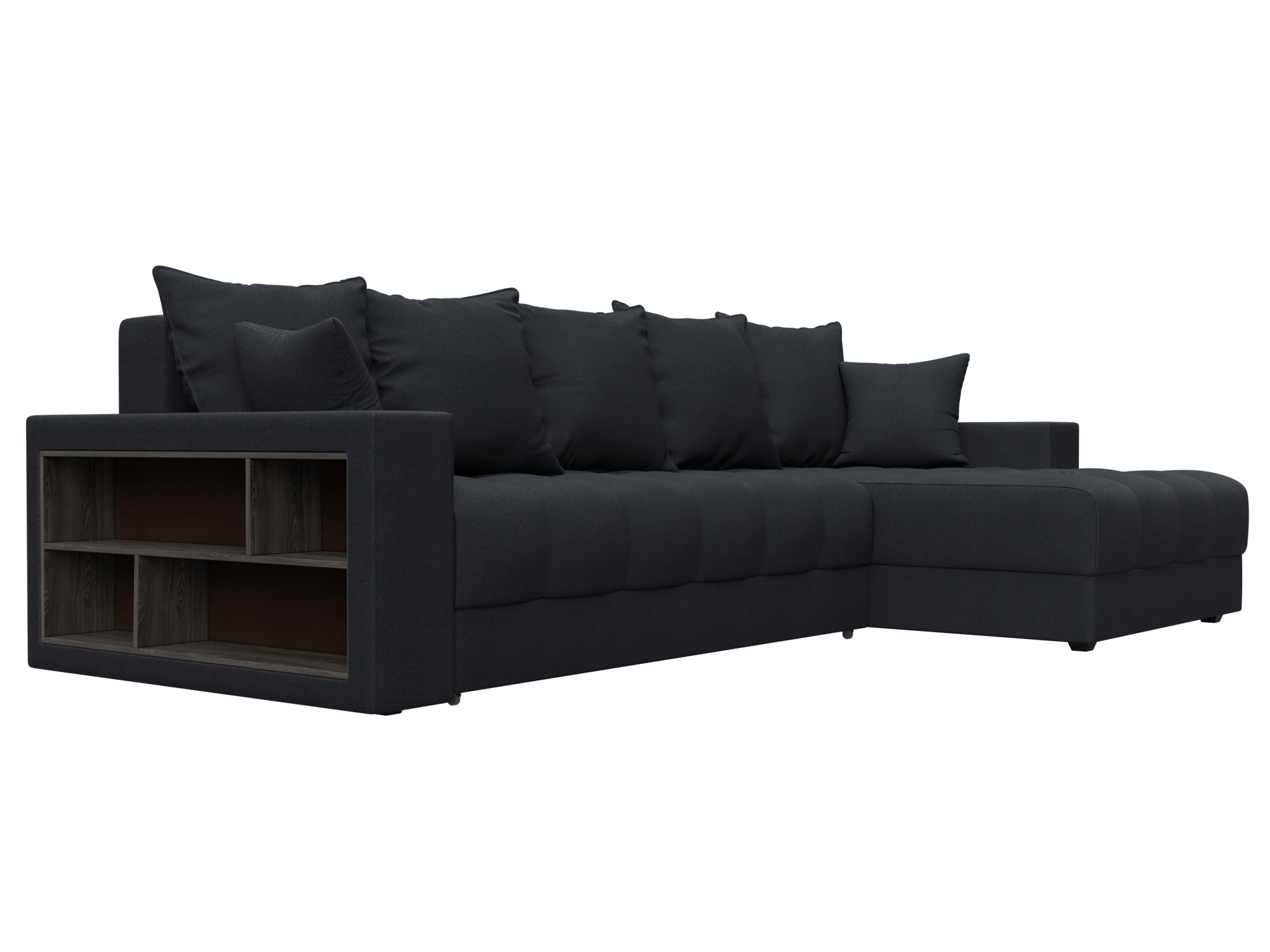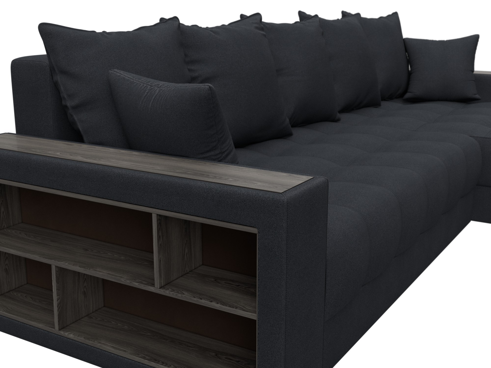 Диван угловой с декором и полкой Лига-050 НПБ, JOLY 16 темно-серый, Замша