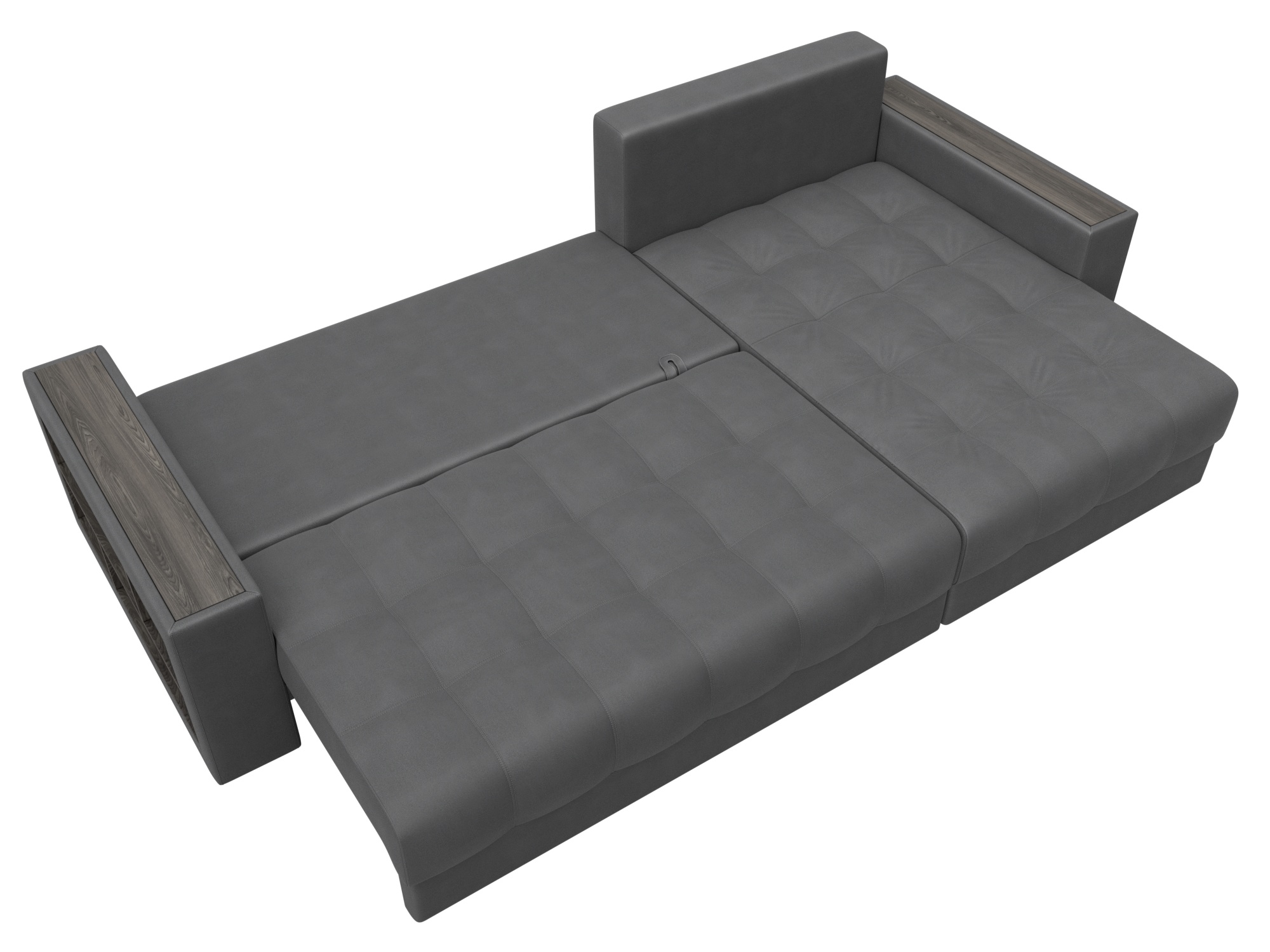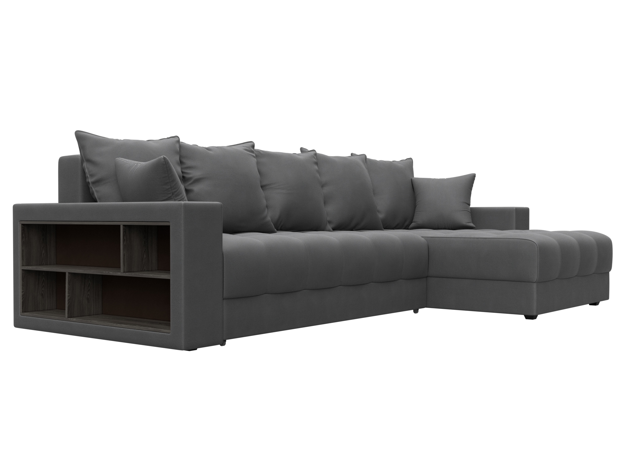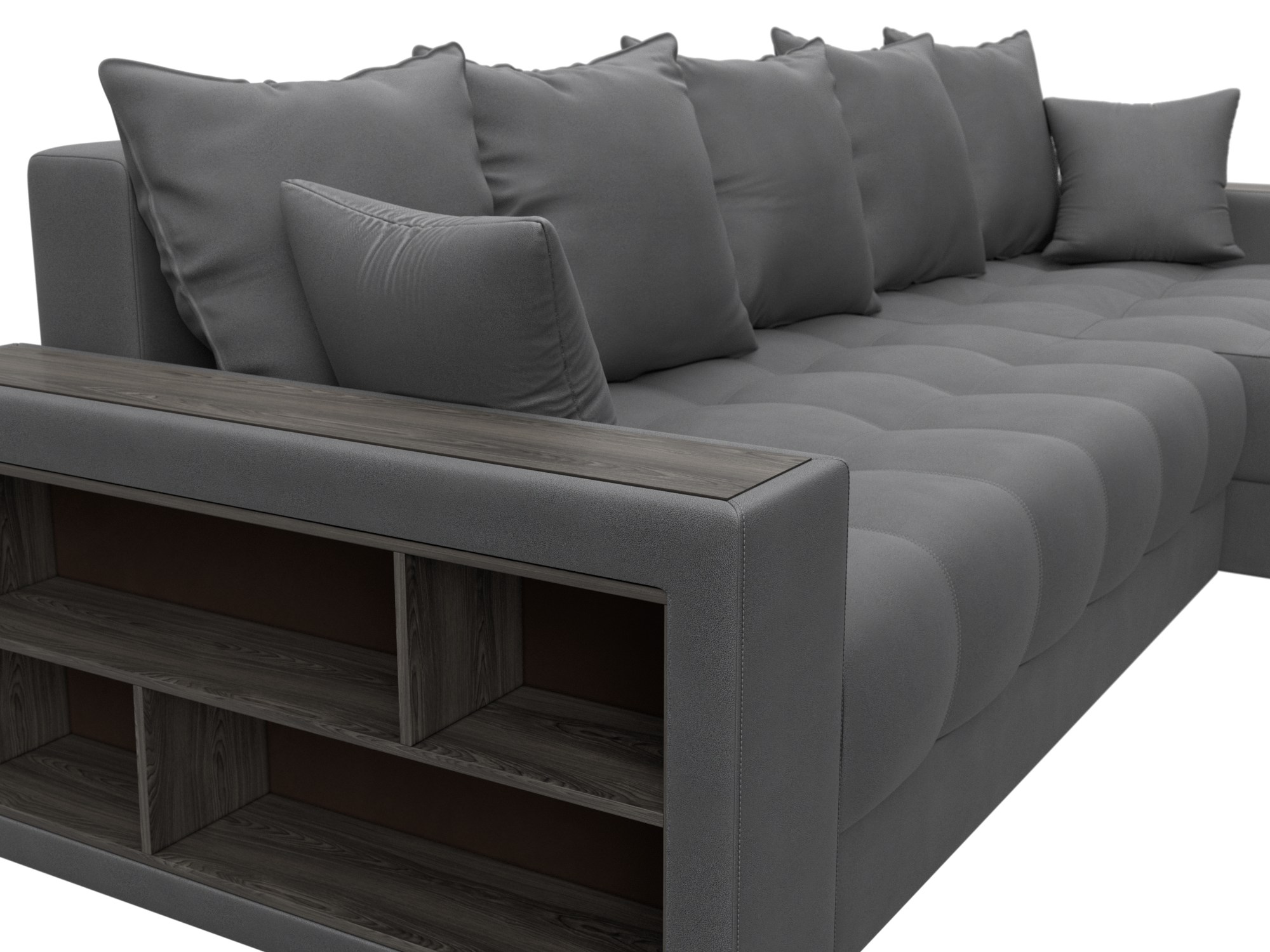 Диван угловой с декором и полкой Лига-050 НПБ, JOLY 13 серый, Замша