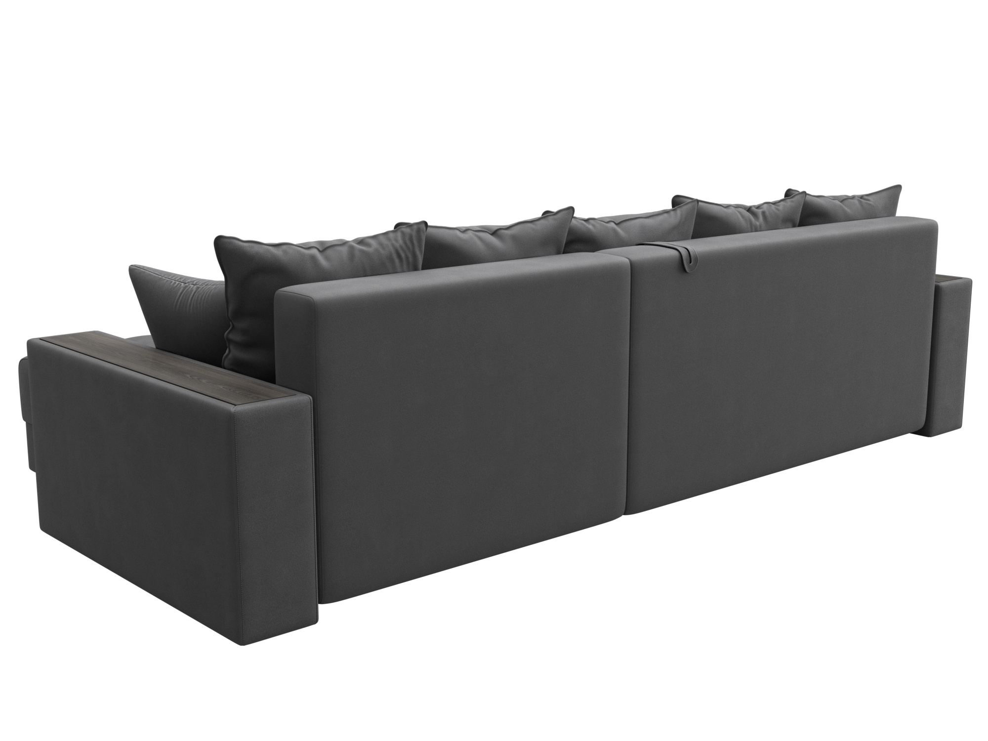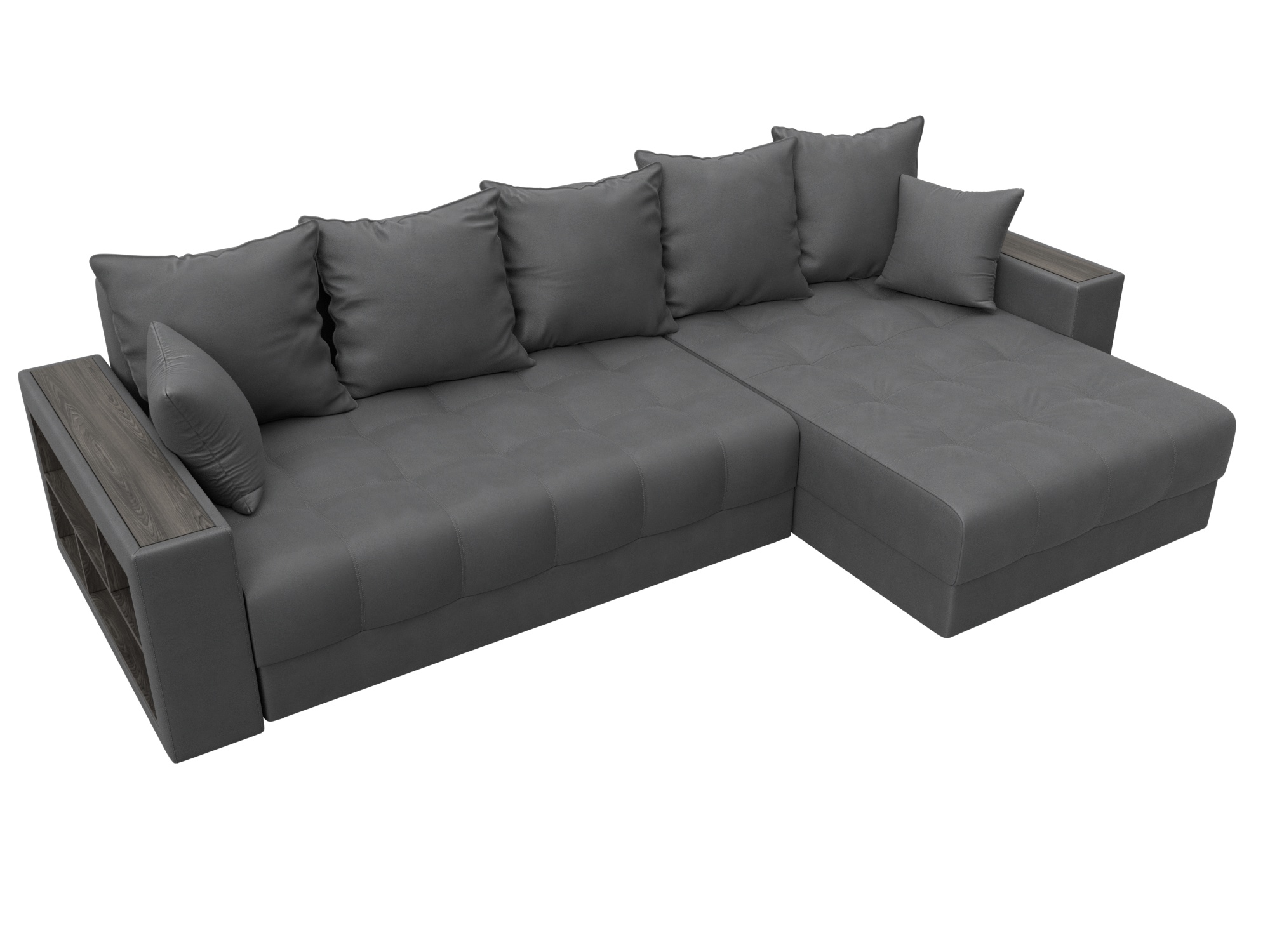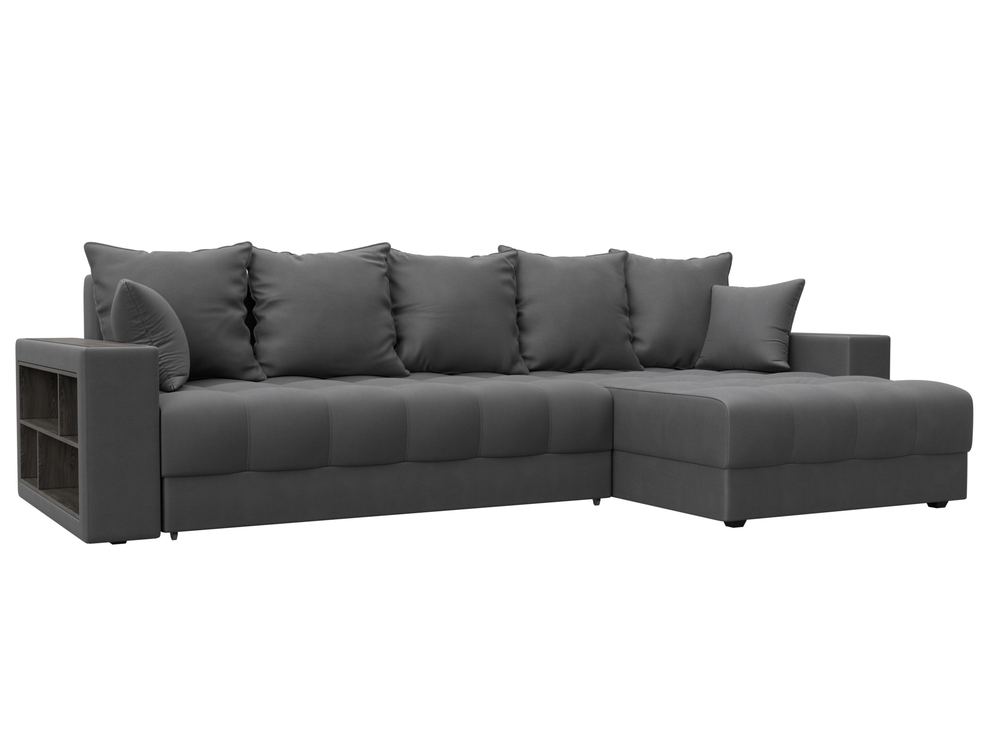 Диван угловой с декором и полкой Лига-050 НПБ, JOLY 13 серый, Замша