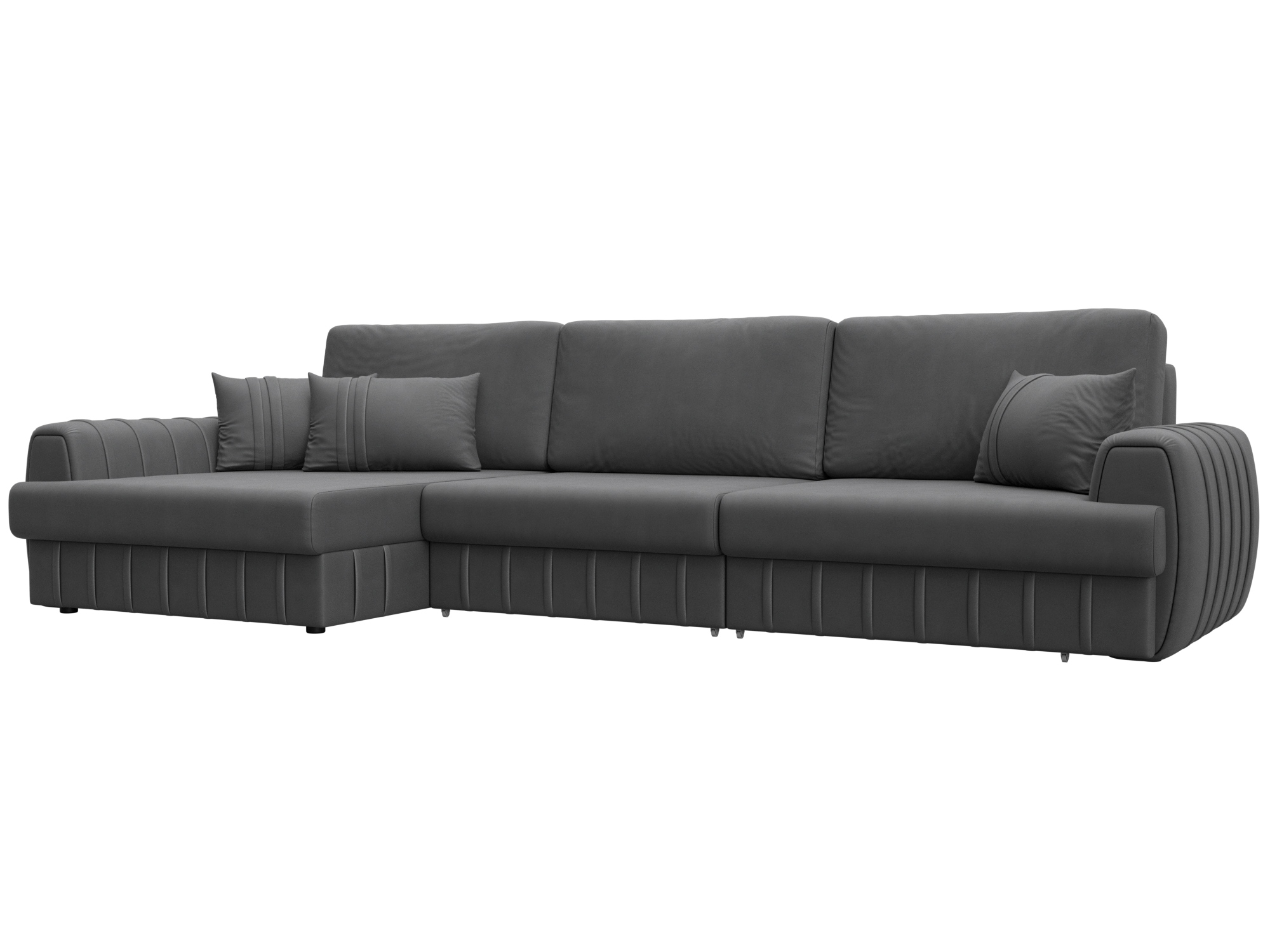 Диван угловой Лига-057 НПБ Лонг угол левый Серый, Замша