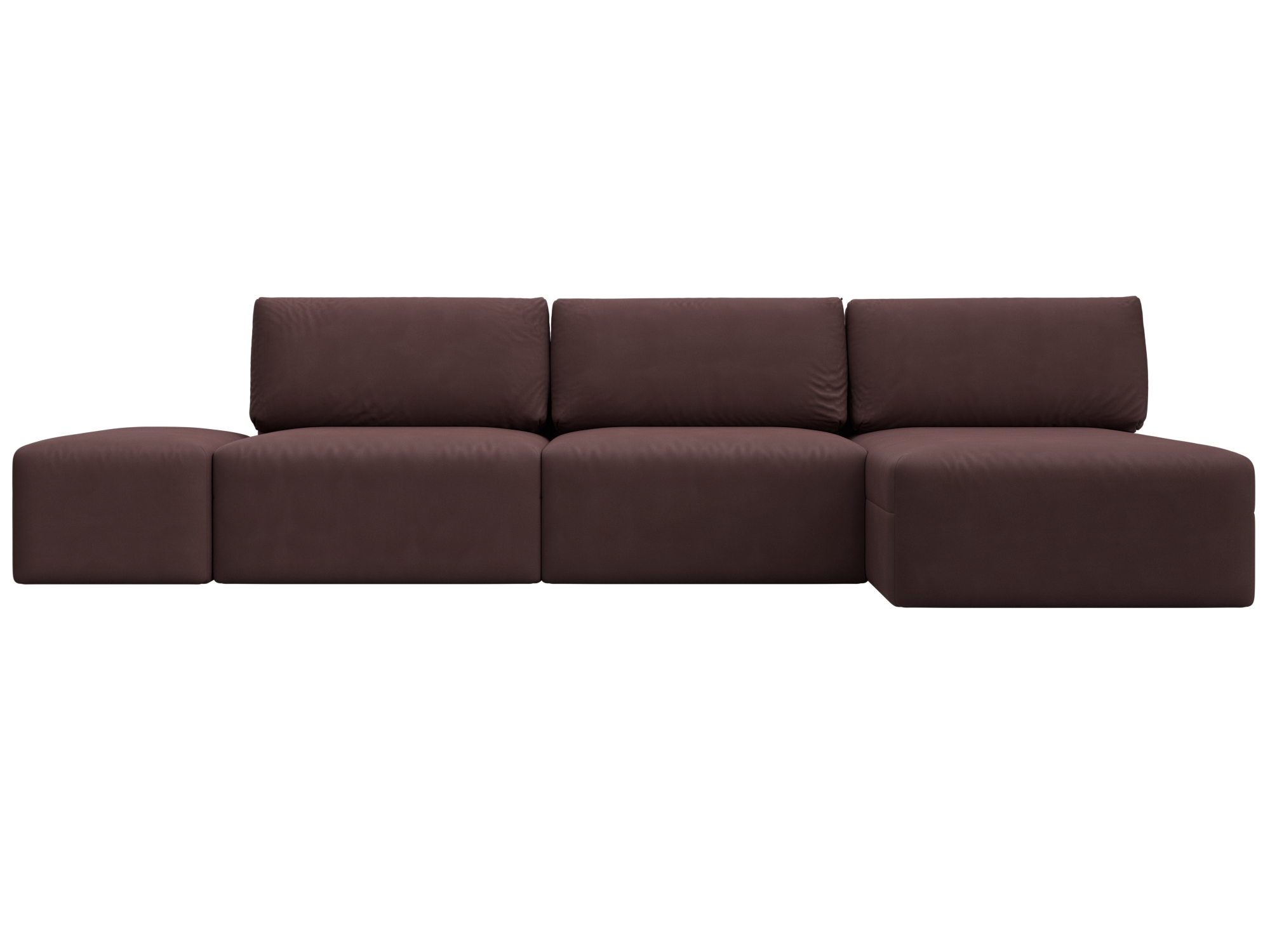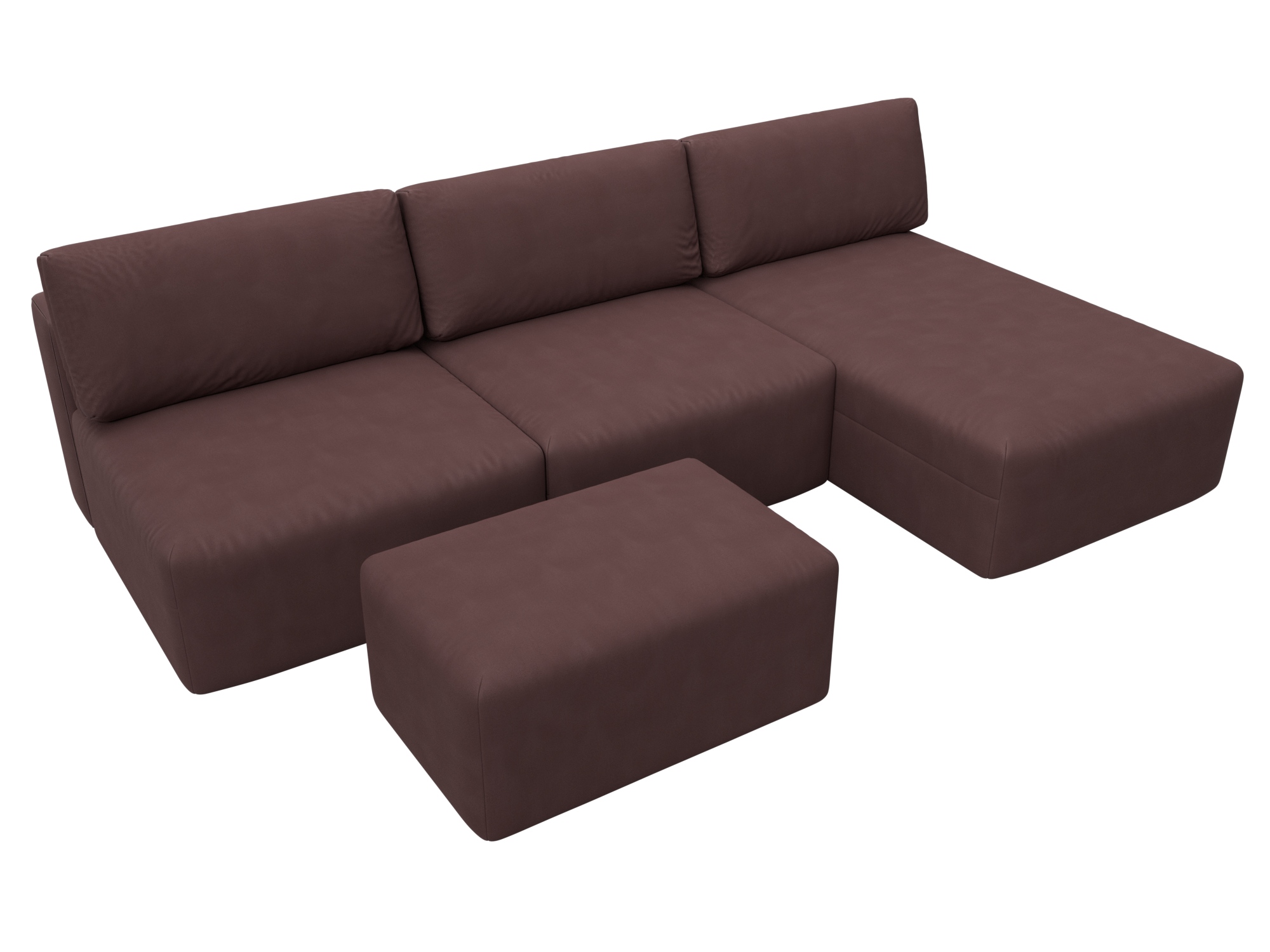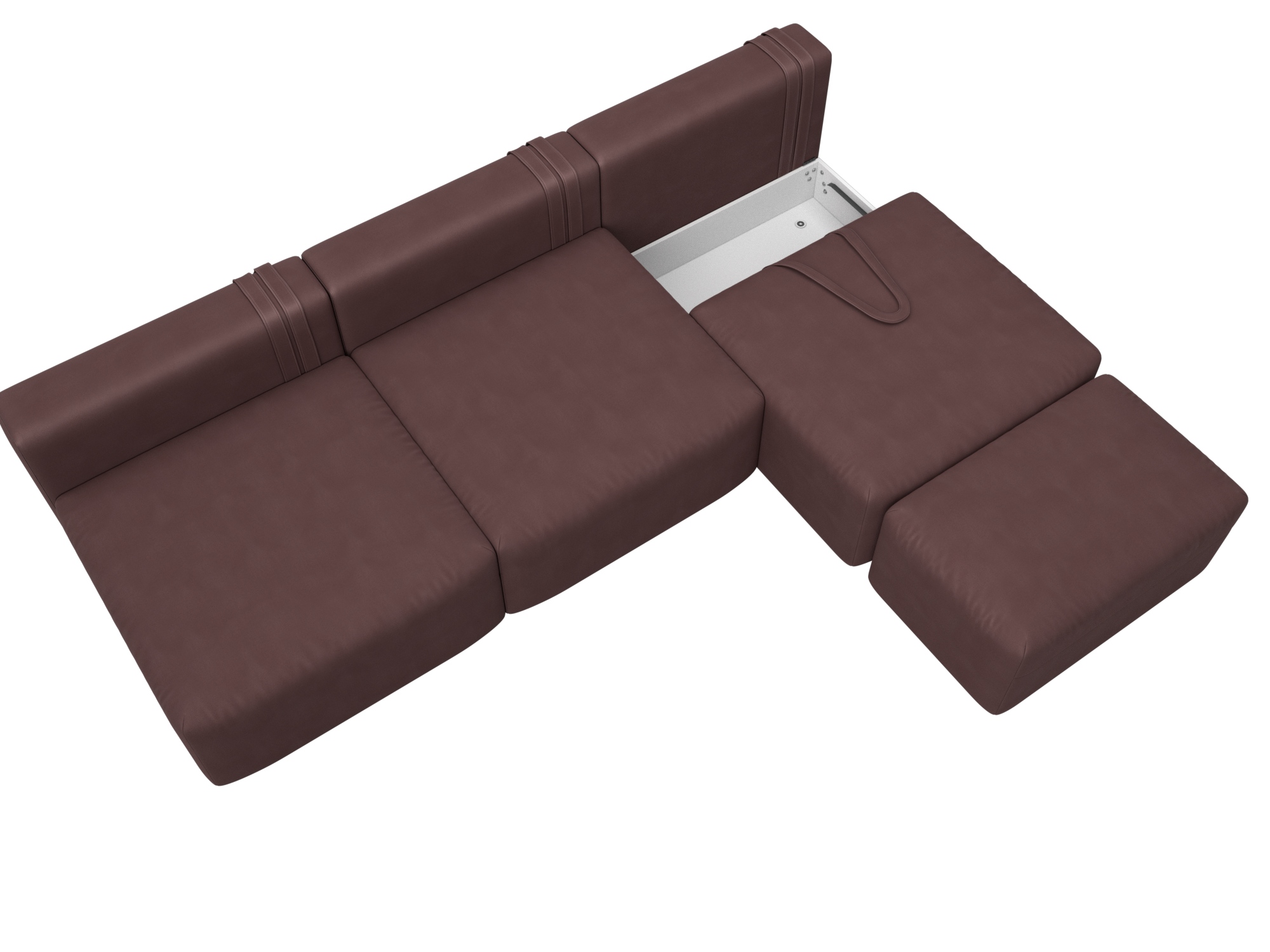 Диван угловой модульный с пуфом Лига-060 НПБ Лонг угол универсальный Бордовый, Замша