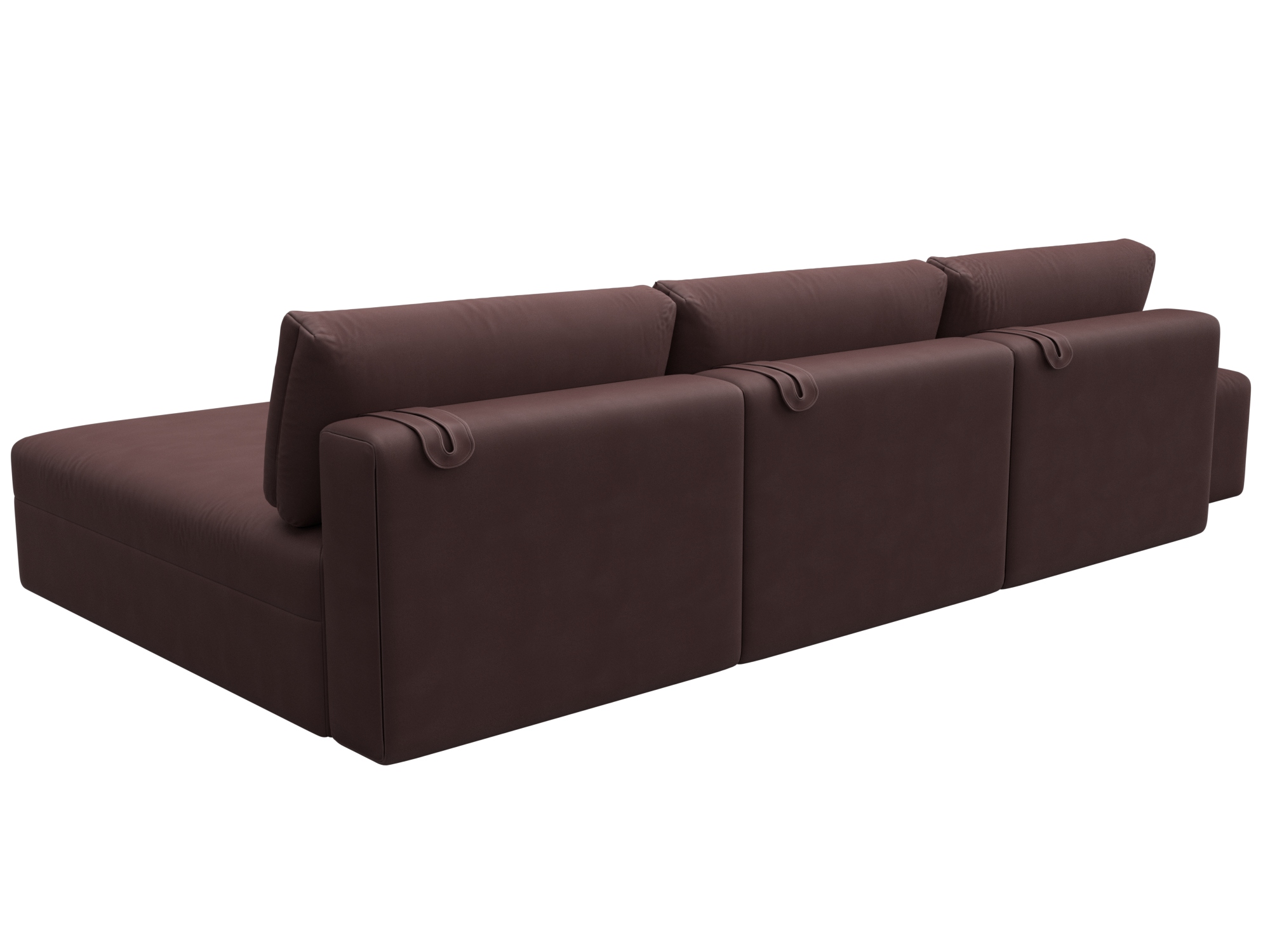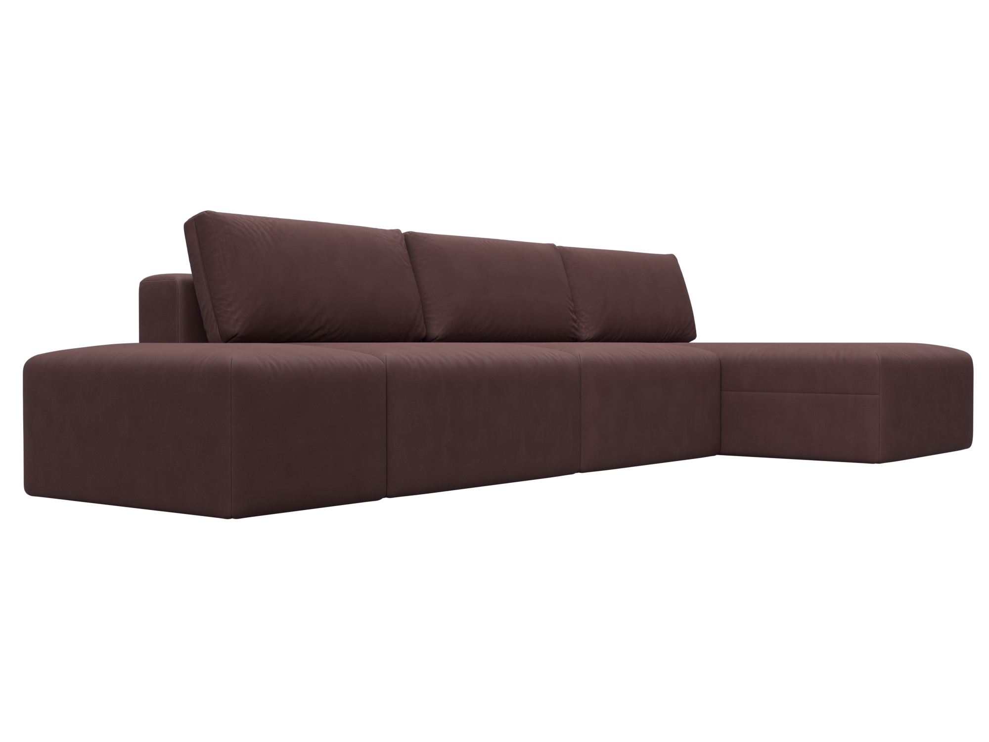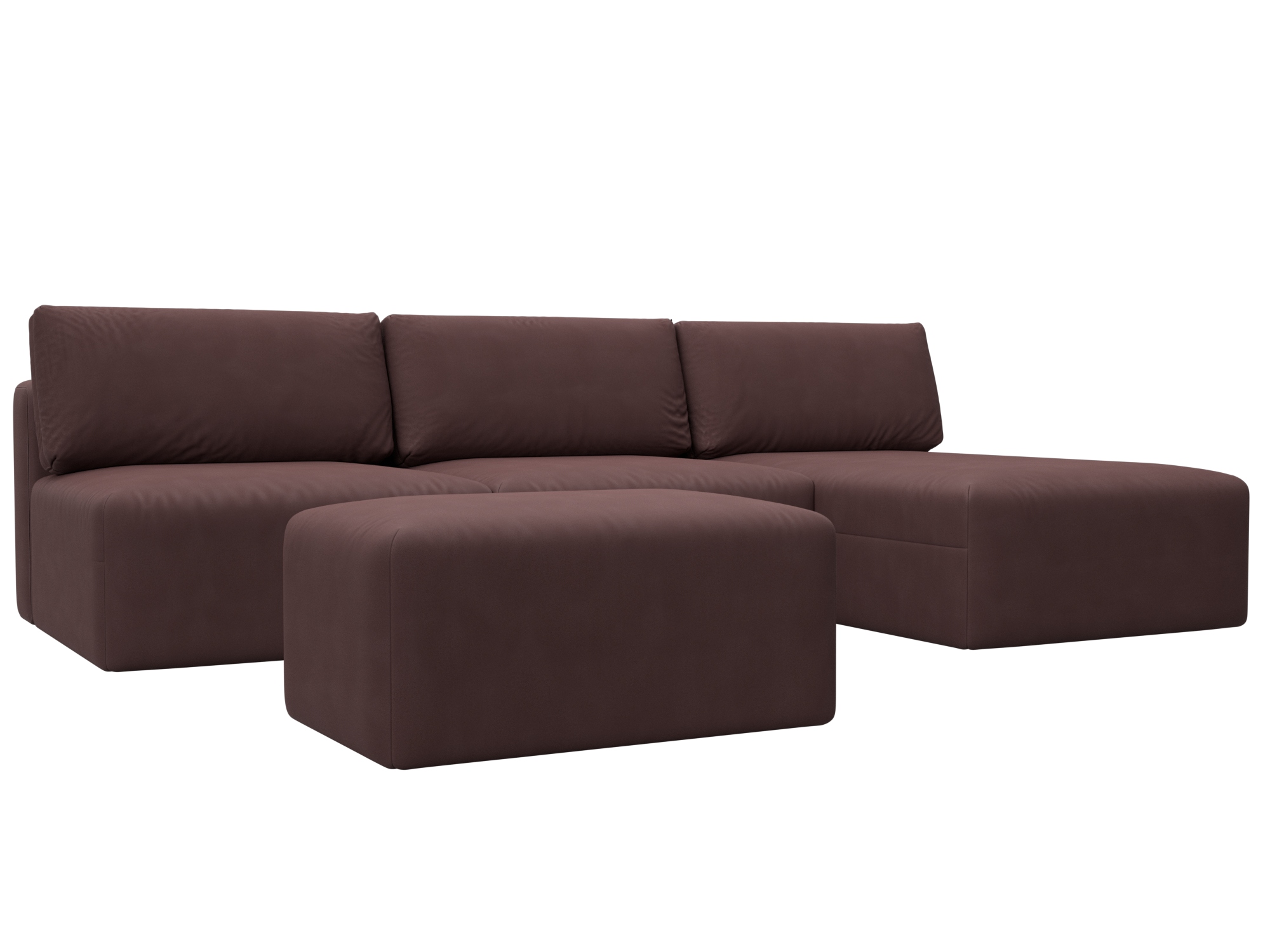 Диван угловой модульный с пуфом Лига-060 НПБ Лонг угол универсальный Бордовый, Замша