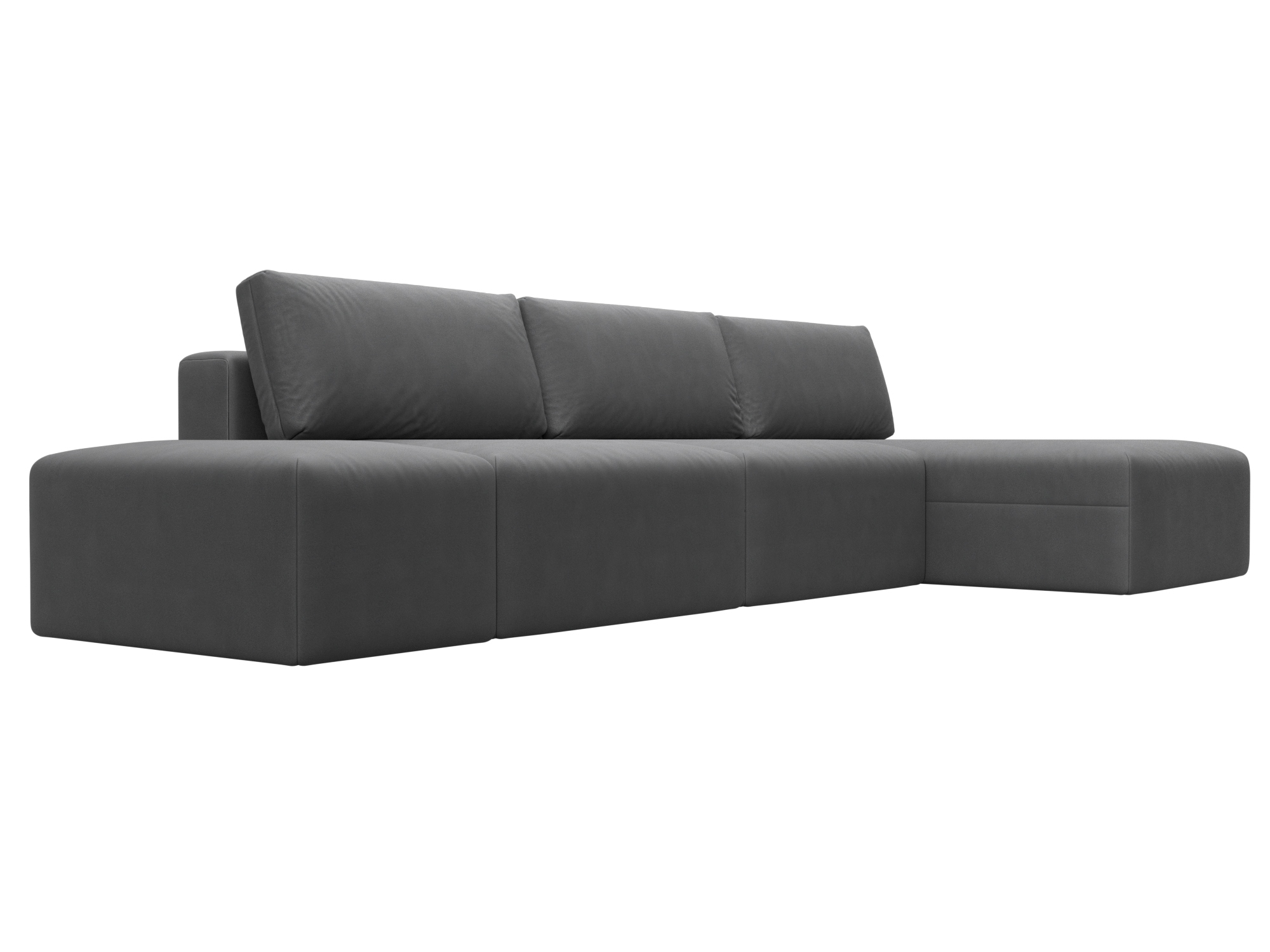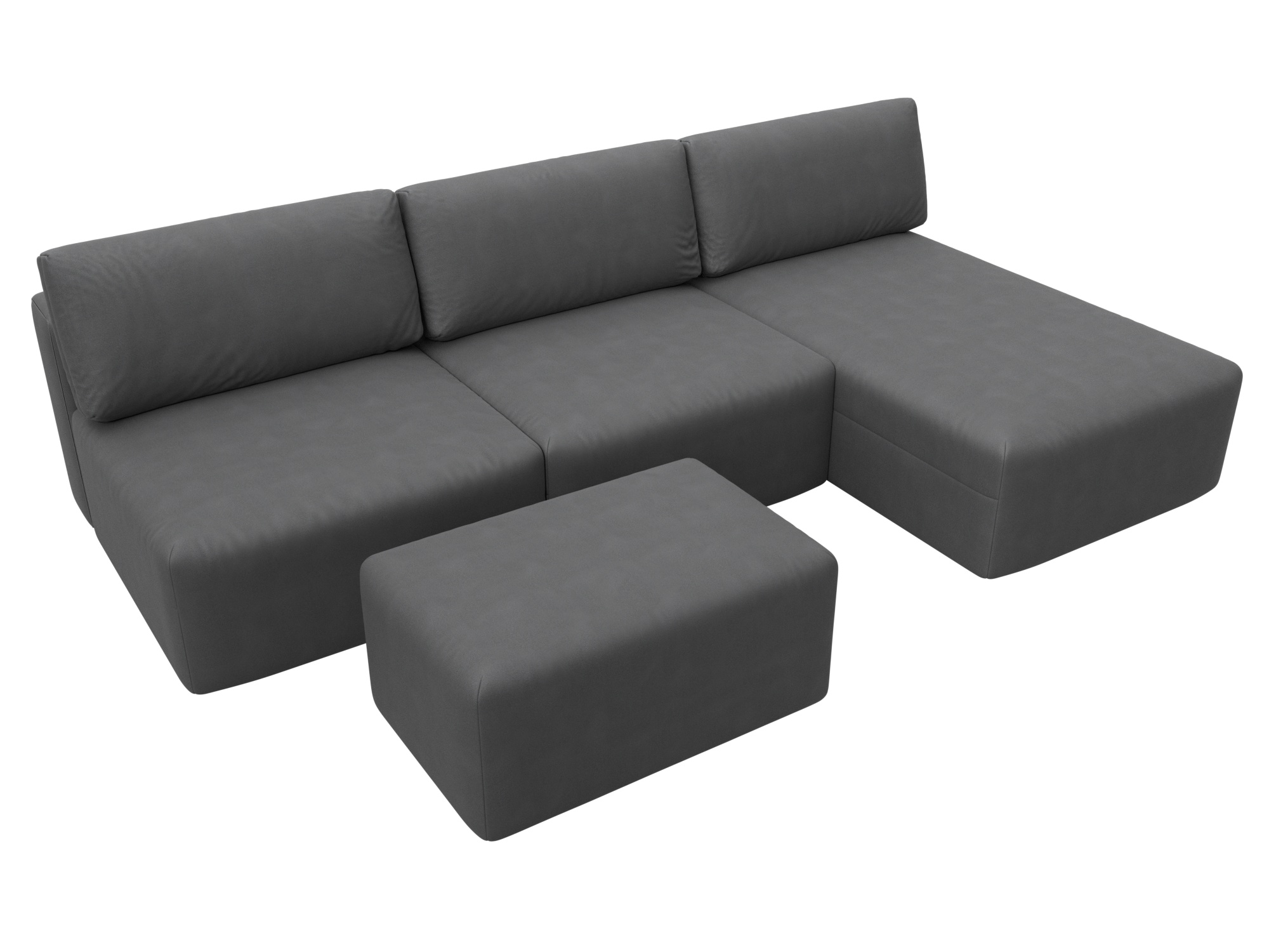 Диван угловой модульный с пуфом Лига-060 НПБ Лонг угол универсальный Серый, Замша