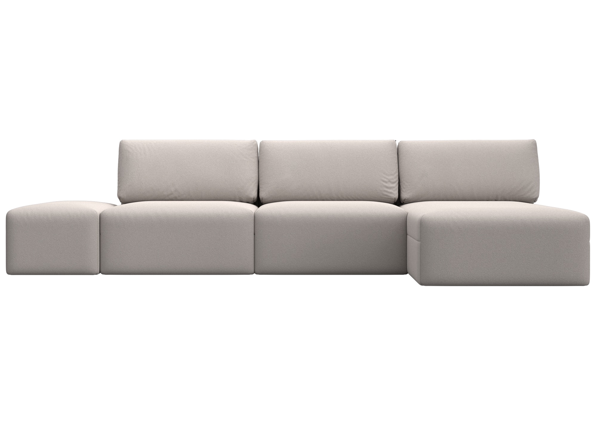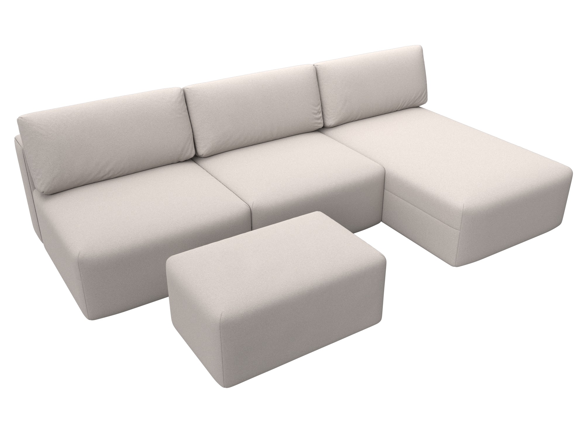 Диван угловой модульный с пуфом Лига-060 НПБ Лонг угол универсальный Бежевый, Замша