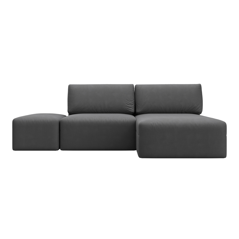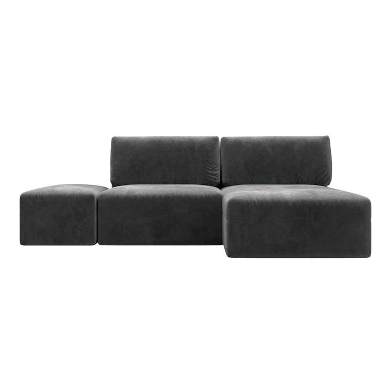 Диван угловой модульный с пуфом Лига-060 НПБ угол универсальный, JOLY 16 темно-серый, Замша