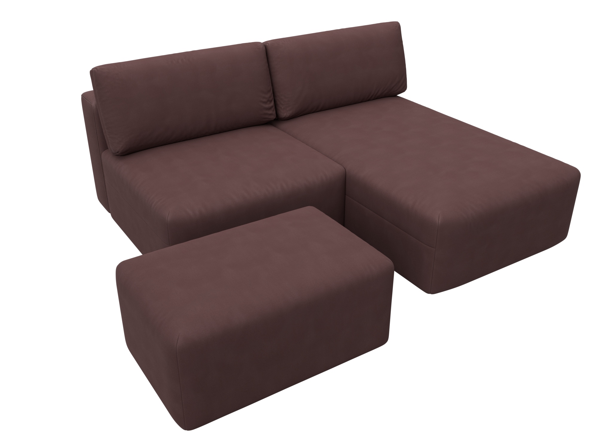 Диван угловой модульный с пуфом Лига-060 НПБ угол универсальный, JOLY 09 бордовый, Замша