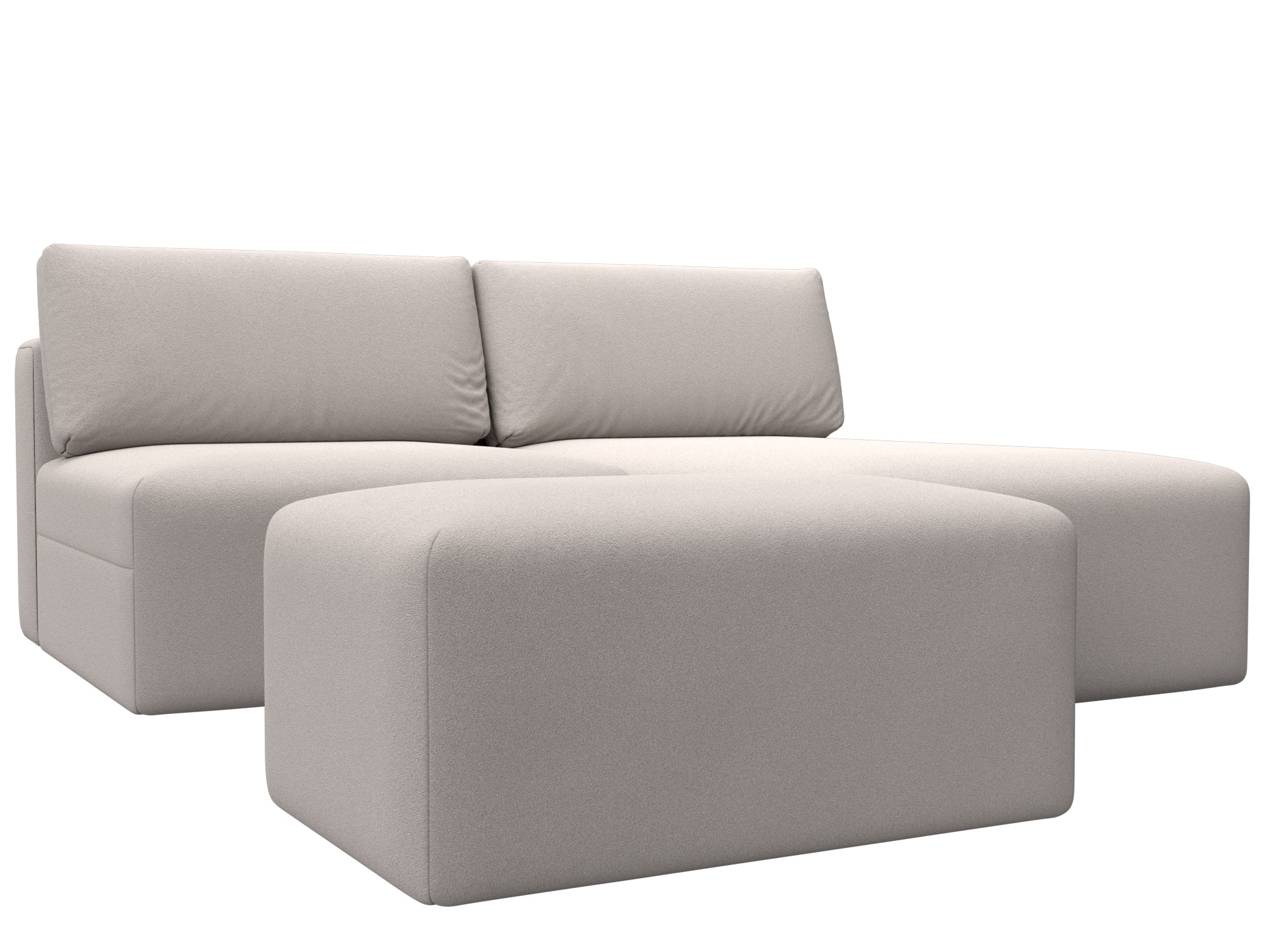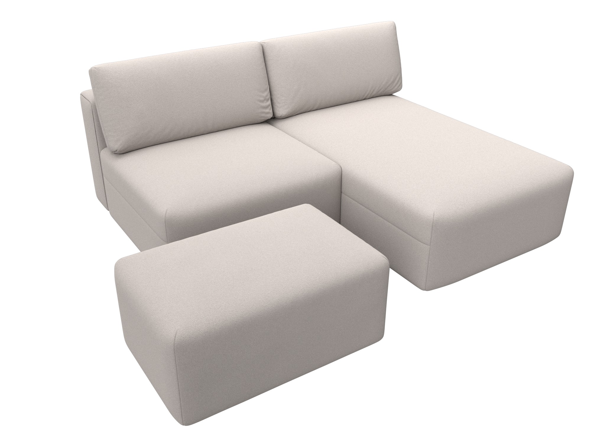 Диван угловой модульный с пуфом Лига-060 НПБ угол универсальный, JOLY 05 бежевый, Замша
