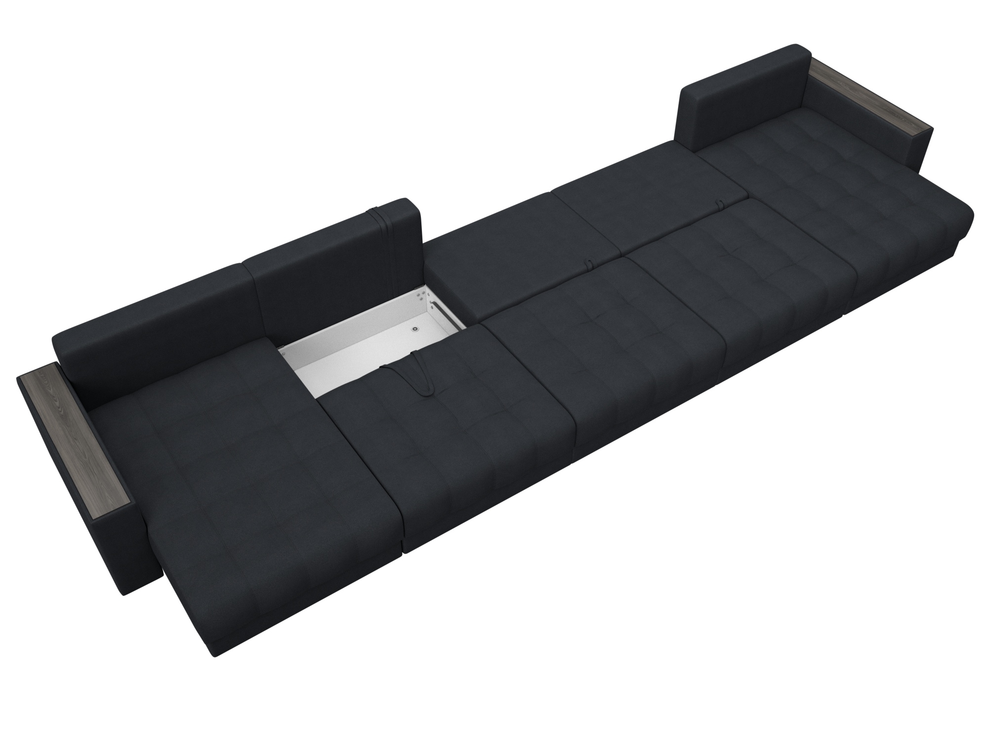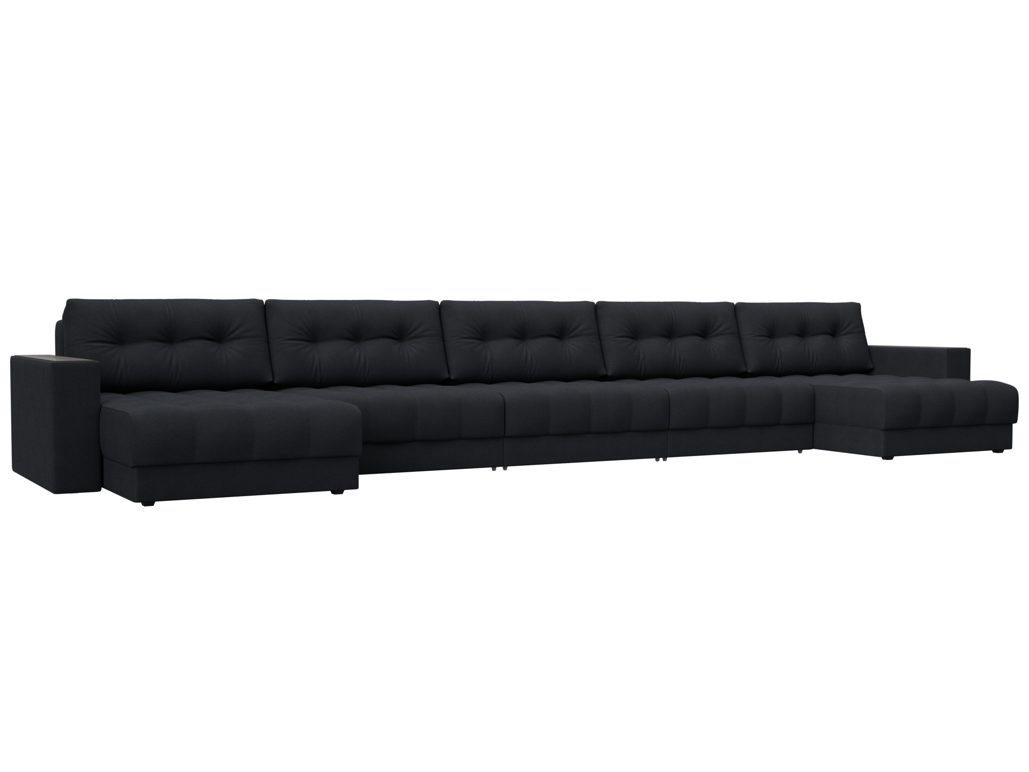 Диван П-образный с декором Лига-049 НПБ Мегалонг, JOLY 16 темно-серый, Замша