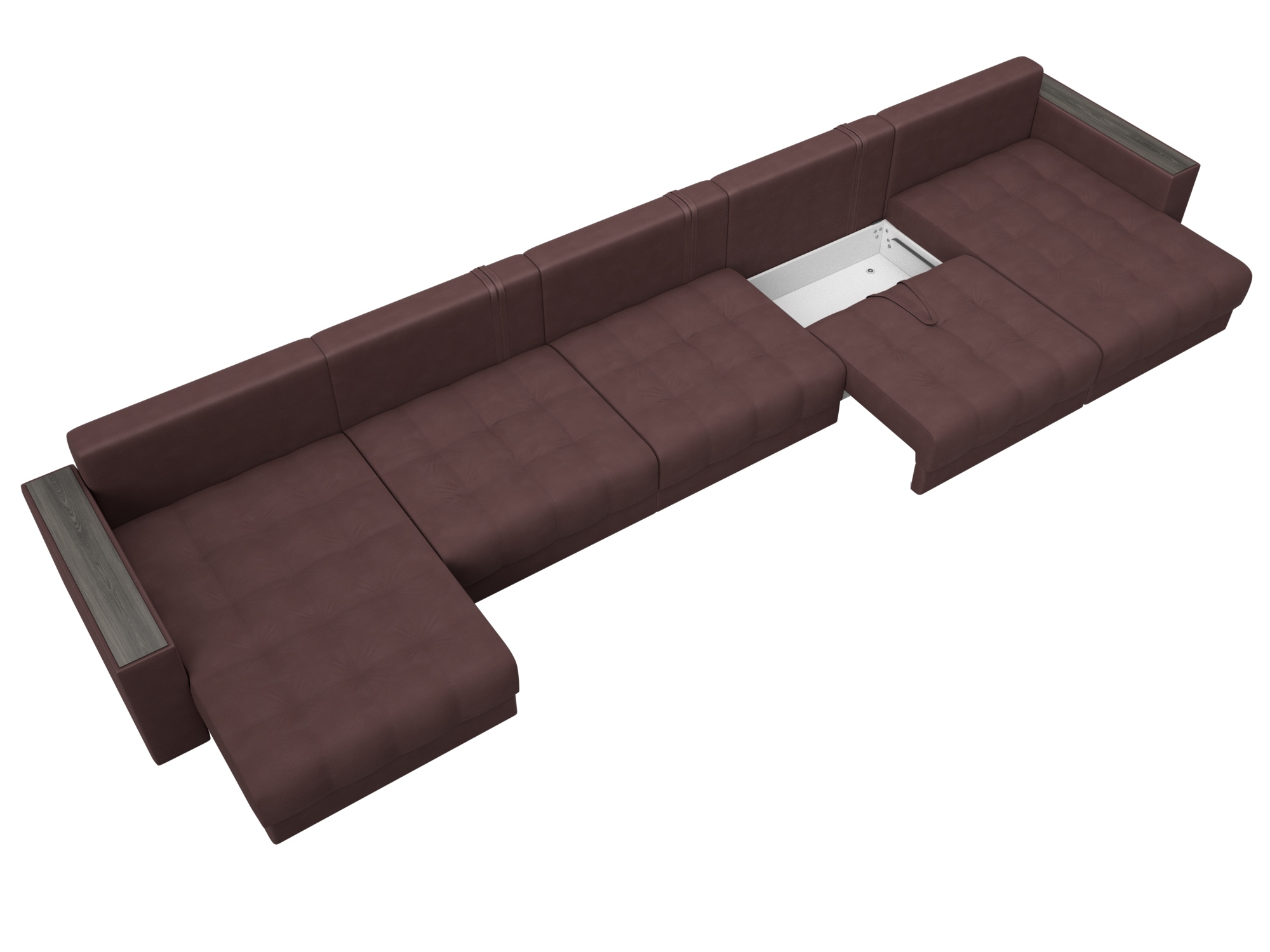 Диван П-образный с декором Лига-049 НПБ Мегалонг, JOLY 09 бордовый, Замша