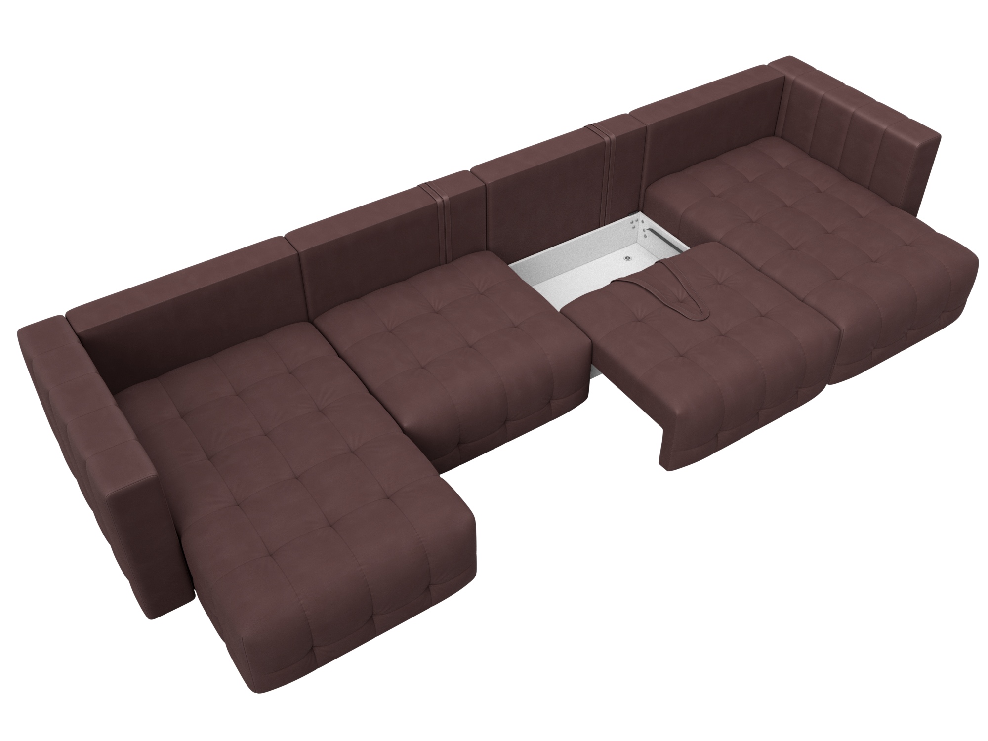 Диван П-образный Лига-052 НПБ Лонг бордовый, Замша