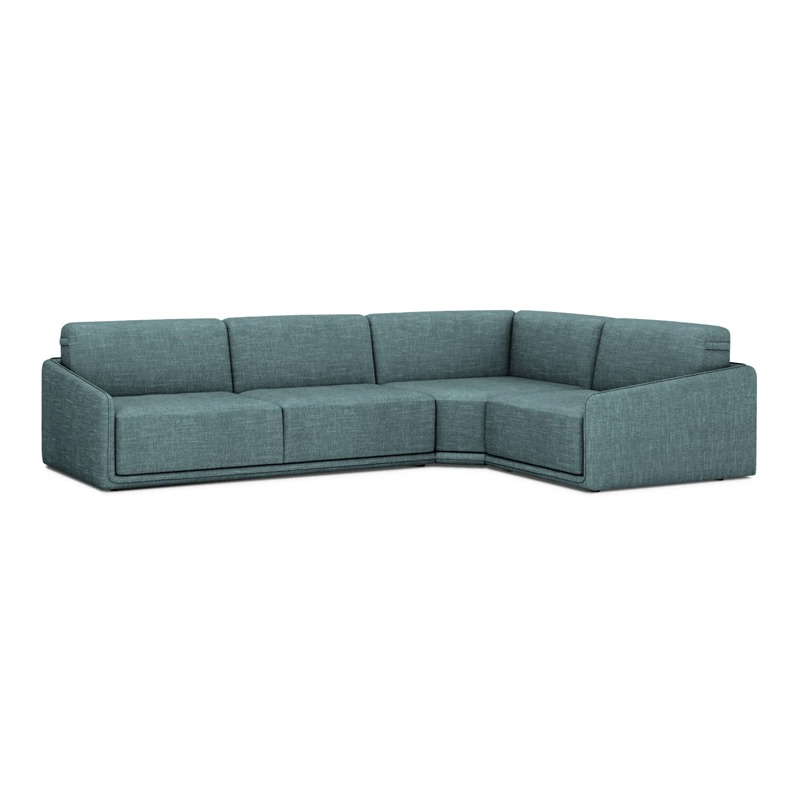 Угловой модуль квадратной формы может располагаться слева или справа. Сиденье оснащено механизмом подъема с пневматическими лифтами. Под ним расположено отделение для хранения.