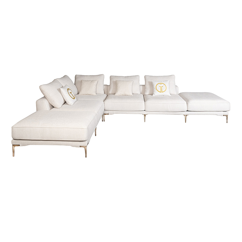 Запросить индивидуальное предложениеКомплект мебели №51 модульный Диван Tesoro (левый угол). В состав комплекта входит: модуль прямой DO+P-1шт, модуль угловой правый DR+P- 1шт. Комплект выполнен в ткани из коллекции Garda Decor- шенилл Mobi Ecru. В состав комплекта входят декоративные подушки: 45*45см в ткани Atmosphera 010-2шт, 45*45см в ткани Atmosphera 000-2шт с вышивкой эмблема GD в цвет золото. Металлические опоры 18см, цвет бронза. Габариты комплекта: ширина- 2900мм, глубина-3800мм, высота- 900мм. Глубина сиденья- 750мм, высота посадочного места- 440мм.