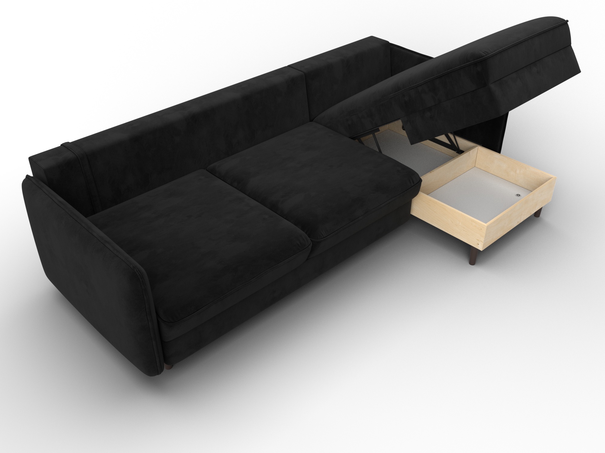 Диван угловой Лига-064 НПБ угол универсальный, SEVEN 35 черный, Велюр