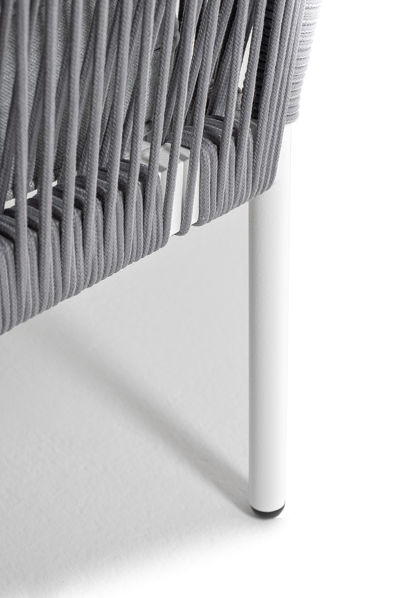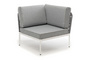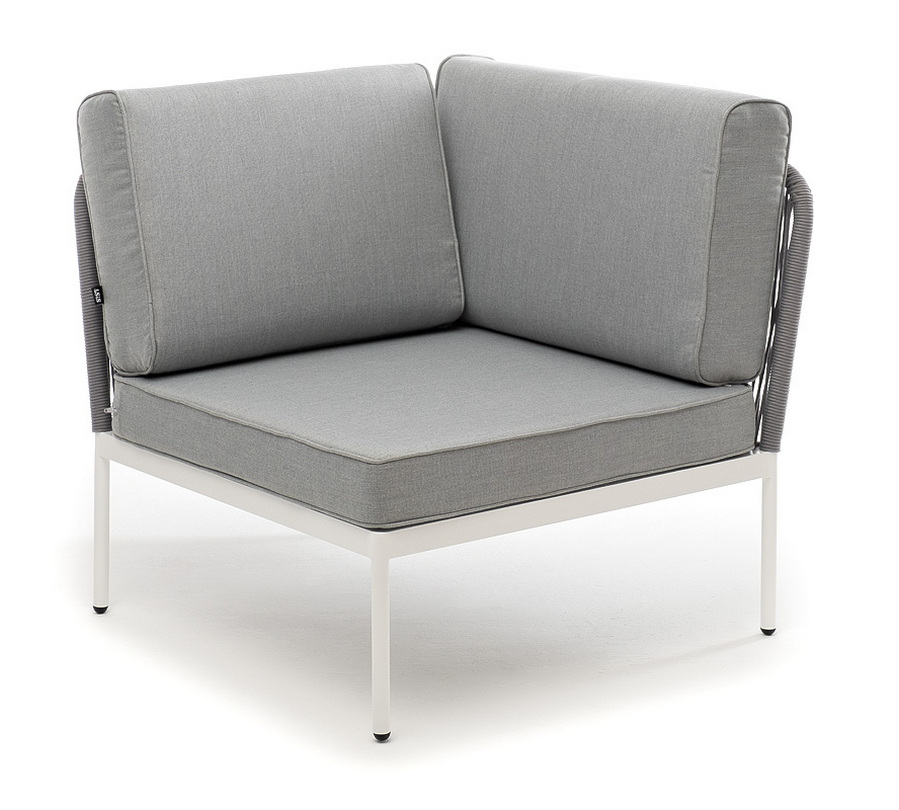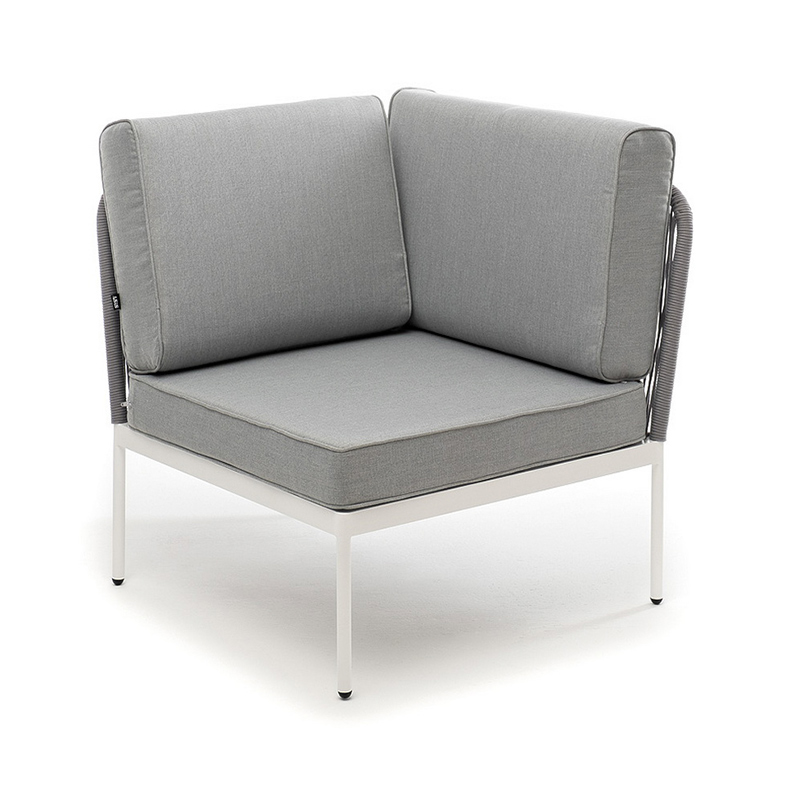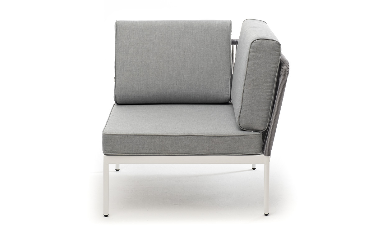 "Канны" угловой модуль плетеный из роупа, каркас алюминий белый шагрень, роуп светло-серый круглый, ткань светло-серая