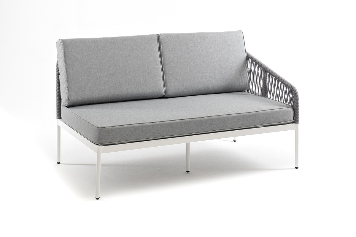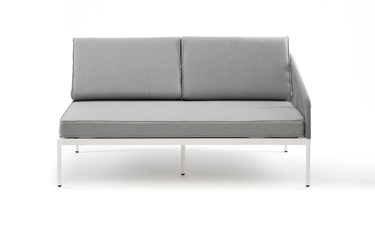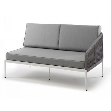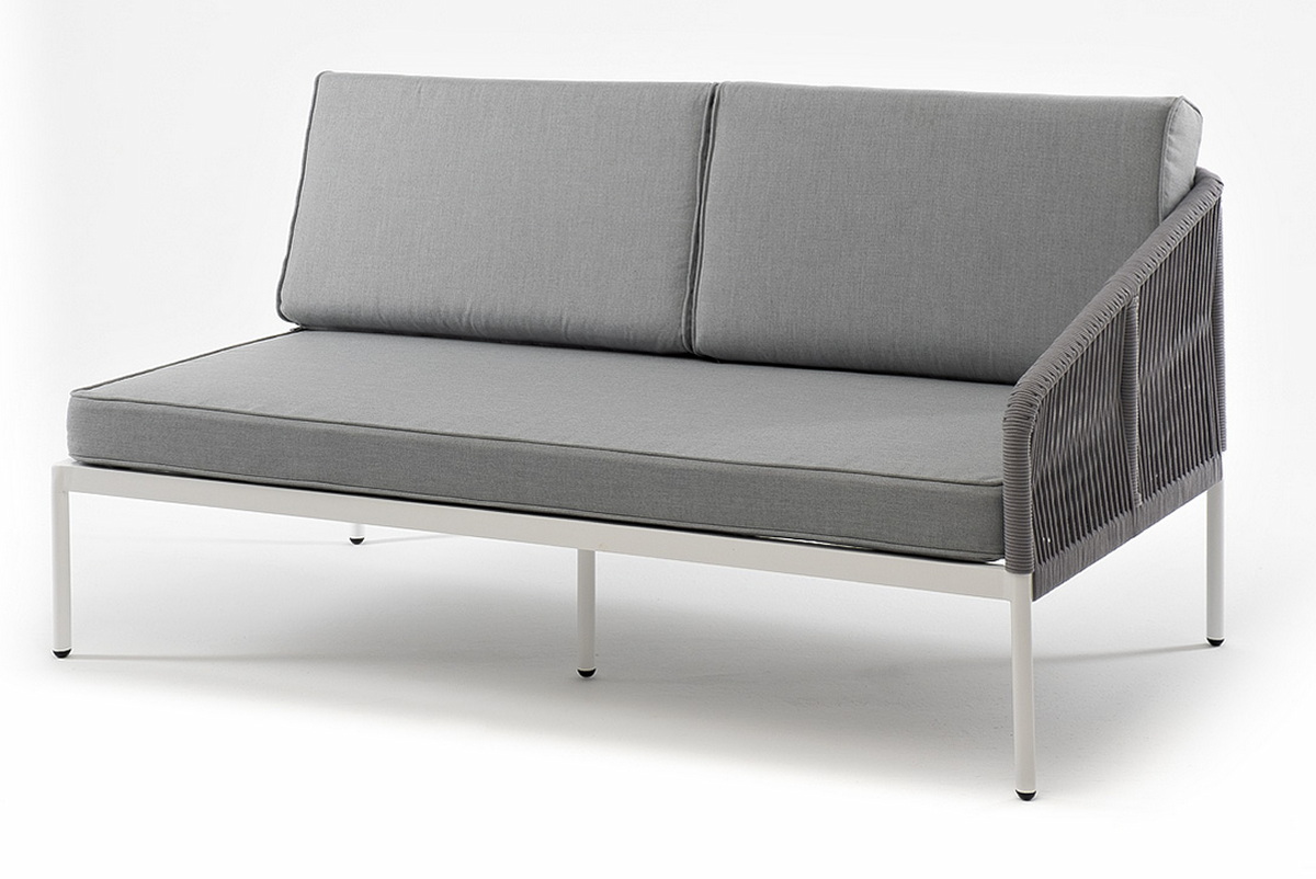 "Канны" левый модуль плетеный из роупа, каркас алюминий темно-серый (RAL7024) шагрень, роуп темно-серый круглый, ткань темно-серая