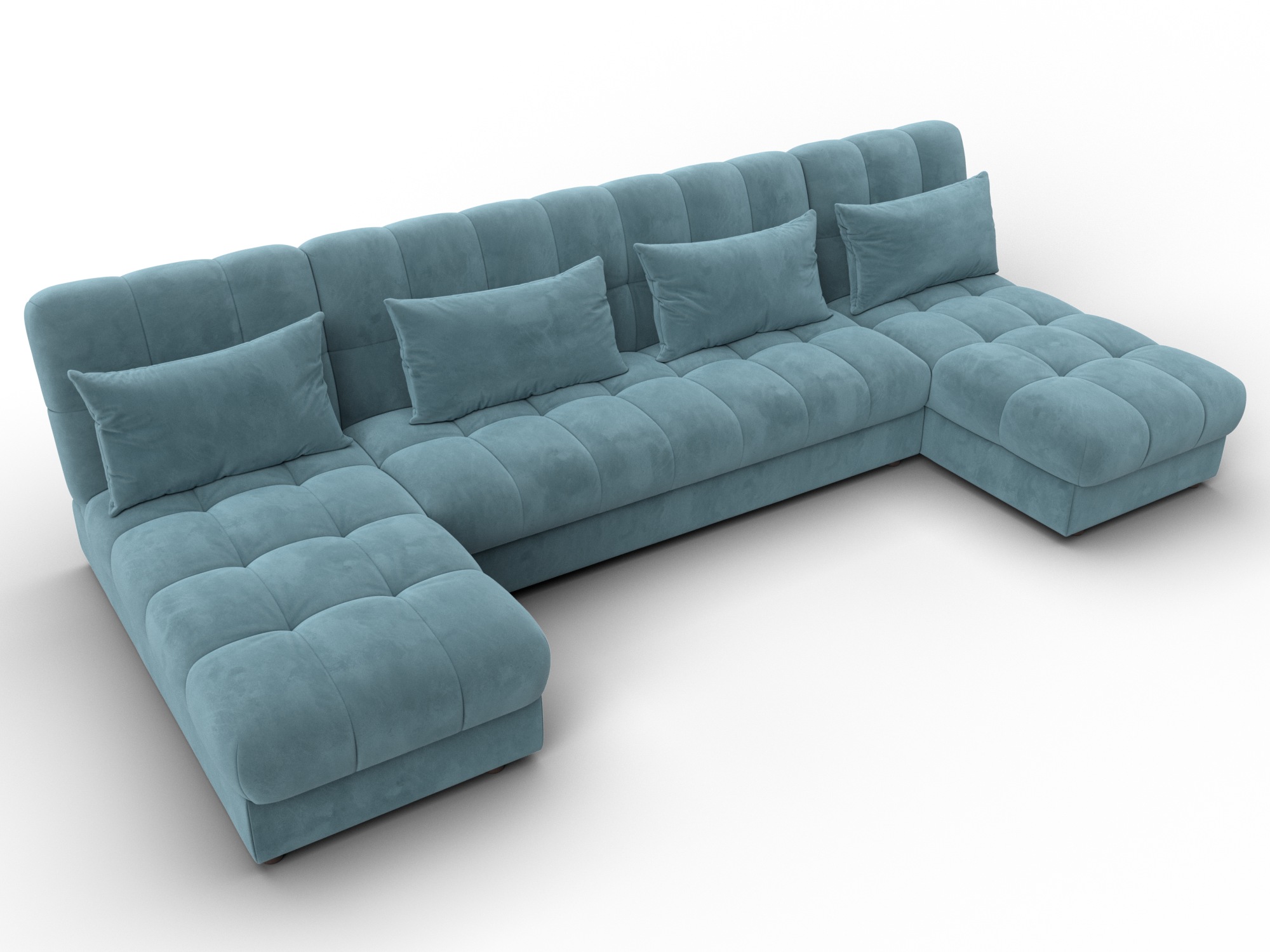 Диван П-образный Лига-116 НПБ, SEVEN 113 бирюзовый, Велюр
