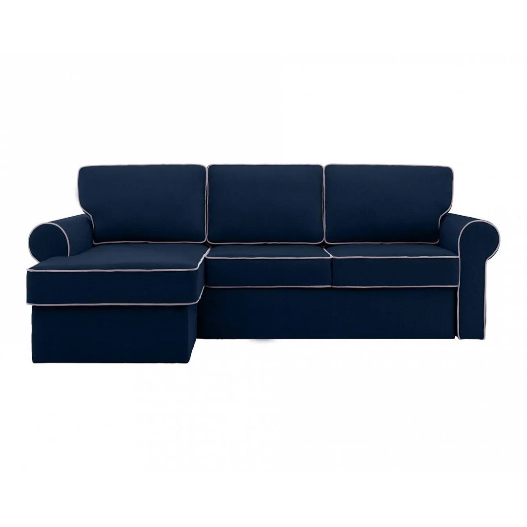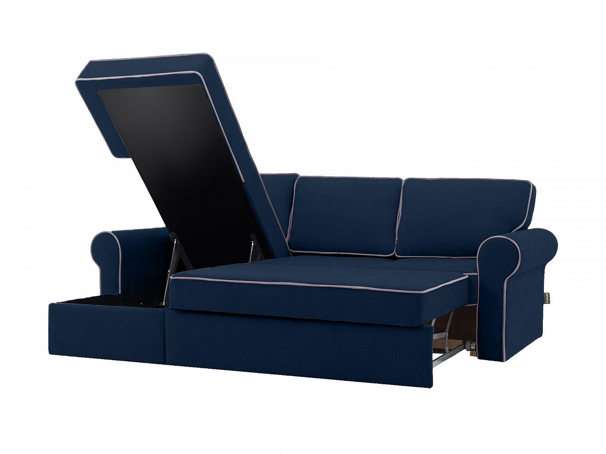 Угловой диван-кровать с оттоманкой и ёмкостью для хранения. Выразительный дизайн в английском стиле. Комфортабельная модель, которая станет местом притяжения в любом помещении. Оттоманка может располагаться как с правой, так и с левой стороны. Угол расположения определяется в момент заказа. Механизм преобразования — «дельфин». Превращение дивана в кровать происходит за счет выныривания одной части сиденья из-под другой. Складывается диван в обратном порядке — половина спального места опускается вниз и ныряет под сиденье основной секции. Механизм перемещается на пластиковых роликах и не царапает покрытие пола. Конструкция дивана надёжна, позволяет ежедневно выполнять трансформацию, не опасаясь за быстрый износ. ||Каркас дивана выполнен из бруса хвойных пород и высококачественной фанеры. Три объёмные подушки на спинке и на сиденье обеспечивают максимально комфортные ощущения. Завёрнутые наружу невысокие подлокотники удобны для отдыха, чтения. Диван отличает большая вместимость, упругая, в меру мягкая, поверхность. Прочная обивка из простроченного полиэстера придаёт объём и уютный вид. Благодаря конструкции, диван можно разместить как в углу комнаты, так и в центре. Возможно выбрать цвет и фактуру обивки, которая будет соответствовать вашим индивидуальным предпочтениям.