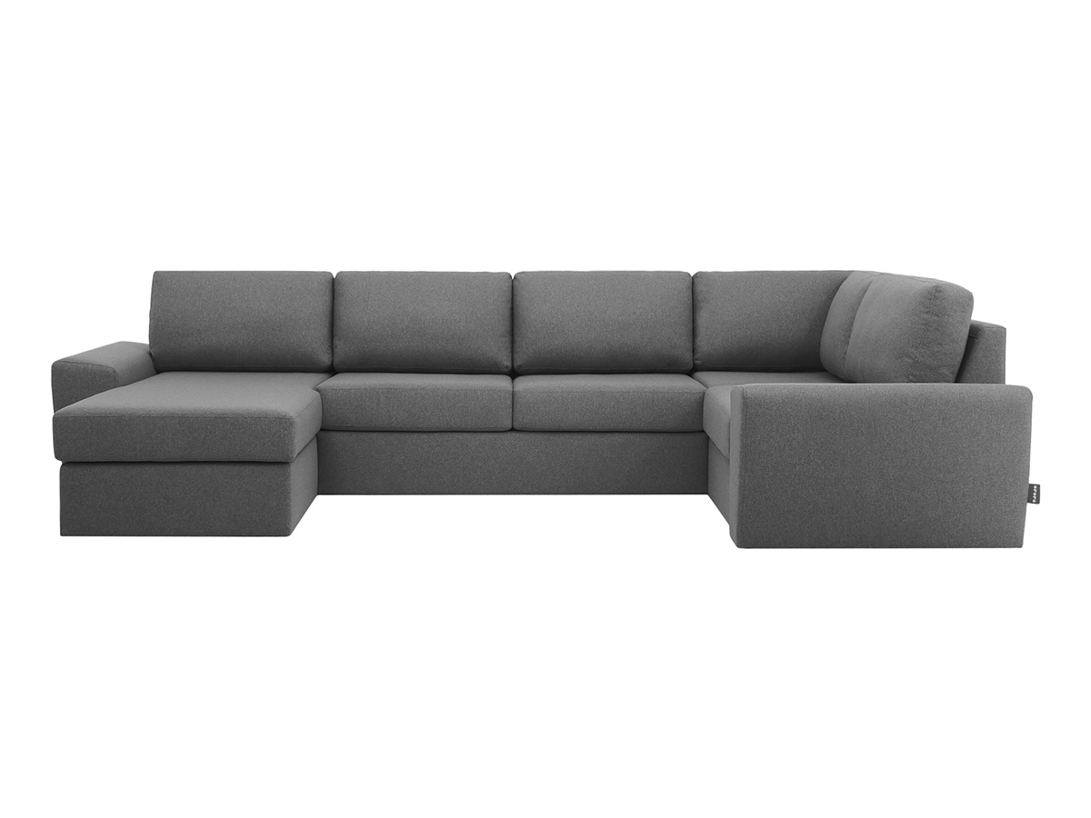 Линейка диванов «Peterhof» собирается из модулей, как конструктор, и позволяет выбрать модель, которая будет отвечать вашим индивидуальным потребностям. Из секций можно собрать двухместный диван, удобный диван с оттоманкой или просторный угловой диван на любое количество мест. 5 видов подлокотников на выбор. Большое разнообразие материалов обивки по фактуре и цвету.||Представленная модель - угловой диван-кровать с оттоманкой. Диван может быть выполнен с правым и левым расположением углового модуля. Размер спального места 1840х1330 мм. Механизм трансформации - «Sedaflex». Который позволяет ежедневно раскладывать диван, не опасаясь за частую эксплуатацию. Каркас состоит из хвойных брусков и влагостойкой берёзовой фанеры. Использование этих материалов обеспечивает экологичность и долговечность. Основание спального места - 9 ортопедических лат, которые обеспечивают дополнительную амортизацию и образуют ровное спальное место.||В комплект входит плотный матрас из пенополиуретана высотой 90 мм. Нагрузка на одно спальное место - 110 кг. Наполнением подушек сиденья служит настил из нескольких слоев высокоэластичного пенополиуретана и синтепона. Наполнитель 6 подушек спинки - синтепух. Он идеально держит форму, гипоаллергенный, не впитывает влагу и запахи. Подушки имеют внутренний чехол из спанбонда, прошитый в три отсека, чтобы наполнитель не скатывался и хорошо держал форму. Лицевые чехлы подушек съёмные, на молнии, что позволяет их легко чистить. «Peterhof» - стильный и вместительный диван, который отвечает самым высоким требованиям.
