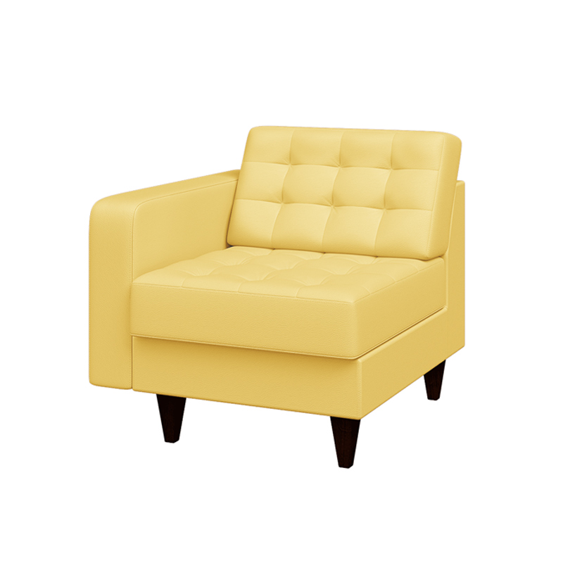 Запросить индивидуальное предложение Модуль КОСМО с правым подлокотником отличается удобством и оригинальным внешним видом, который ему придают декоративные утяжки на спинке и сиденье.Он имеет анатомический дизайн, поэтому на нем удобно отдыхать или работать даже продолжительное время. Угол наклона спинки, габариты и умеренная жесткость сиденья рассчитаны в соответствии со средним ростом и весом взрослого человека. Широкое посадочное место обеспечивают просторное удобное расположение.