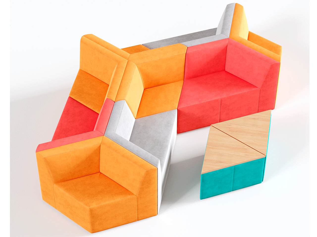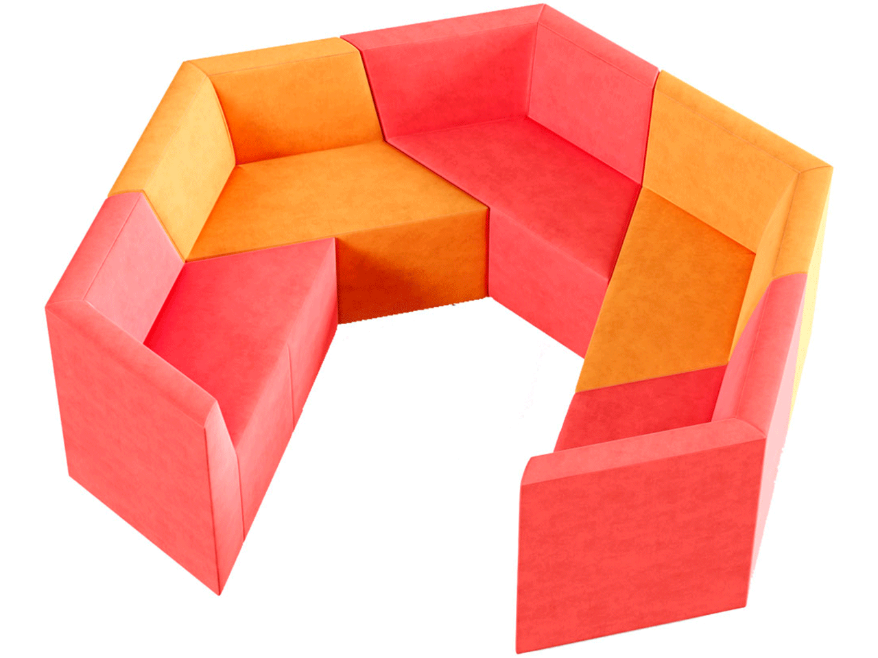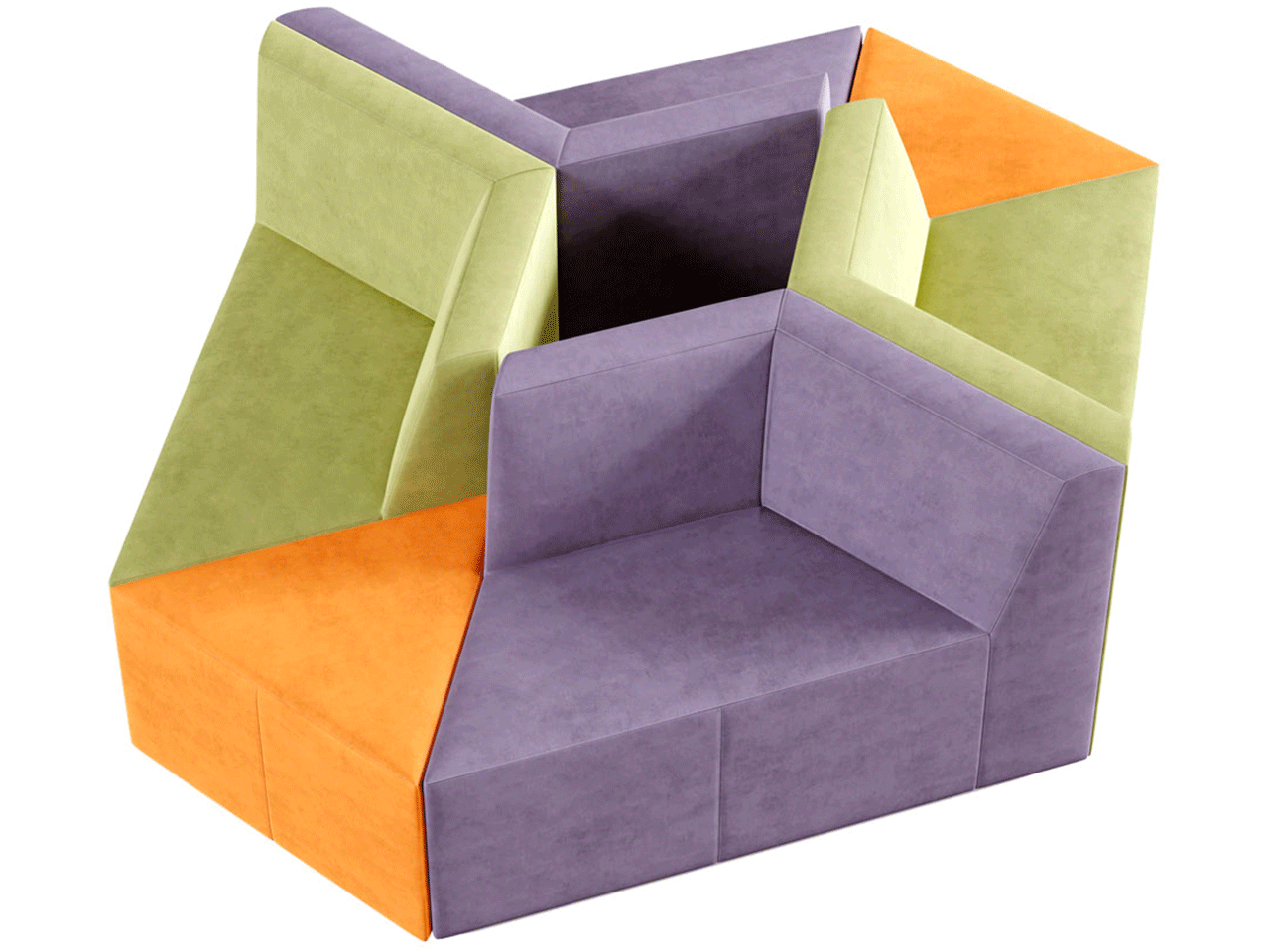 Запросить индивидуальное предложениеУгловой модуль ОРИГАМИ чаще всего используется, если необходимо плавно развернуть композицию. Для его производства используется поролон повышенной упругости, что гарантирует привлекательность внешнего вида длительное время. Низкие опоры обеспечивают отличную устойчивость модуля. Поэтому модули отлично подходят для оформления детских центров, холлов театров, торговых центров, лаунж-зон.
