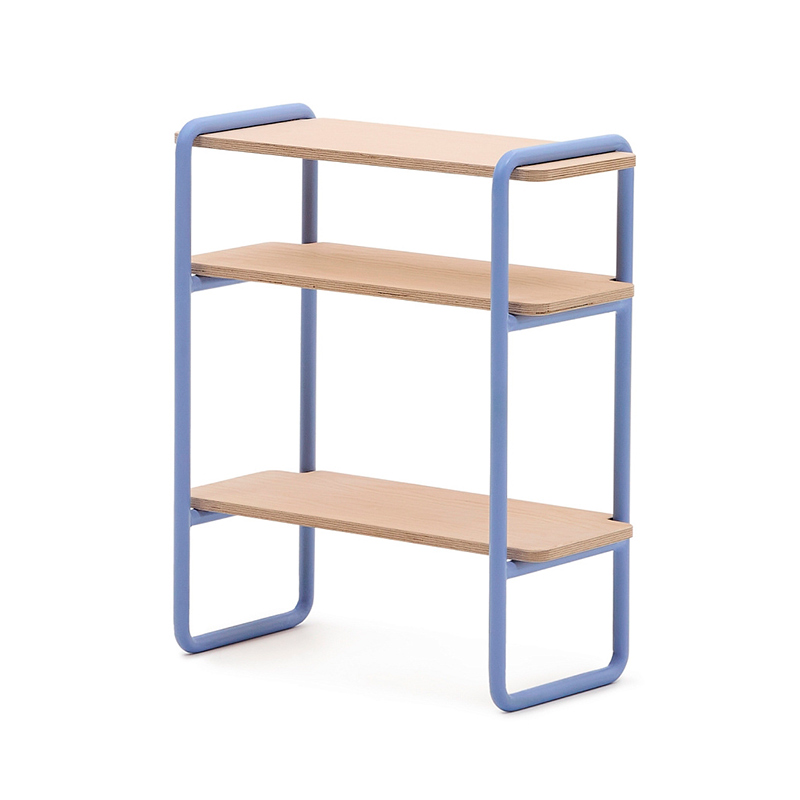 Стеллаж из ясеневого шпона цвета Tinn с синей металлической конструкцией, 70 x 60