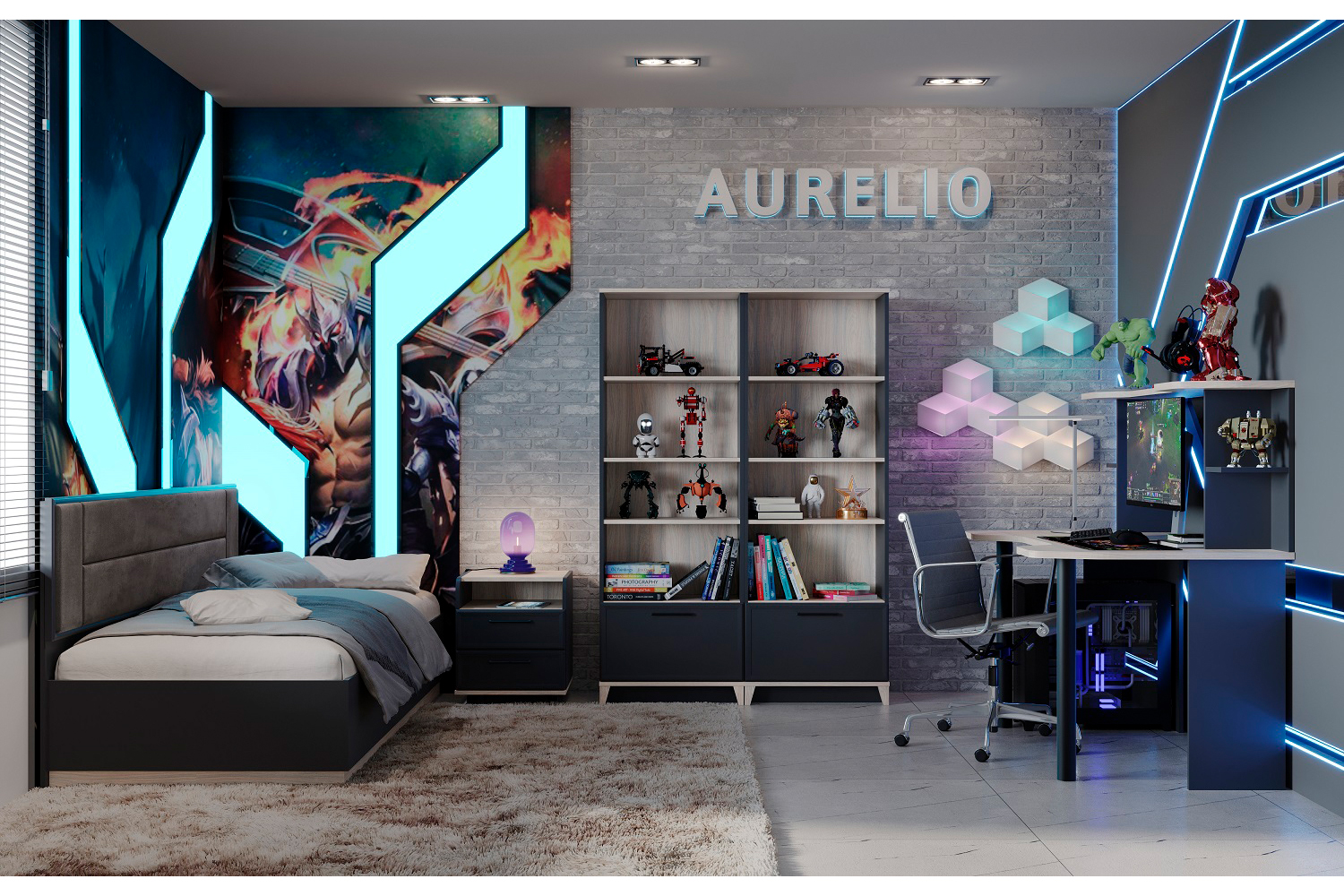 Шкаф МЦН Аурелио 21, Антрацит, Блеквуд Сатиновый