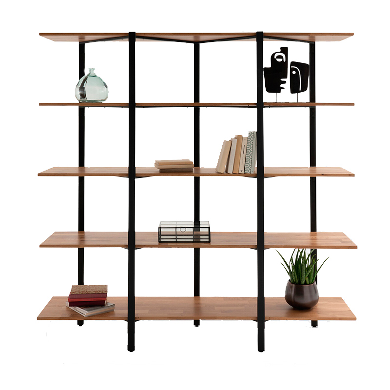 • 5 фиксированных полок из массива дуба, покрытых лаком и тонированных в различных оттенках