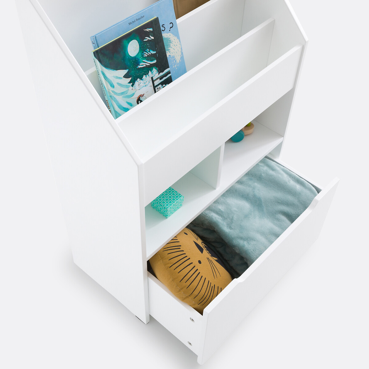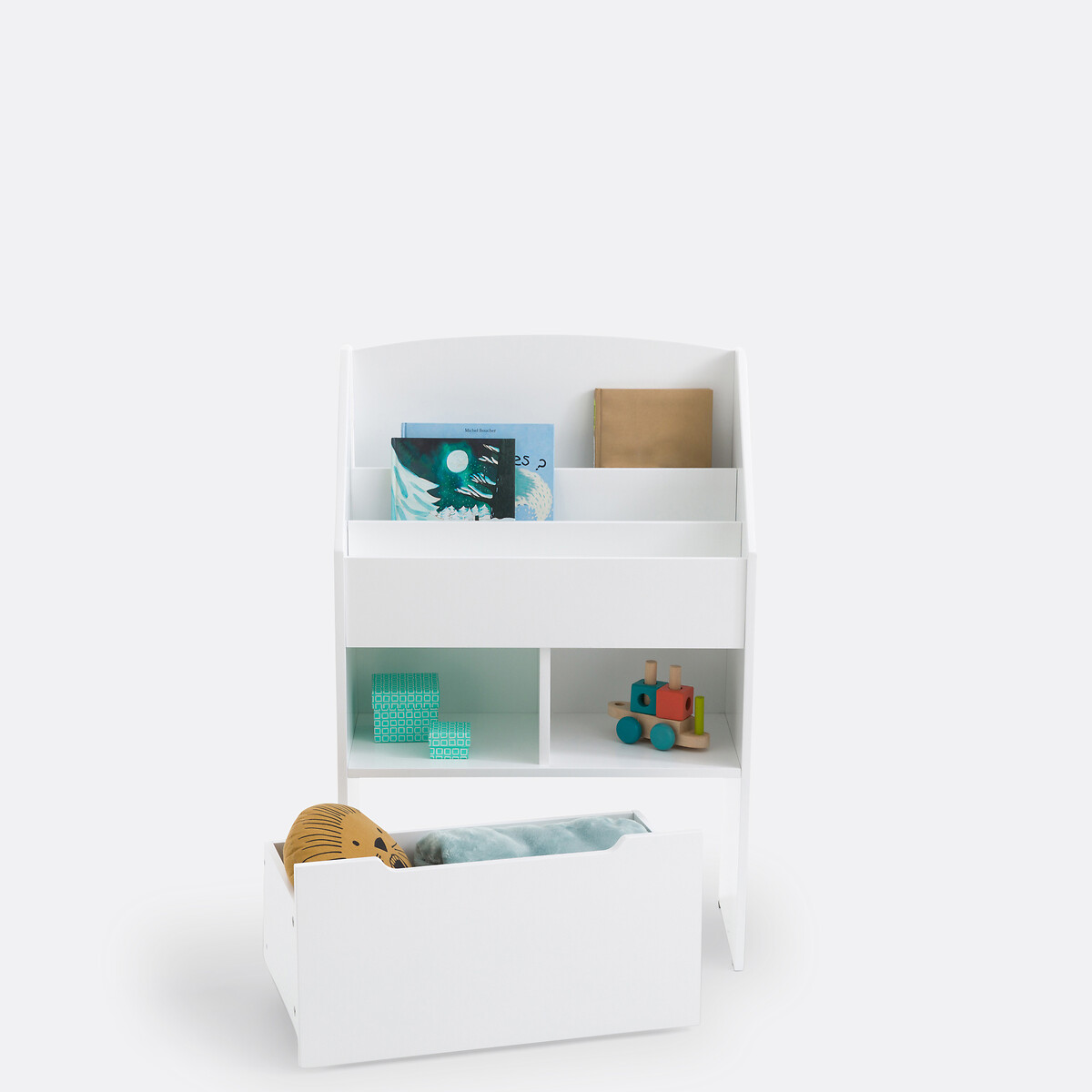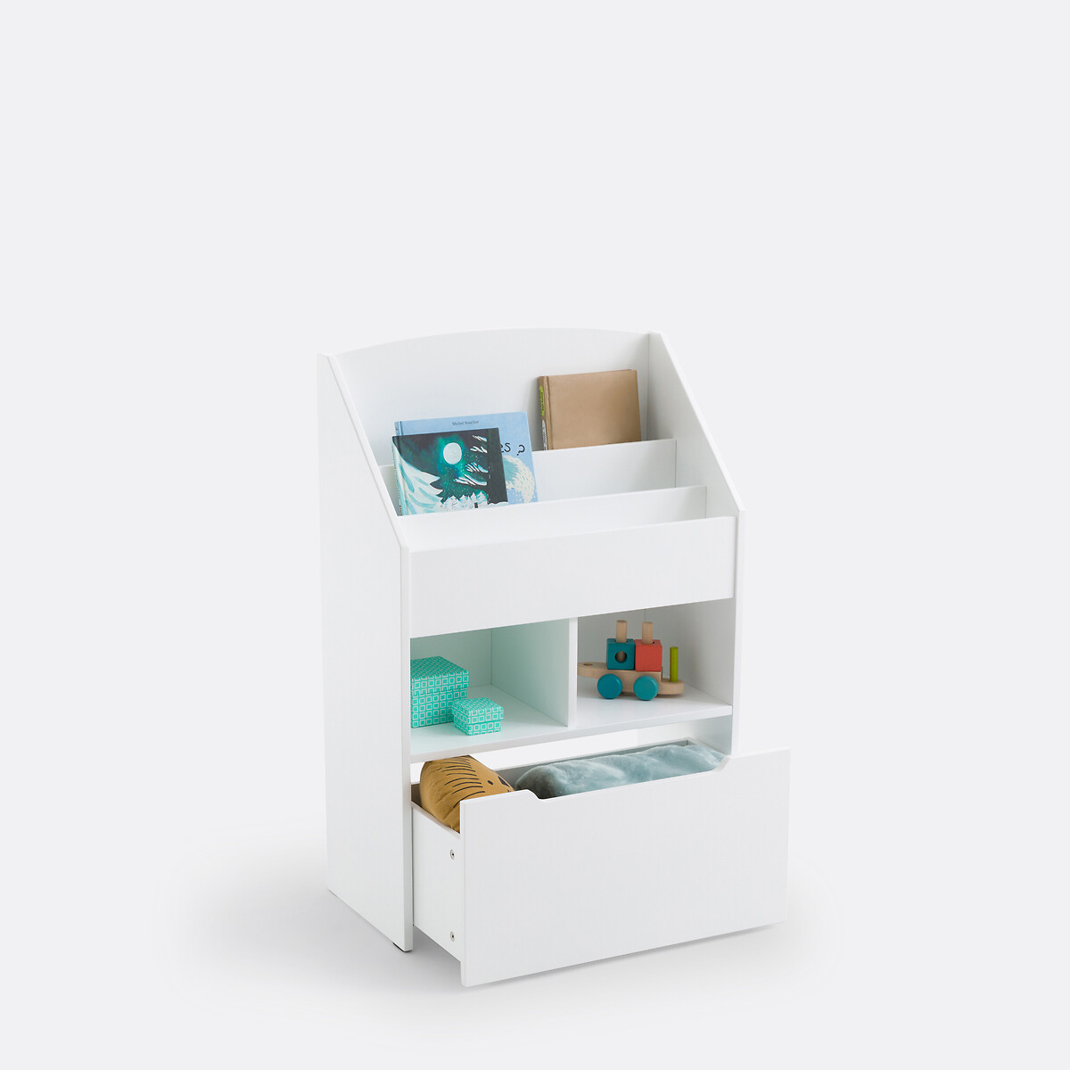 • 3 полки, 2 ниши + 1 большой ящик на колесиках