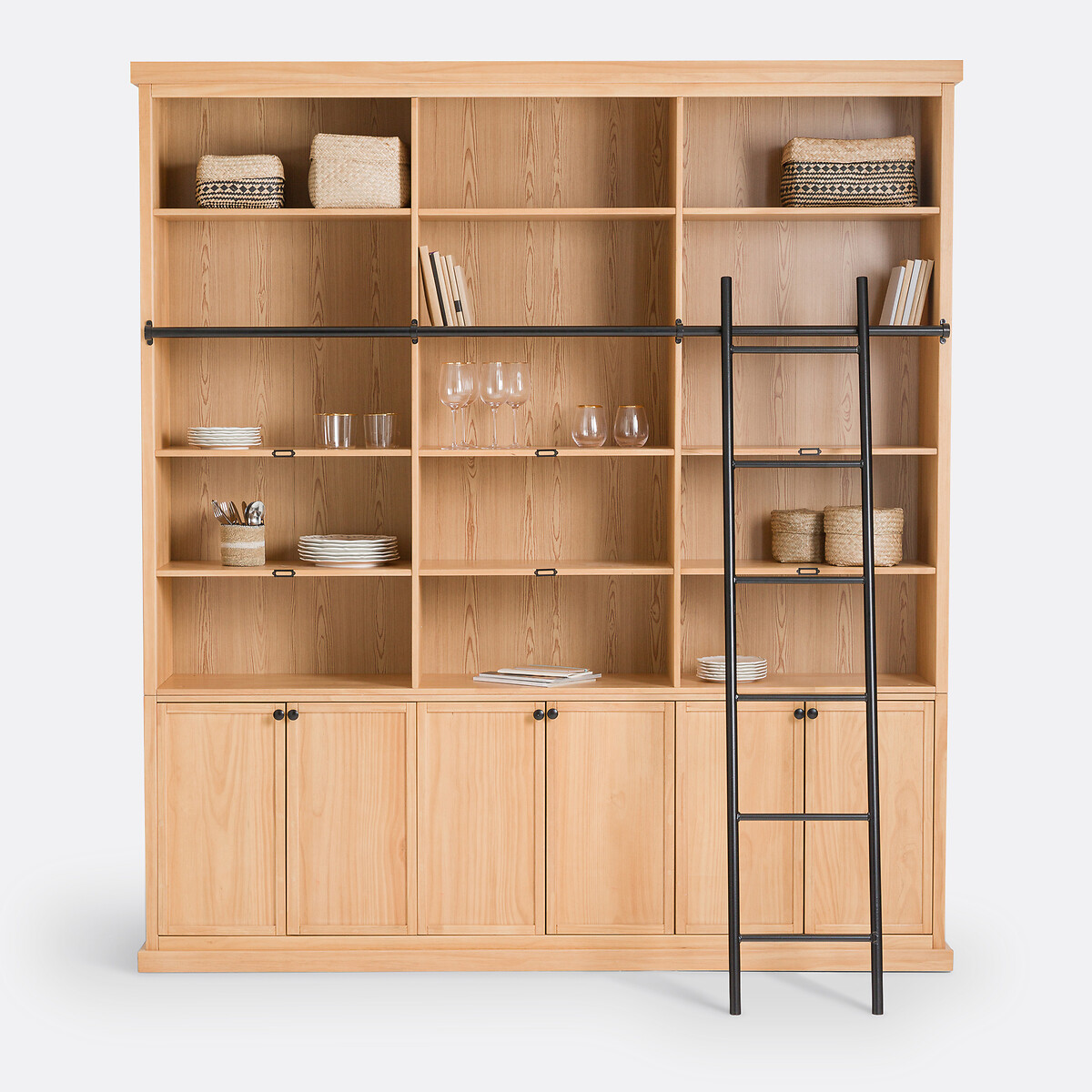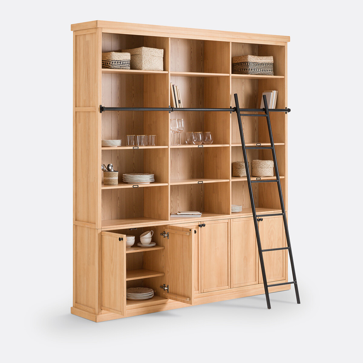 Книжный шкаф из сосны с лестницей Dario бежевый