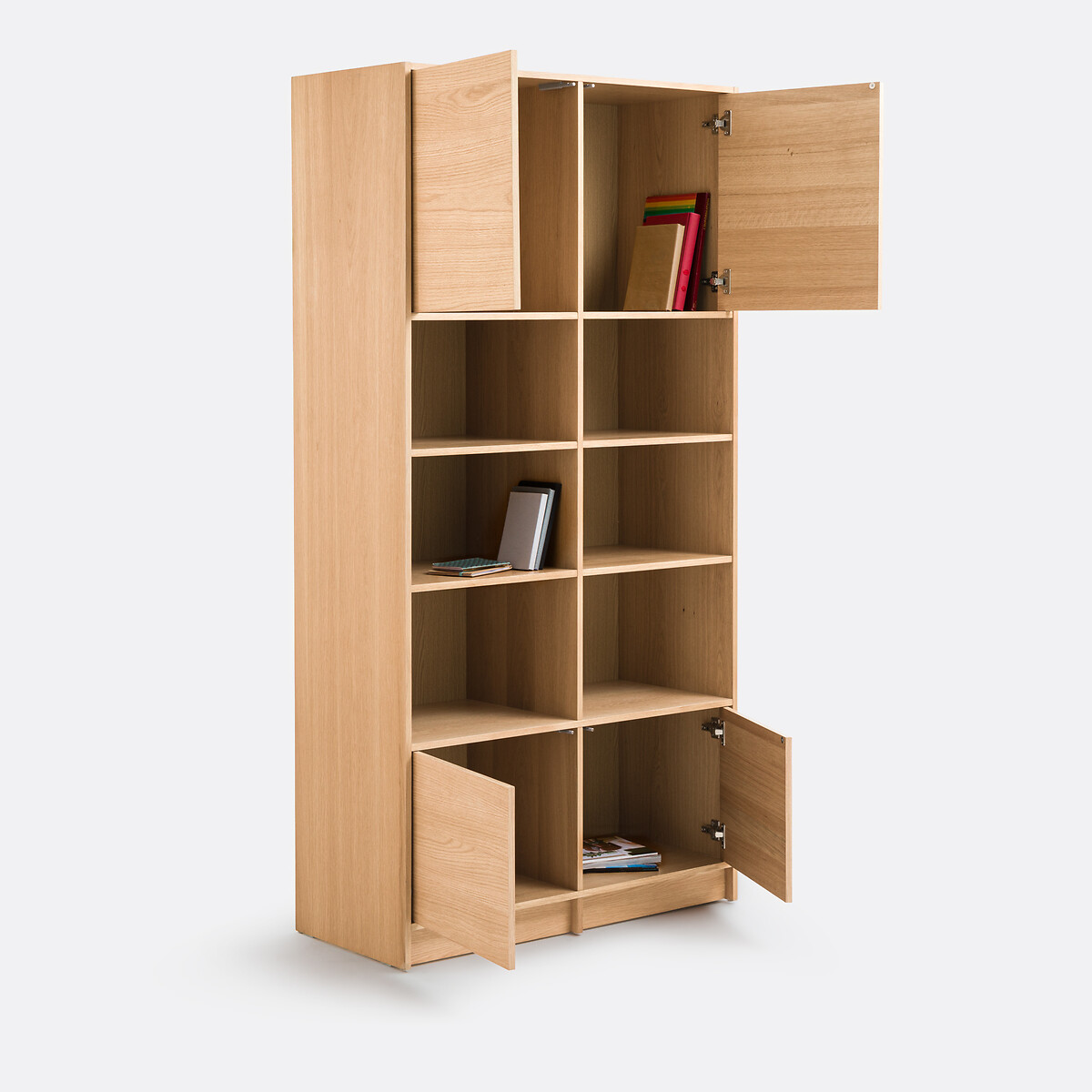 Шкаф книжный модулируемый из дуба с четырьмя дверцами Senssia каштановый