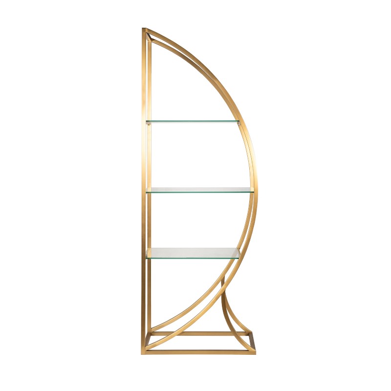 KFG087/2 Стеллаж "Полусфера" прозрачное стекло/золото матовый 71*48*202см