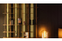 Стеллаж изготовлен из высокачественного австрийского ЛДСП. Cтойки через одну имеют торцевую подсветку по всей высоте, включающуюся от беспроводной кнопки. Стеллаж имеет крепеж к стене для исключения опрокидывания.