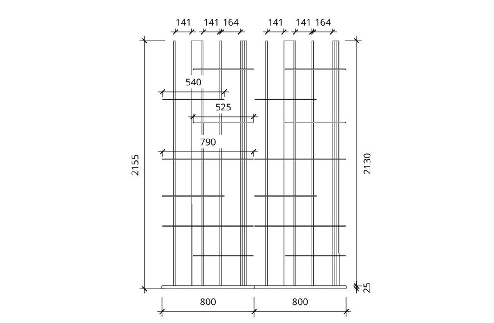 Композиция может быть дополнена секциями 80 см. Стеллаж может быть изготовлен в более чем 30 декорах на выбор. Стоимость может отличаться в зависимости от выбранного декора.