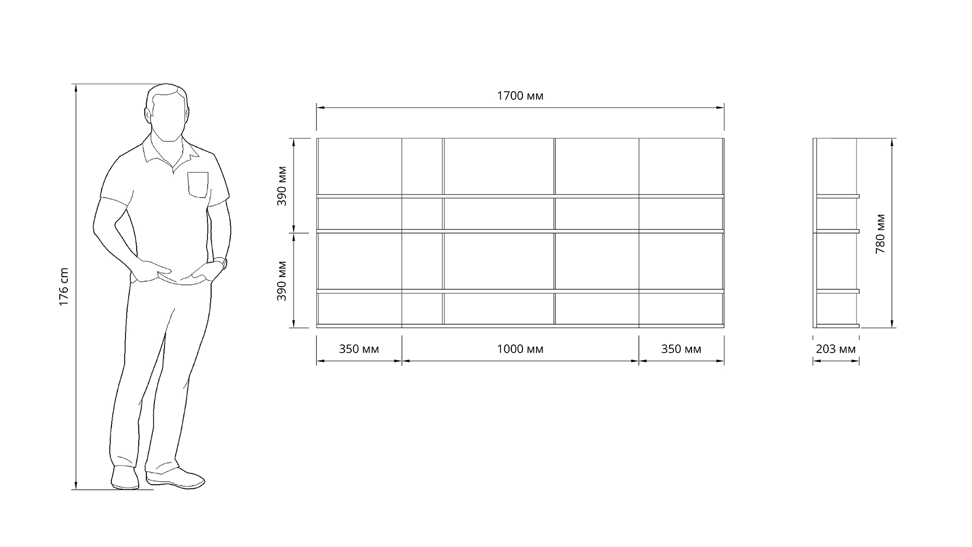 Материал стоек: ЛДСП 16мм. Материал полок: ЛДСП 8 мм.